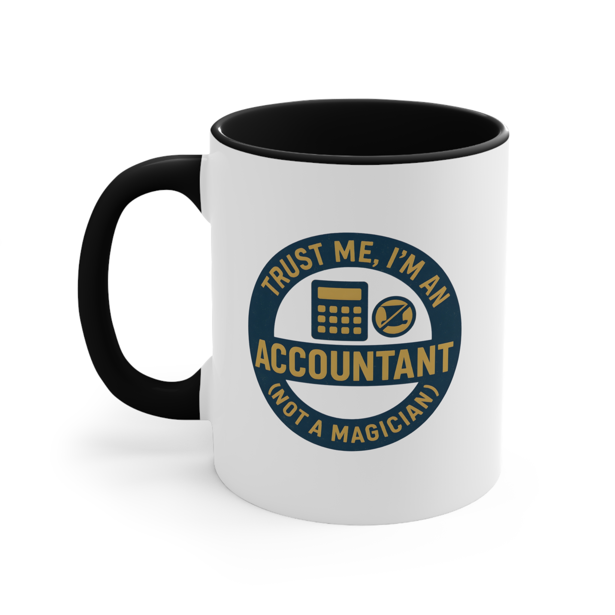 When clients expect miracles, this mug sets the record straight: “Trust Me, I’m an Accountant – Not a Magician.” Featuring bold retro-style typography, a calculator icon, and a crossed-out wand, it’s a hilarious reminder that number-crunching has its limits.