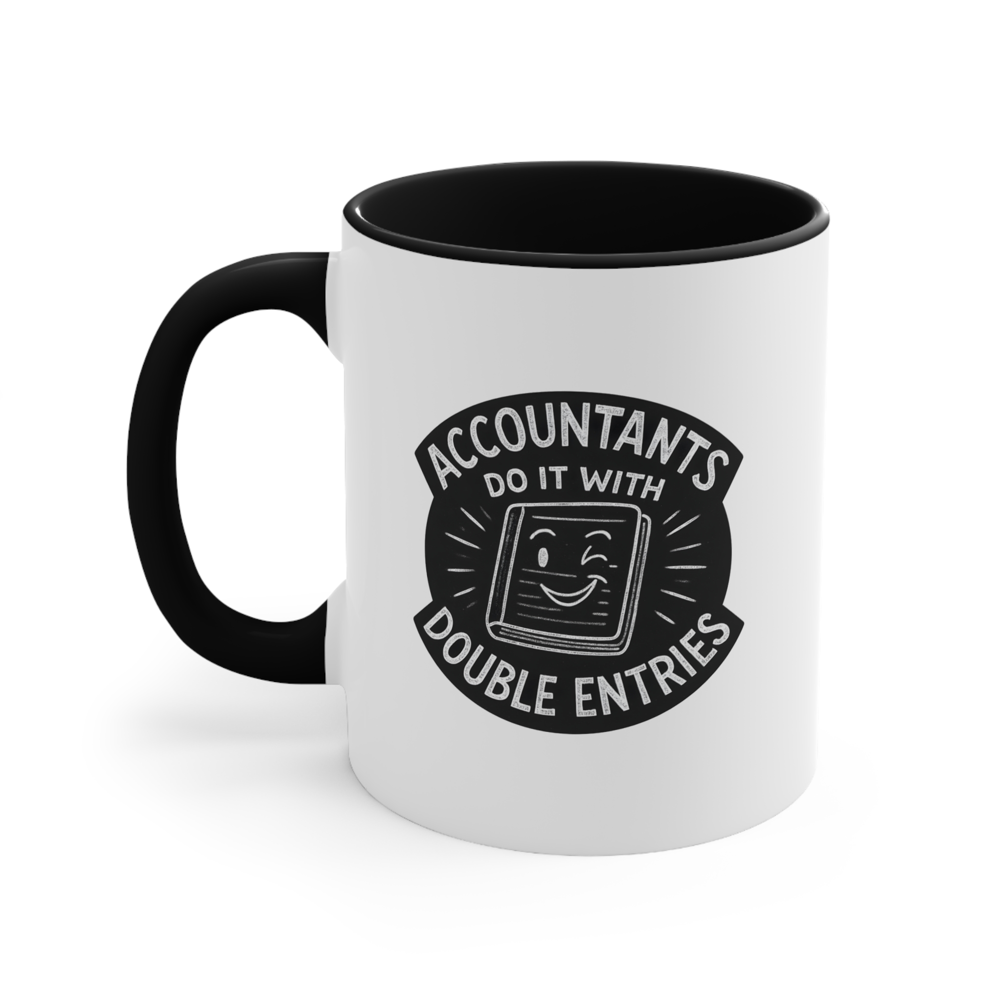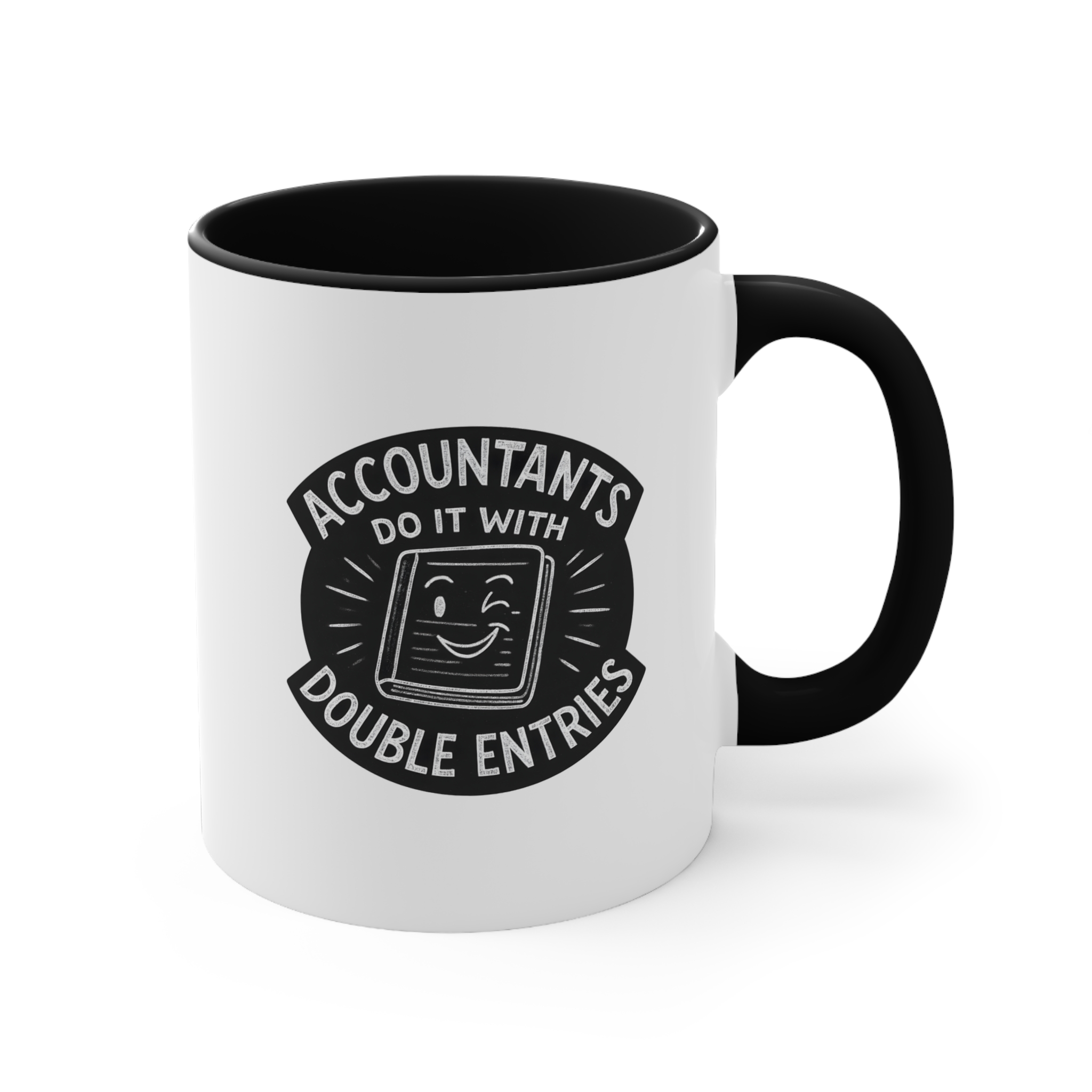Make a statement at the office (or during tax season) with this clever and bold “Accountants Do It with Double Entries” mug. Featuring a monochrome design with a winking ledger book, this mug delivers accounting humor in sleek black-and-white style — perfect for CPAs, bookkeepers, and finance fans who appreciate both balance sheets and innuendos.