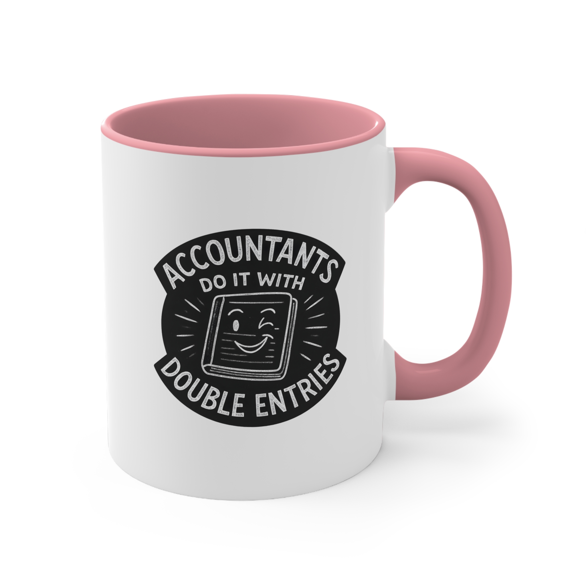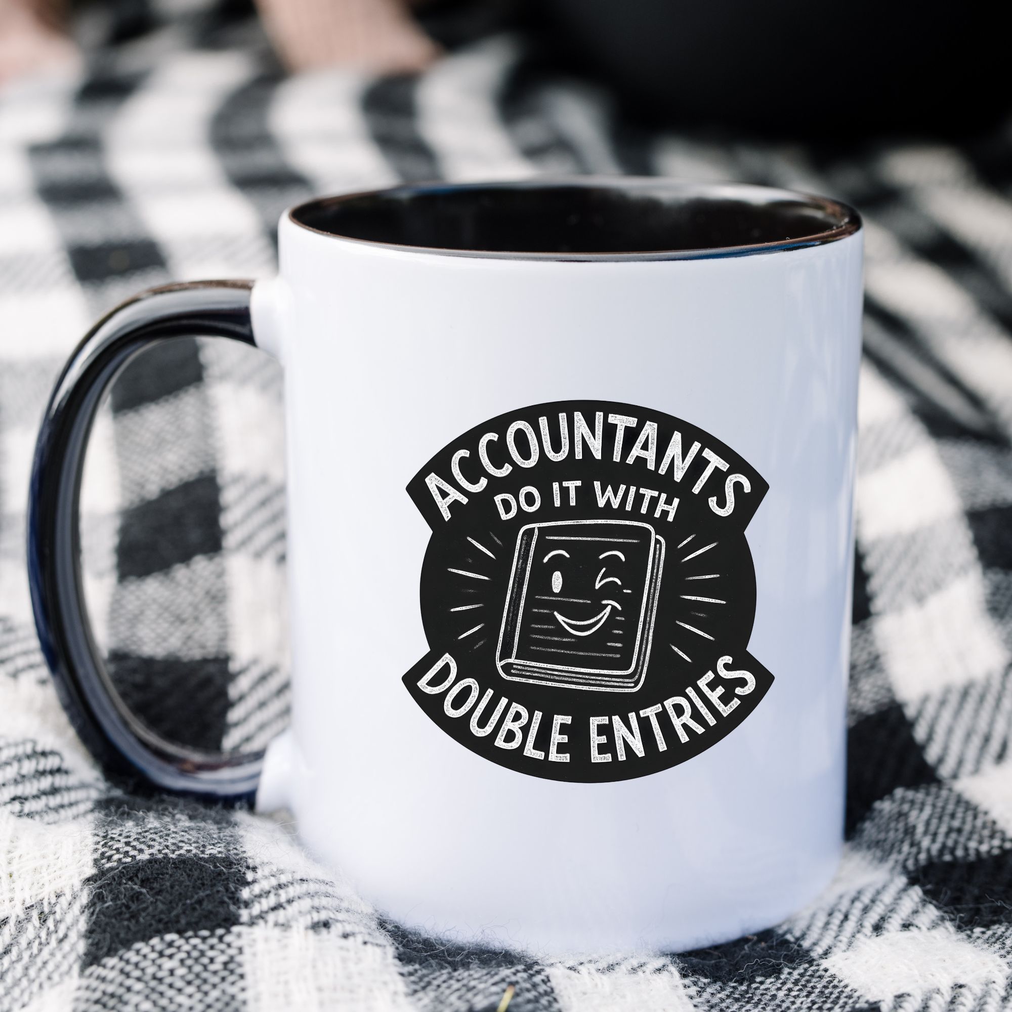 Funny “Accountants Do It with Double Entries” mug in black and white. A sleek and witty gift for bookkeepers, CPAs, and accounting fans.