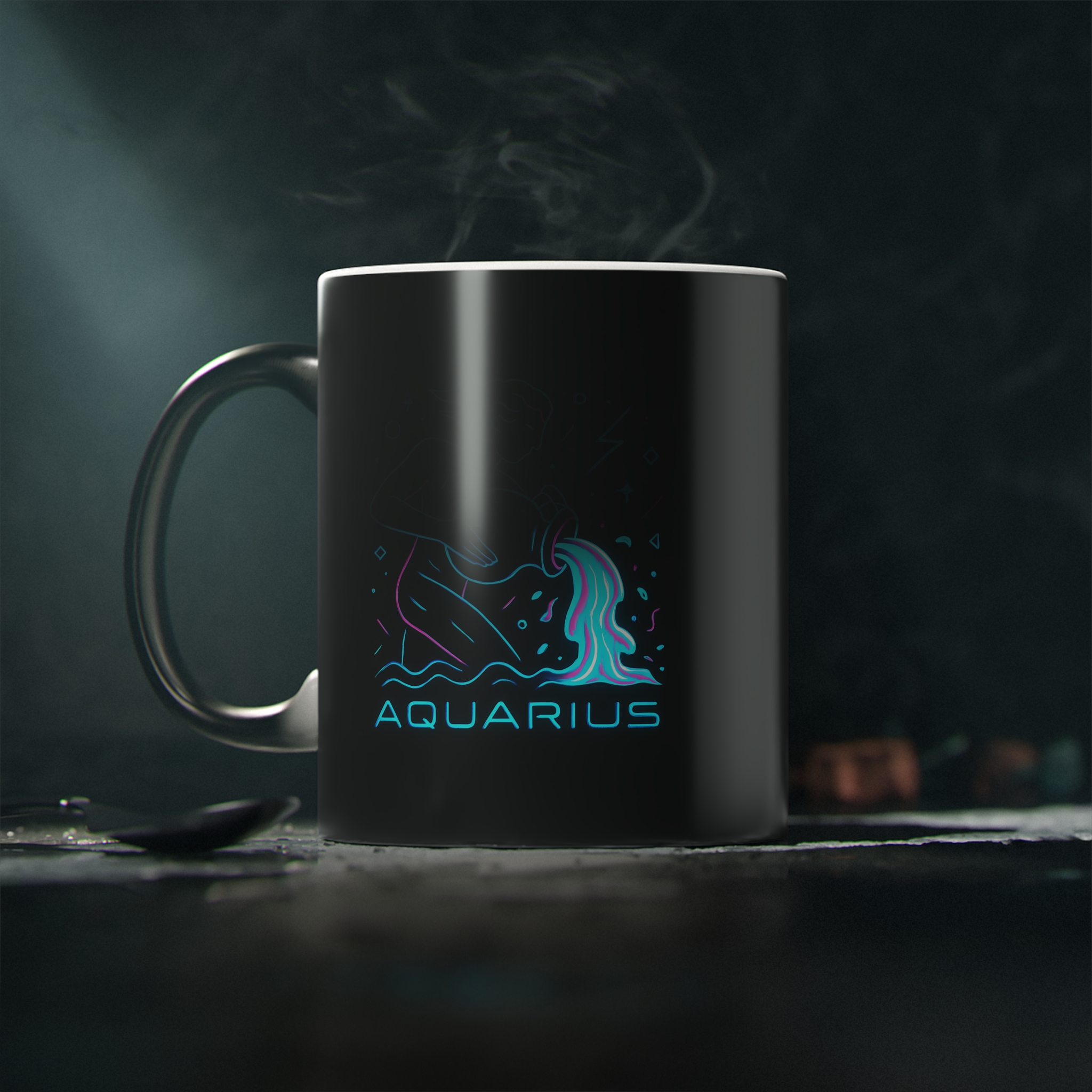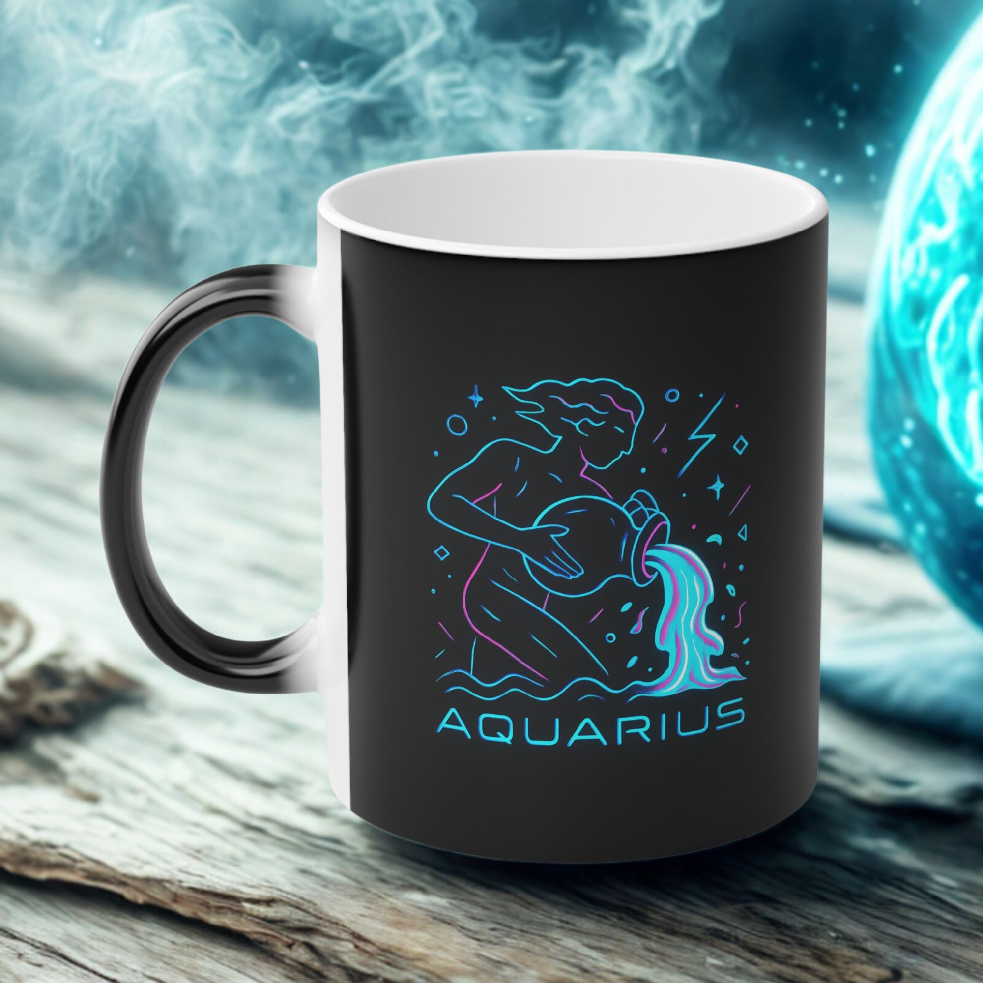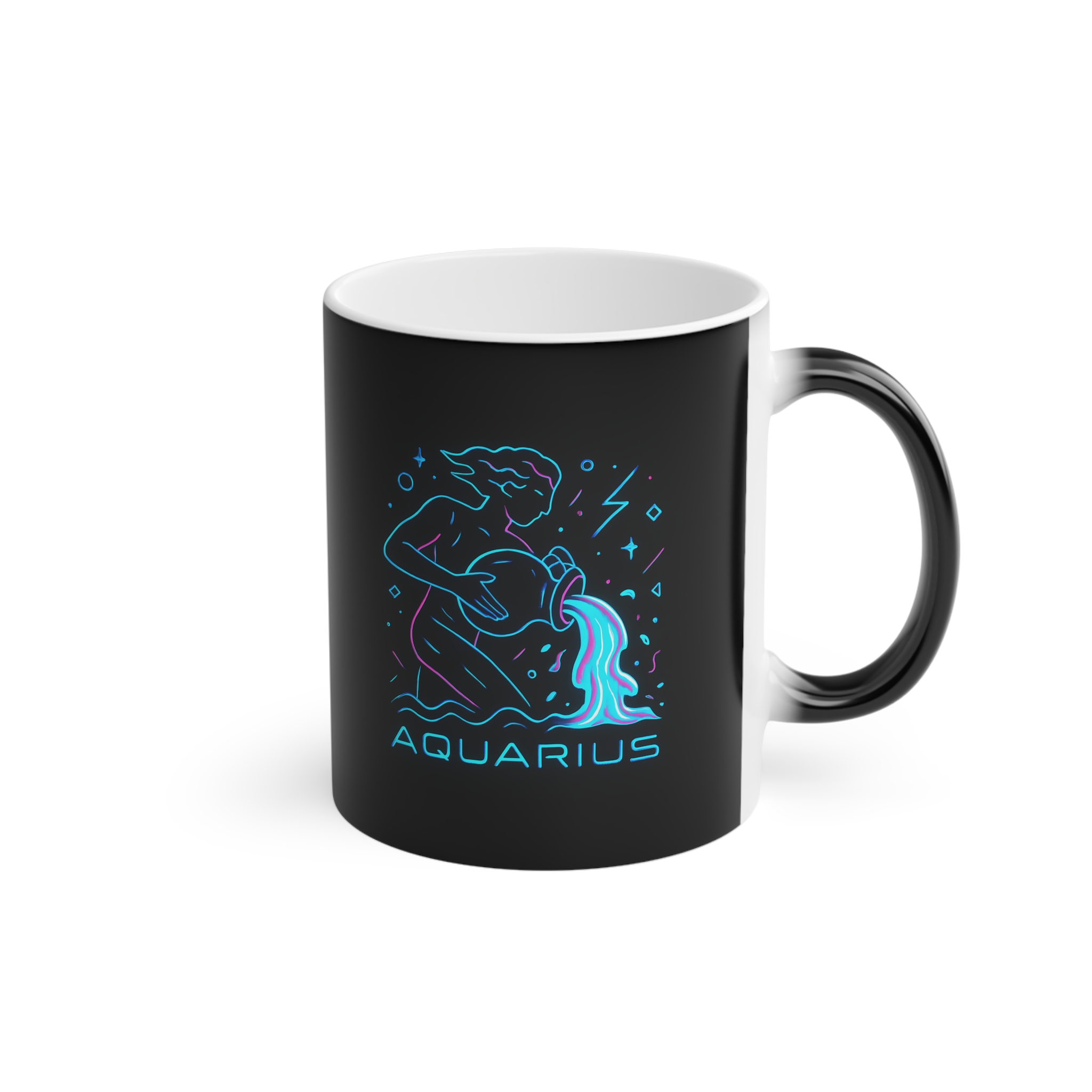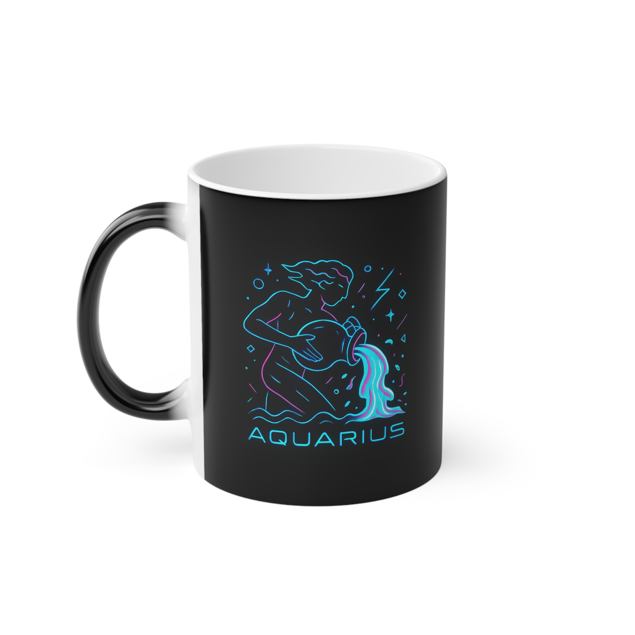 This Aquarius Magic Mug reveals a neon water bearer design with heat—ideal for bold, original thinkers and zodiac lovers.