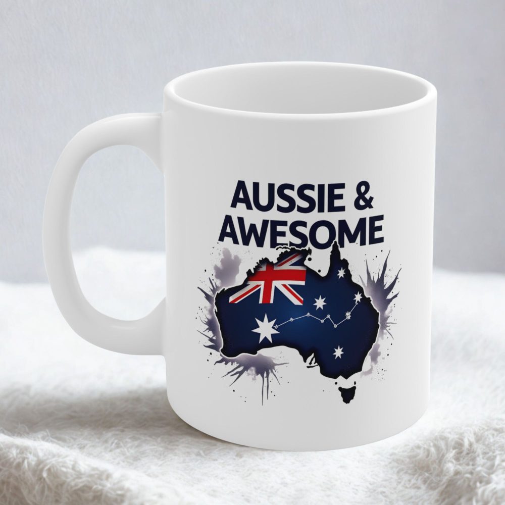 Aussie & Awesome—this bold flag mug features the Southern Cross and patriotic colours, perfect for any proud Australian coffee lover.