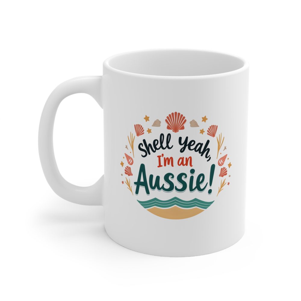 Add a splash of Aussie beach life to your morning brew with this bold and breezy Australia Mug, featuring the cheeky phrase “Shell Yeah, I’m an Aussie!”