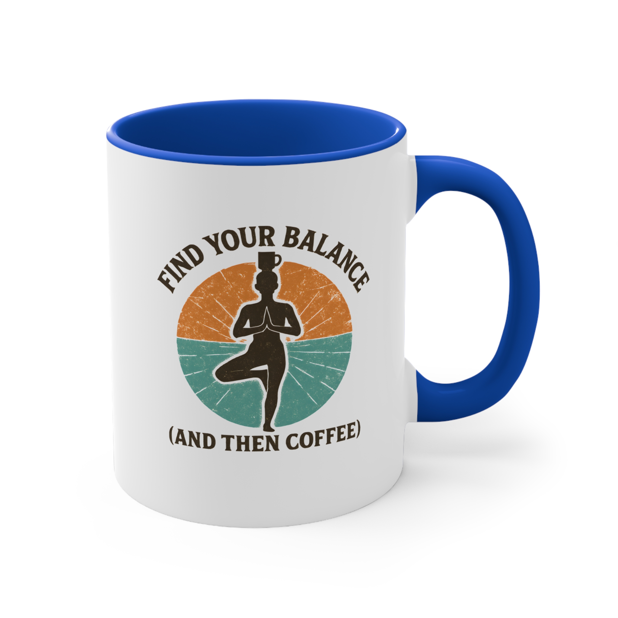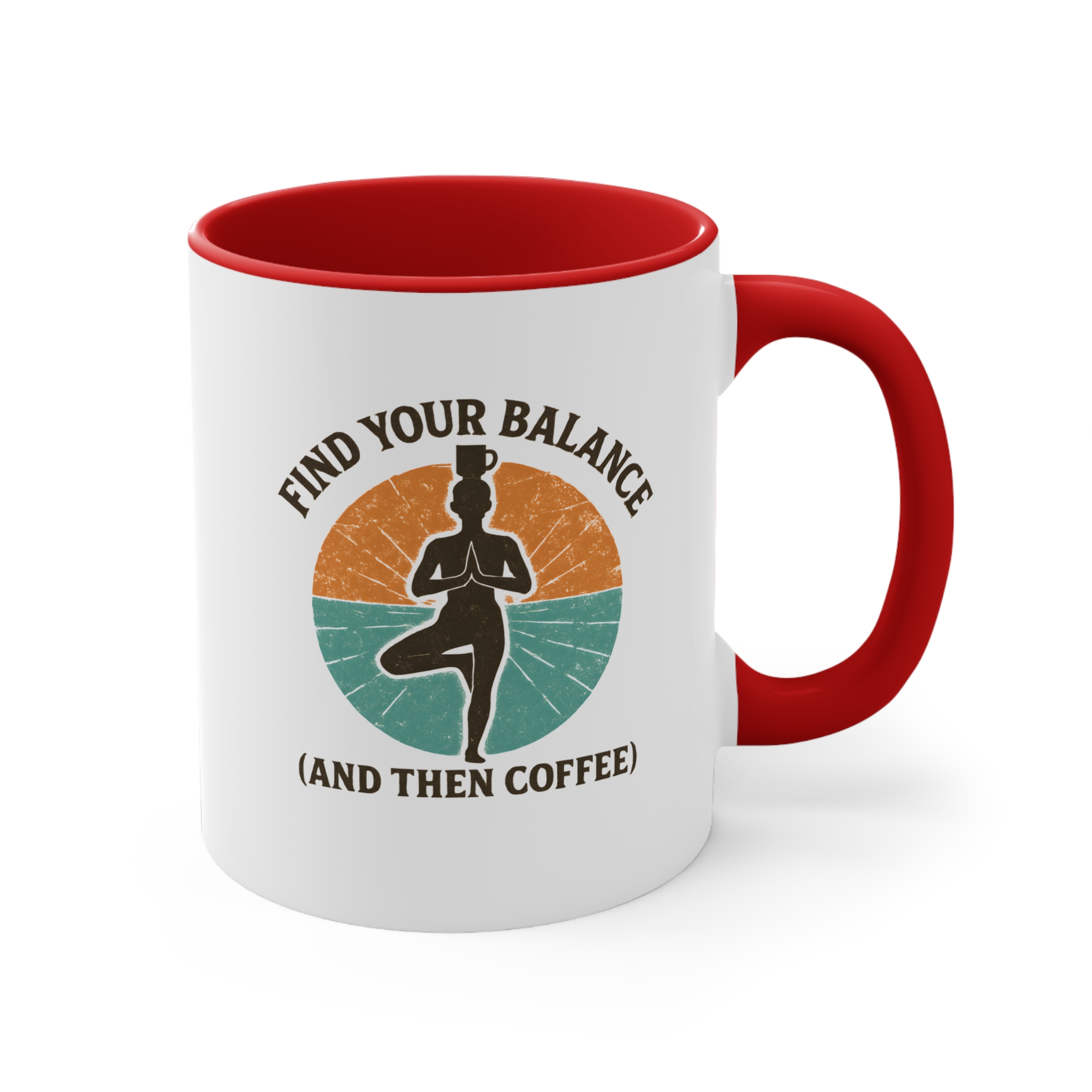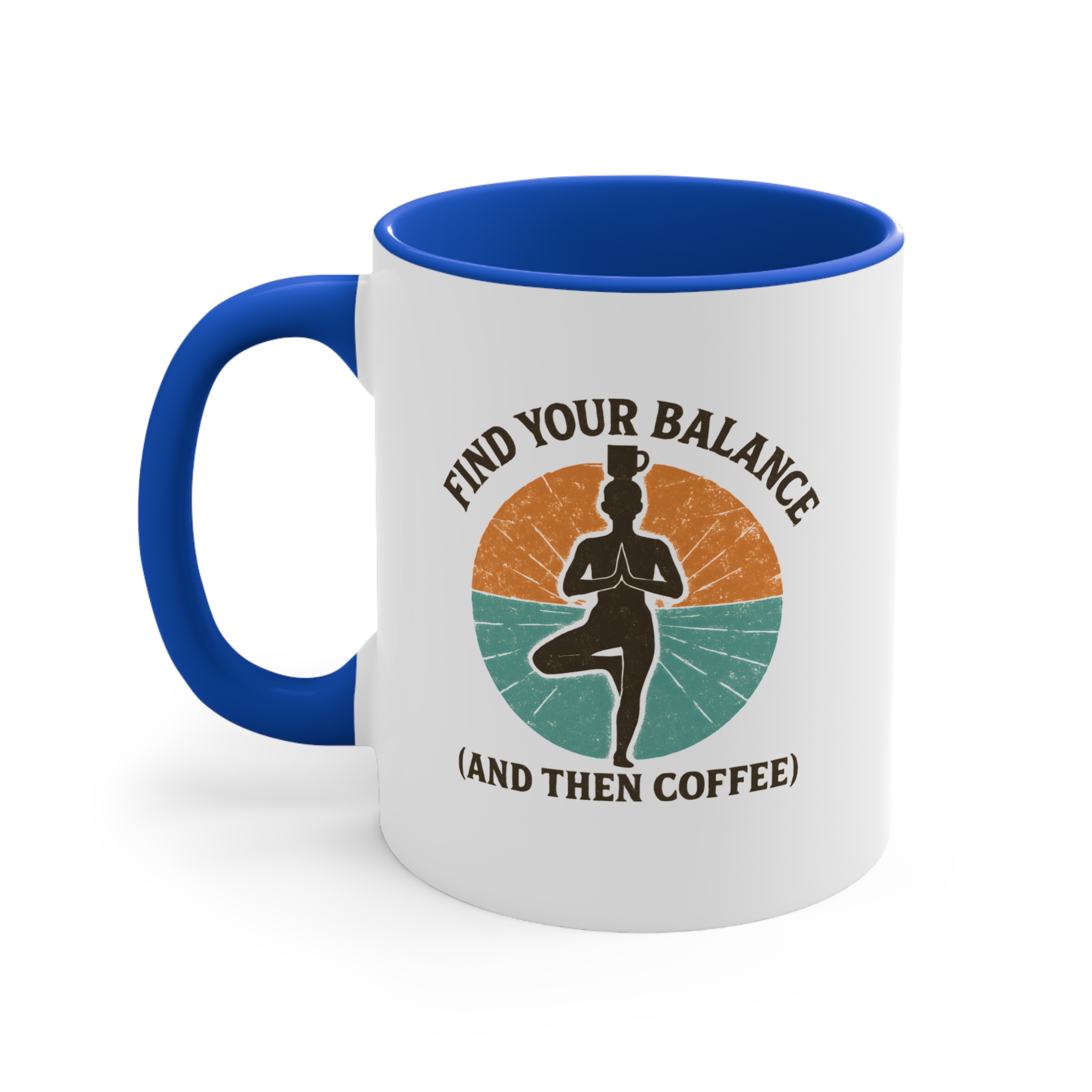 Balance isn’t just for the mat — it’s for your morning routine too. This balance yoga coffee mug features a serene yogi standing strong in tree pose, coffee cup balanced on their head, surrounded by earthy retro colours. It’s the perfect blend of mindfulness and caffeine — start centered, then caffeinate.