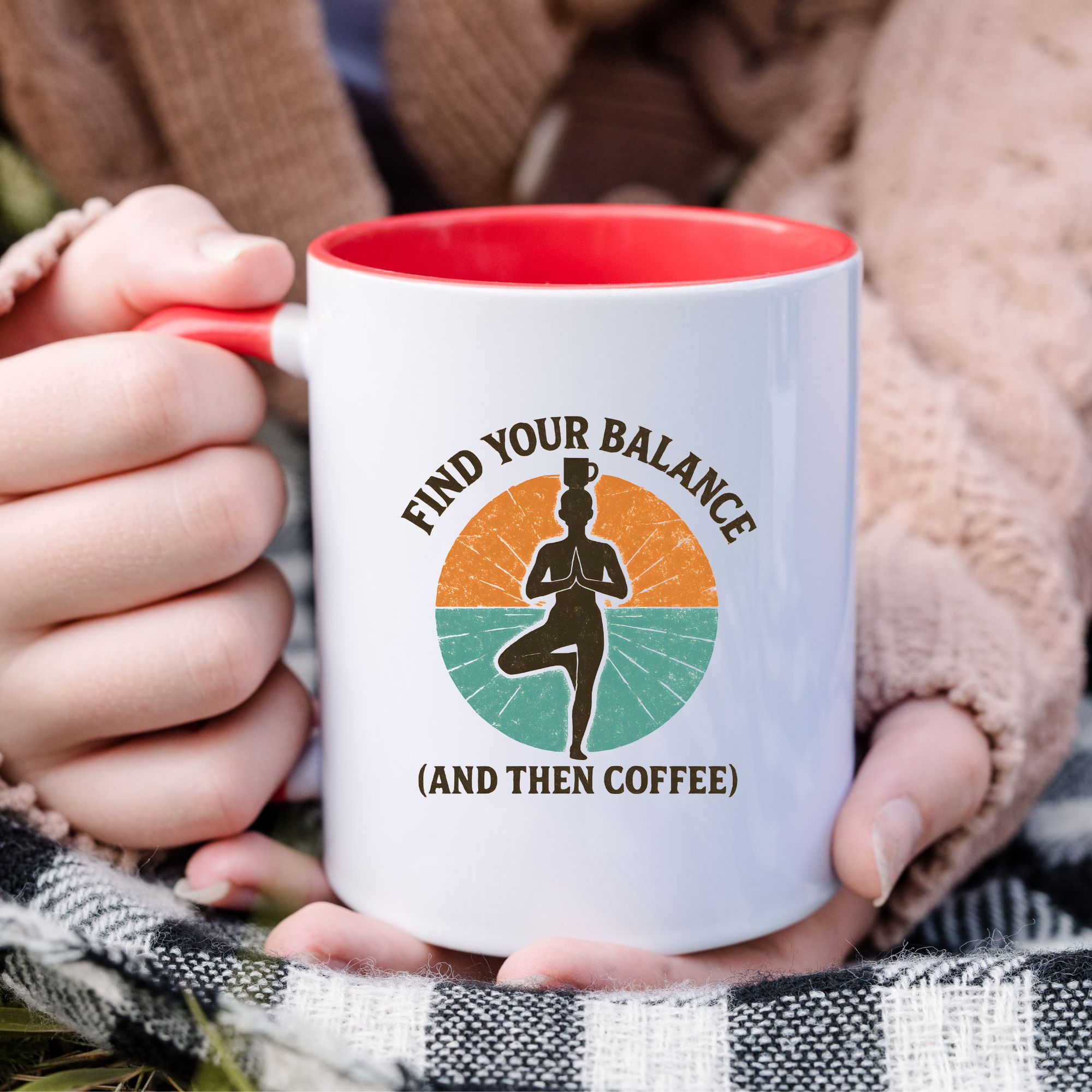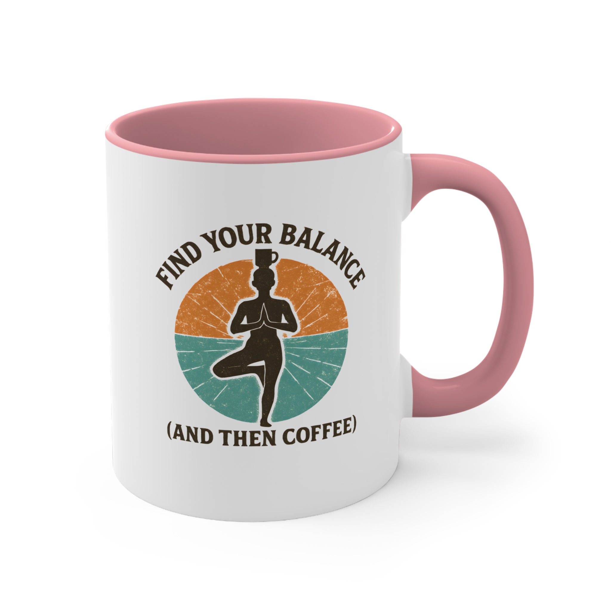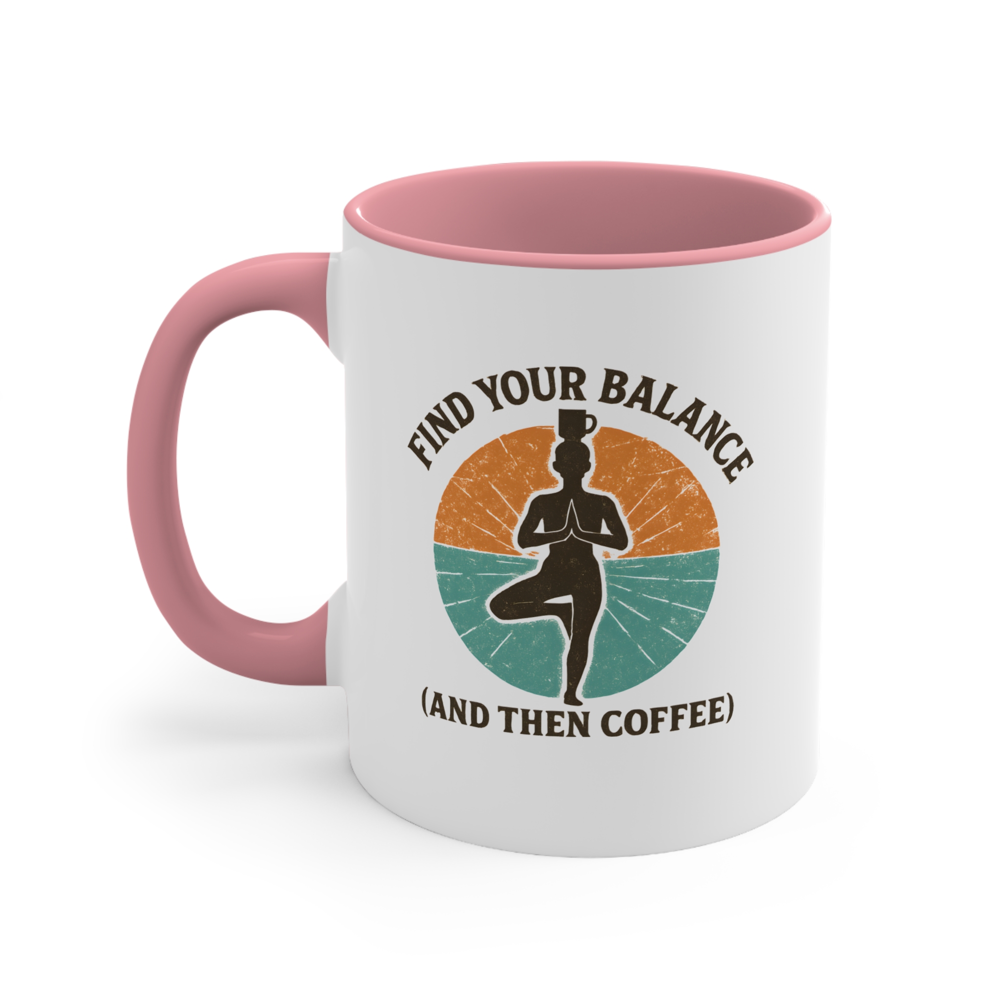 Balance isn’t just for the mat — it’s for your morning routine too. This balance yoga coffee mug features a serene yogi standing strong in tree pose, coffee cup balanced on their head, surrounded by earthy retro colours. It’s the perfect blend of mindfulness and caffeine — start centered, then caffeinate.