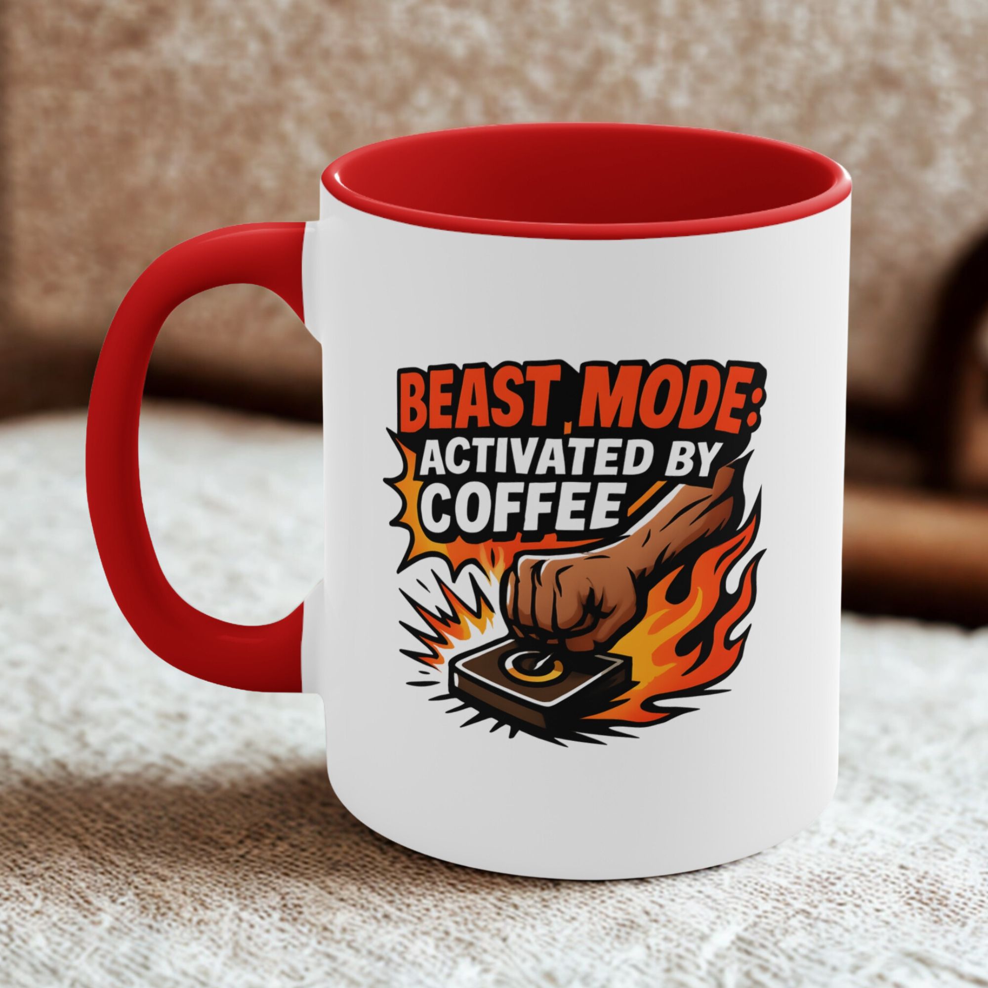 Ignite your day with the beast mode coffee mug – a bold, fiery 11oz ceramic cup for those who lift heavy, work hard, and sip harder.