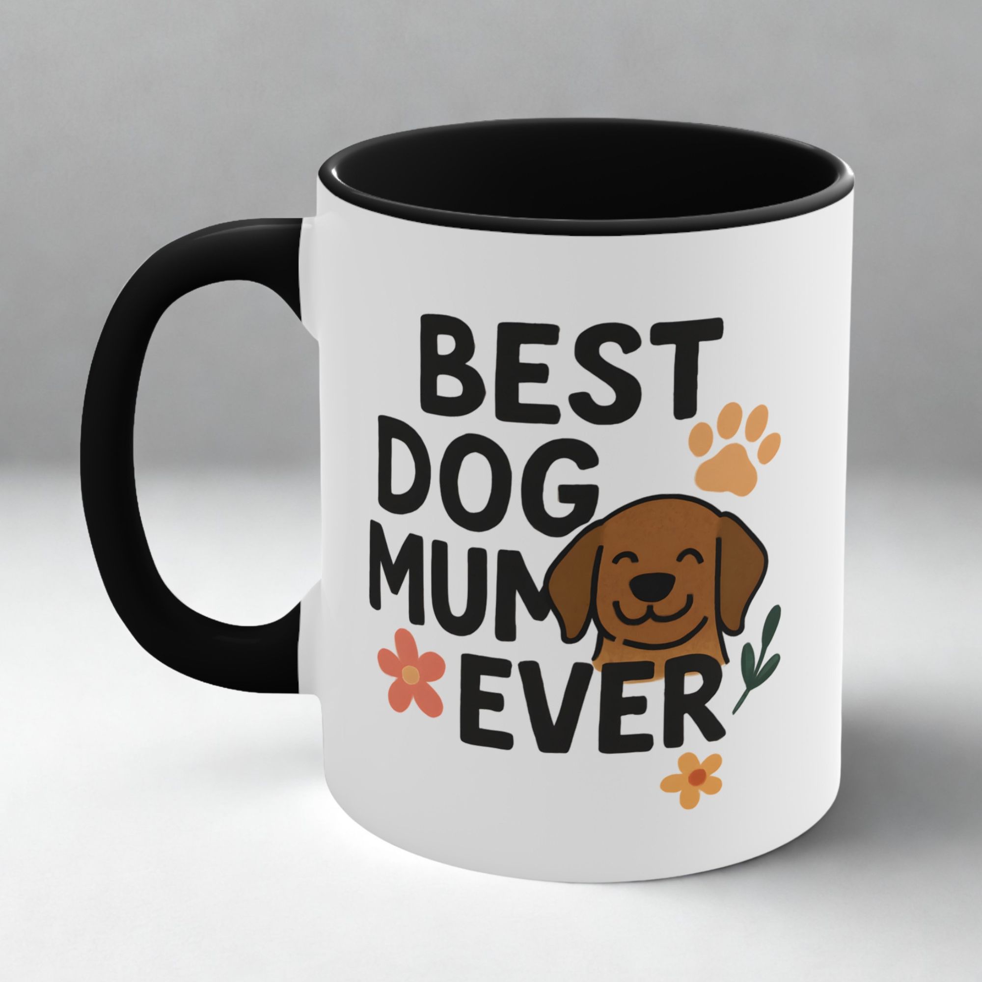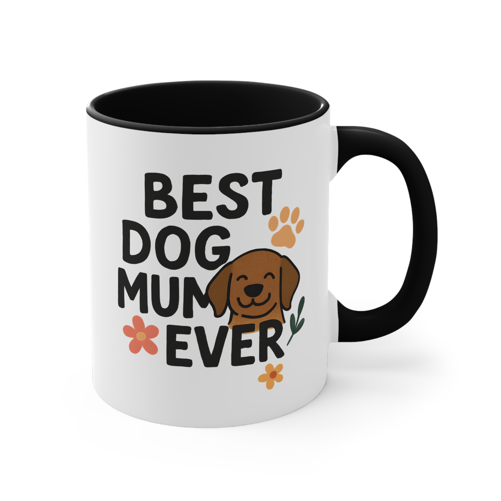 Featuring a playful “Best Dog Mum Ever” design with a happy dog illustration, this mug is perfect for coffee, tea, and gifting.