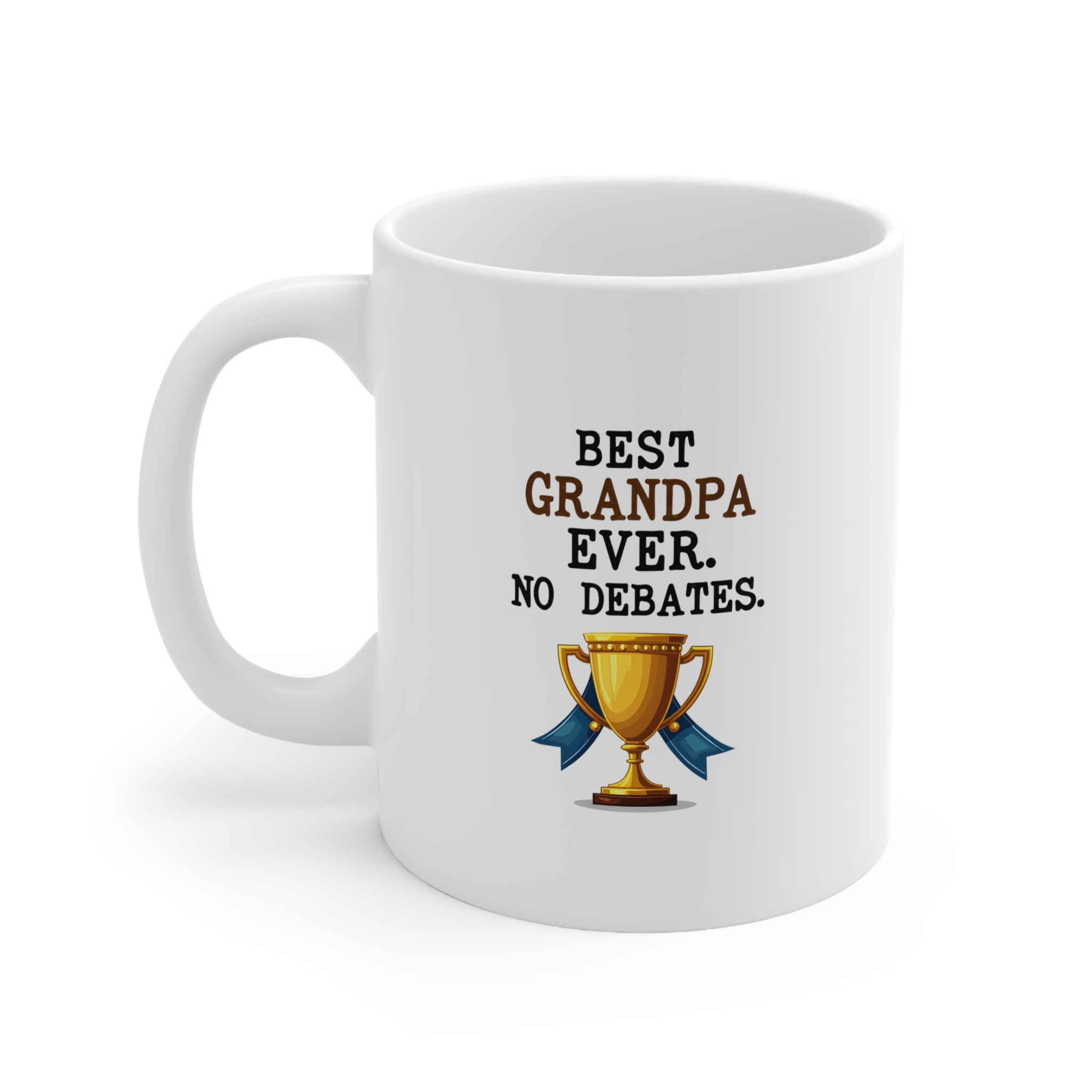 Best Grandpa Ever Mug – Funny “No Debates” Gift with Trophy Ribbon