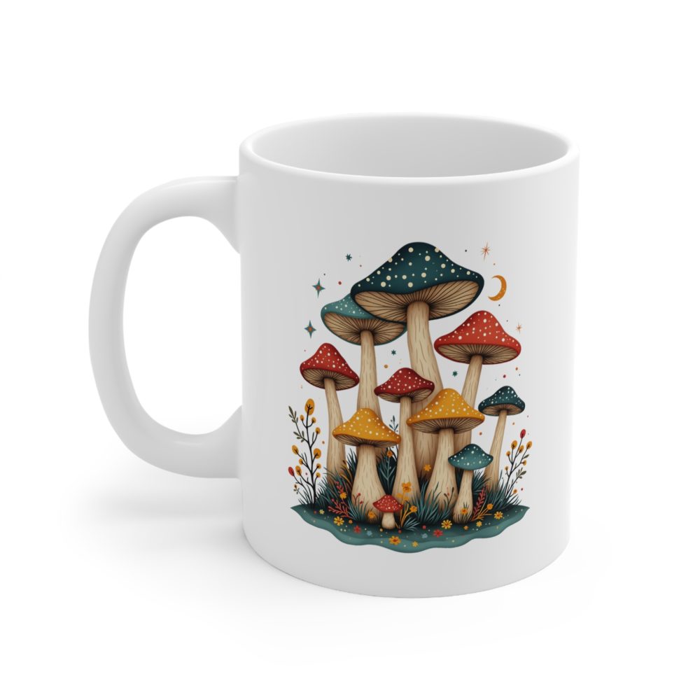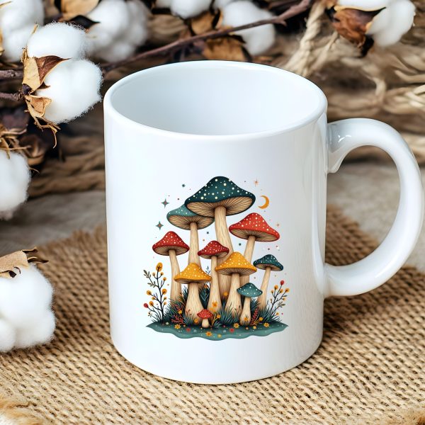 Step into a world of natural charm with this beautiful boho mushroom design mug. Featuring intricate, whimsical mushrooms with a boho aesthetic, this mug brings a touch of earthy elegance to your coffee or tea moments. The simple, yet artistic design is perfect for nature lovers or those who appreciate a peaceful, organic vibe in their kitchenware. Made from durable white ceramic with a glossy finish, it features a C-shaped easy-grip handle for comfort and convenience. Plus, it’s lead and BPA-free, so you can enjoy your favorite drink worry-free.