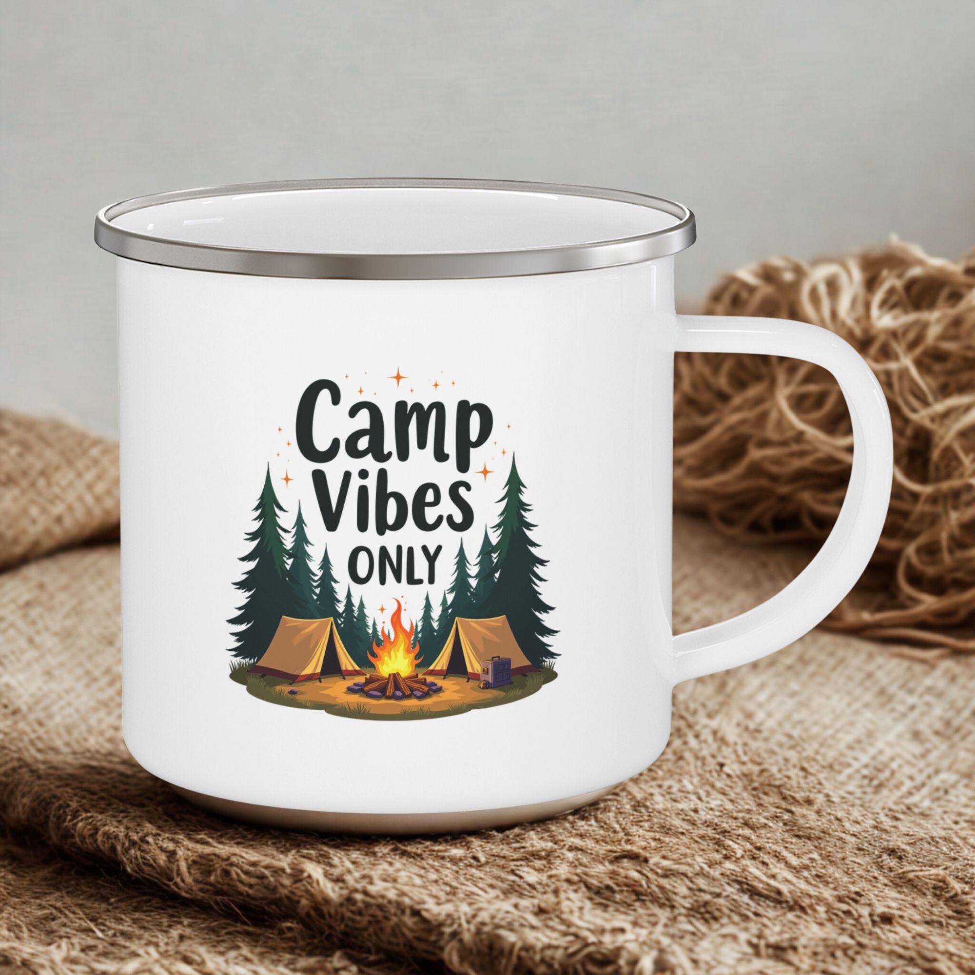 Camp Vibes Only Enamel Mug – Camp Vibes Mug | Camping & Outdoor Gift (12oz)