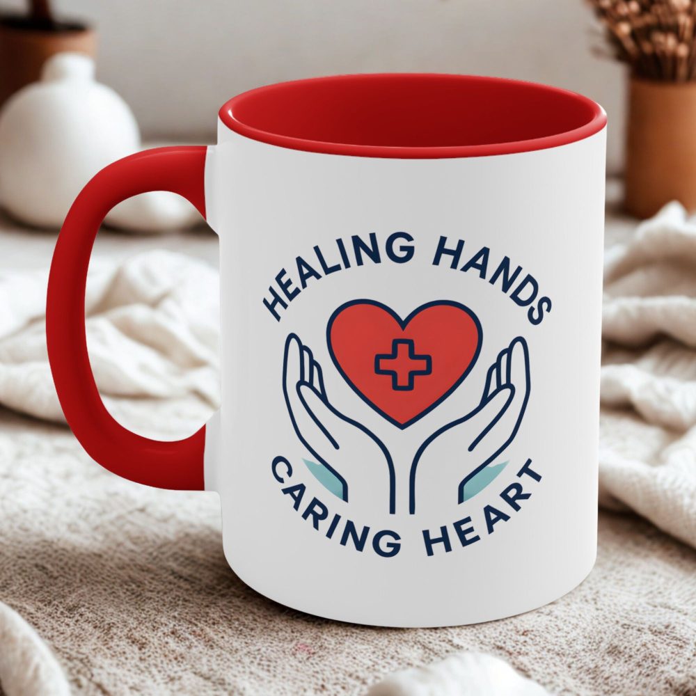 This caring heart nurse mug honors the compassionate spirit of those who care with both heart and hands. Featuring a red heart with a medical cross, gently held by open hands, and the words “Healing Hands, Caring Heart”, this mug is a heartfelt way to say thank you to the nurses who go above and beyond every day.