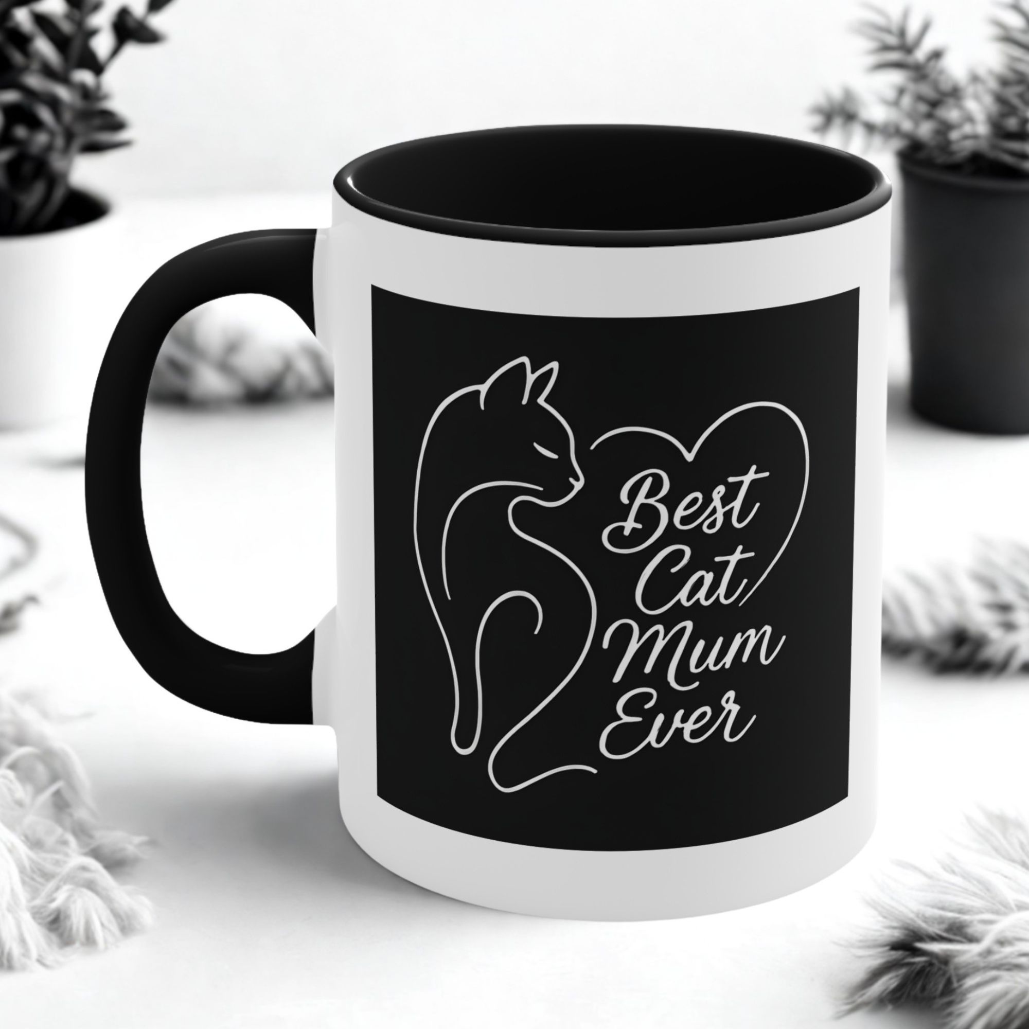 This stylish cat lover gift mug is designed for cat mums who appreciate a clean and modern look. Featuring an elegant line-art cat forming a heart shape alongside the phrase “Best Cat Mum Ever”, this mug blends simplicity with meaning.