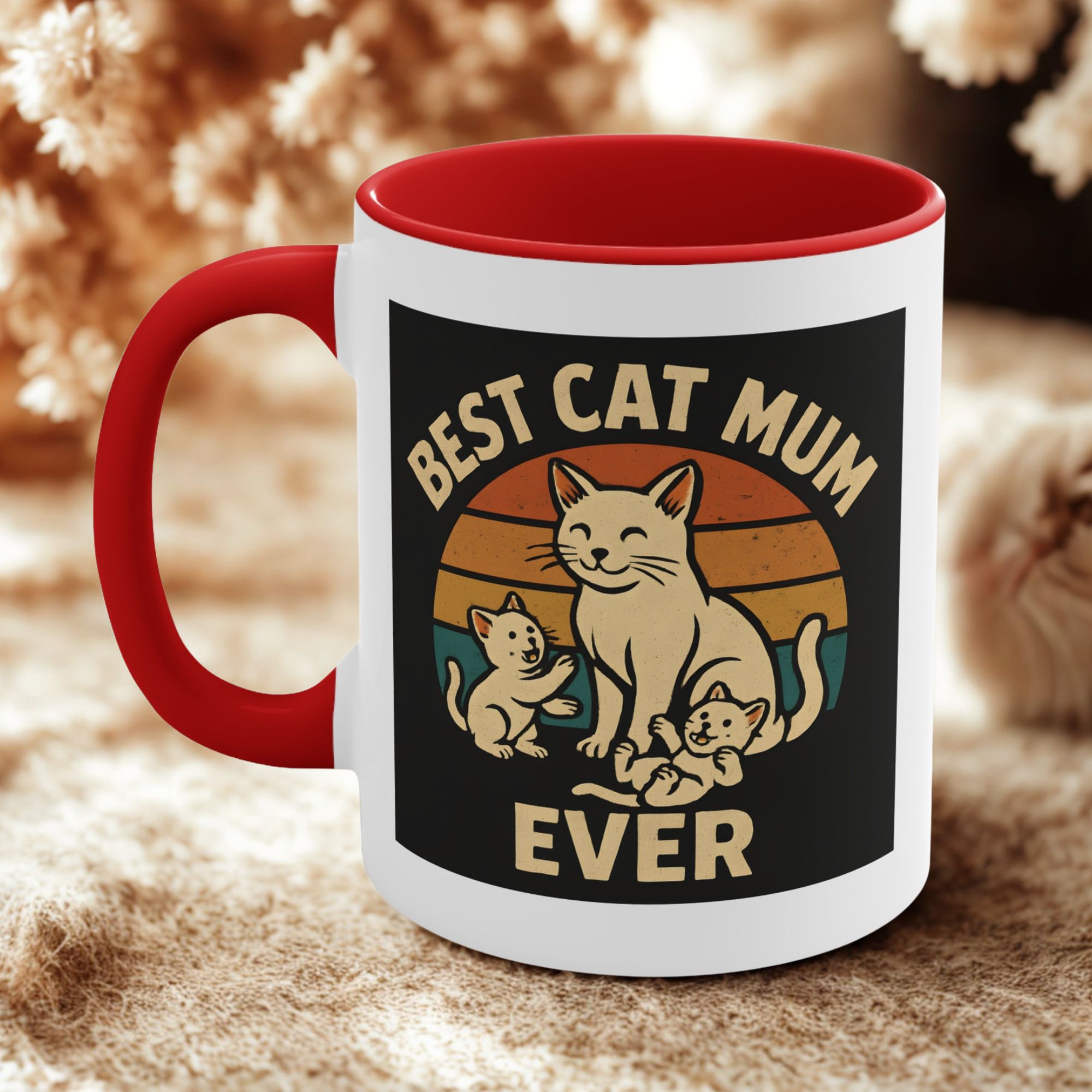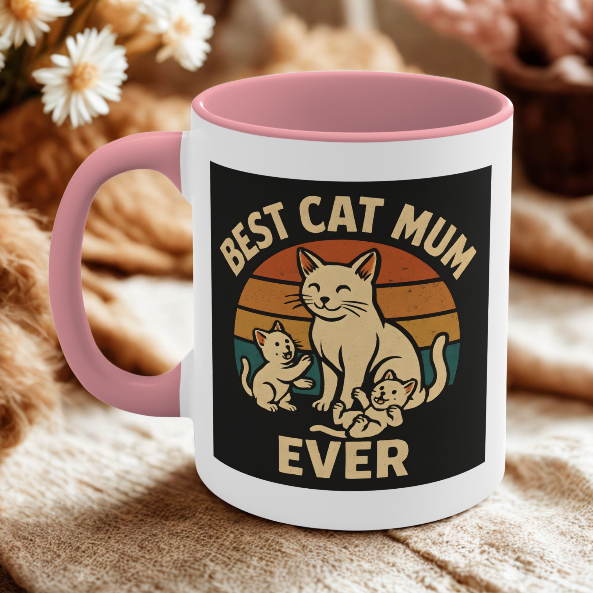 Featuring a retro “Best Cat Mum Ever” design with adorable kittens, this mug celebrates the love between a cat mum and her furry family.