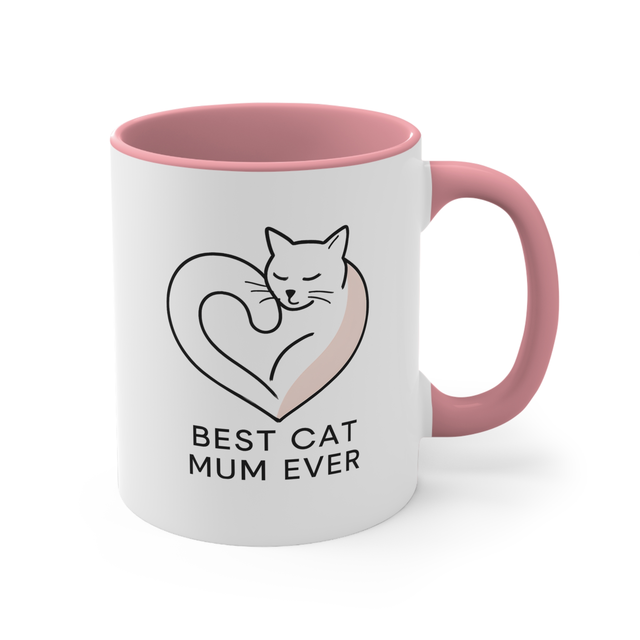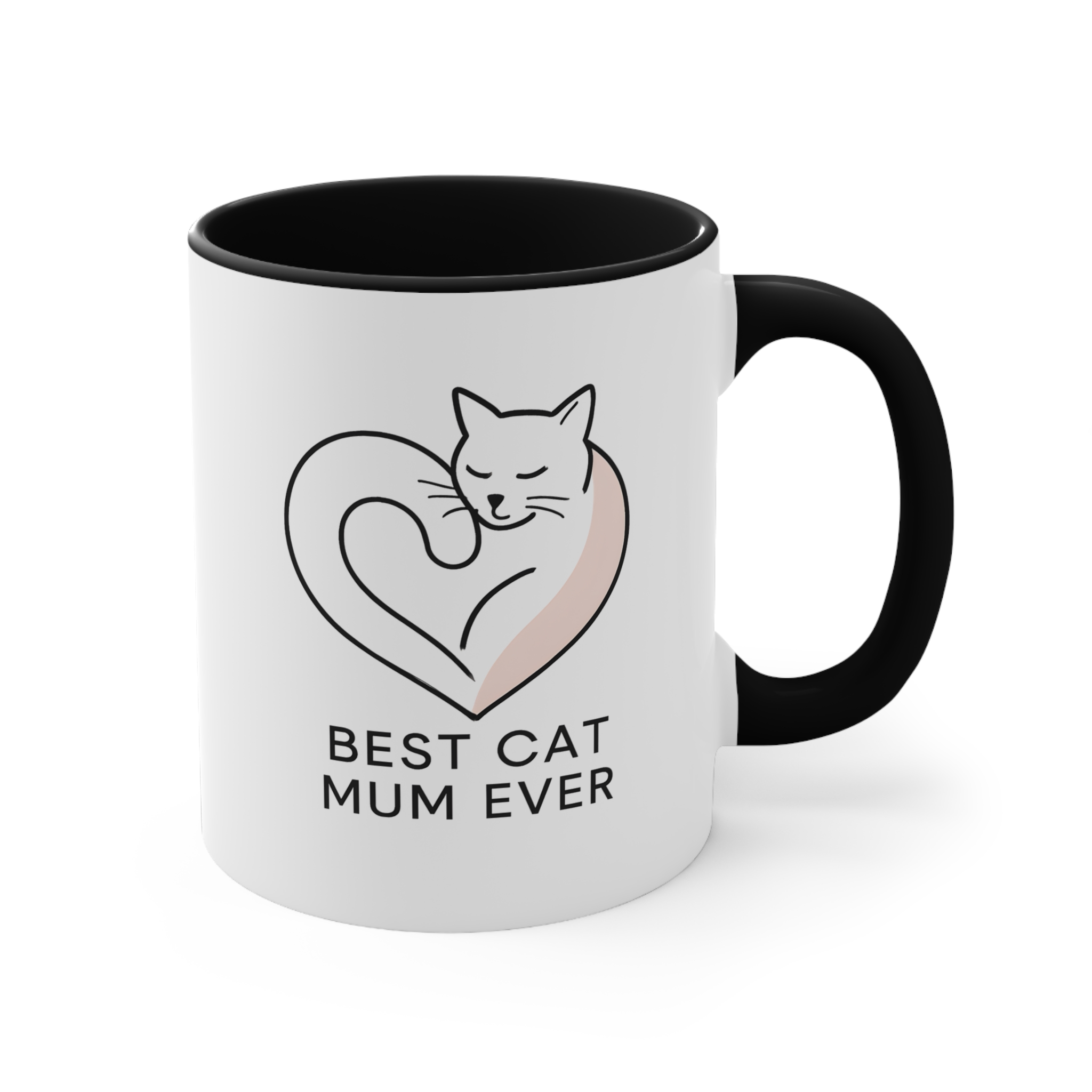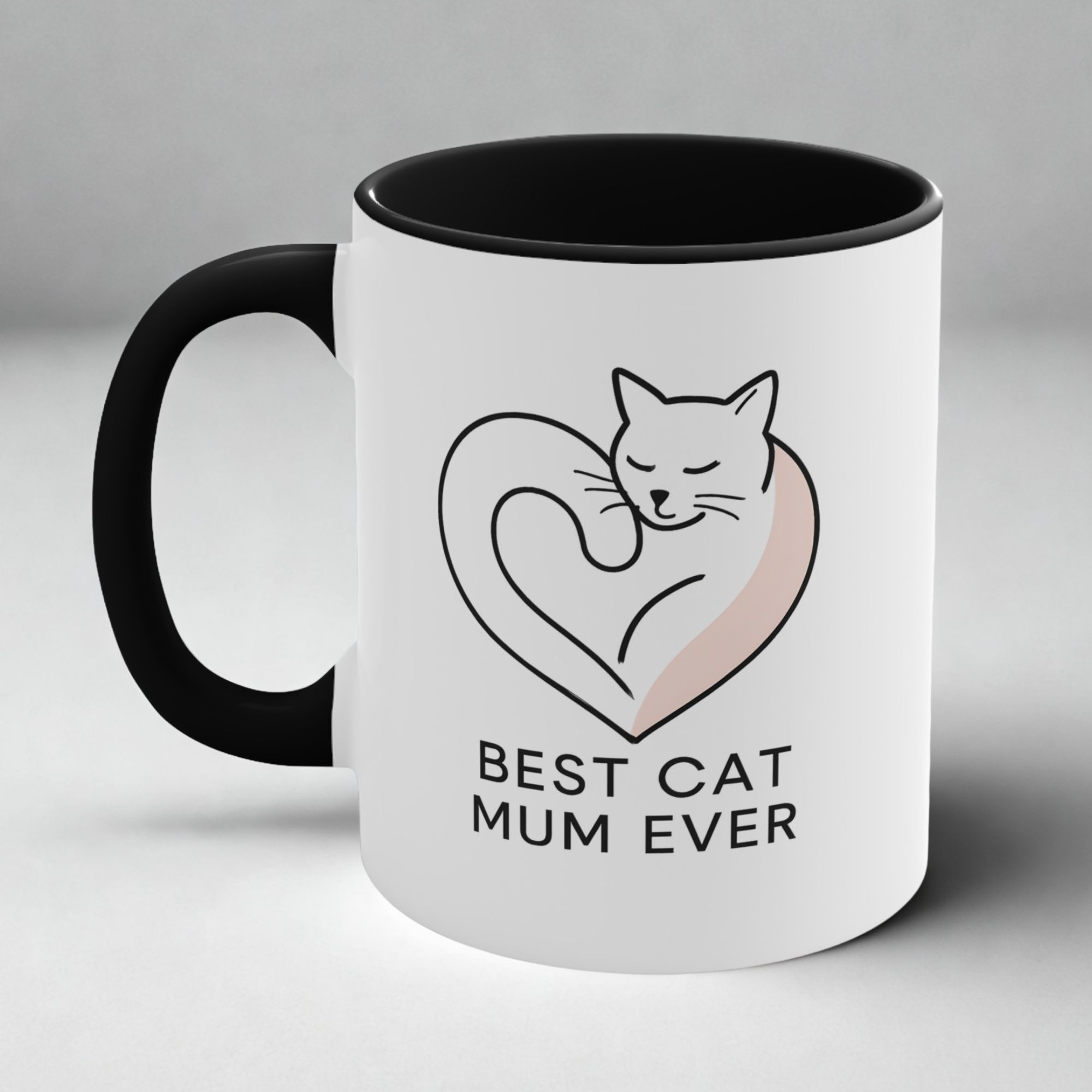 This adorable cat mum heart mug is designed to celebrate the love between a cat and their owner. Featuring a soft minimalist cat illustration forming a heart shape, paired with the message “Best Cat Mum Ever”, this mug is both meaningful and stylish.