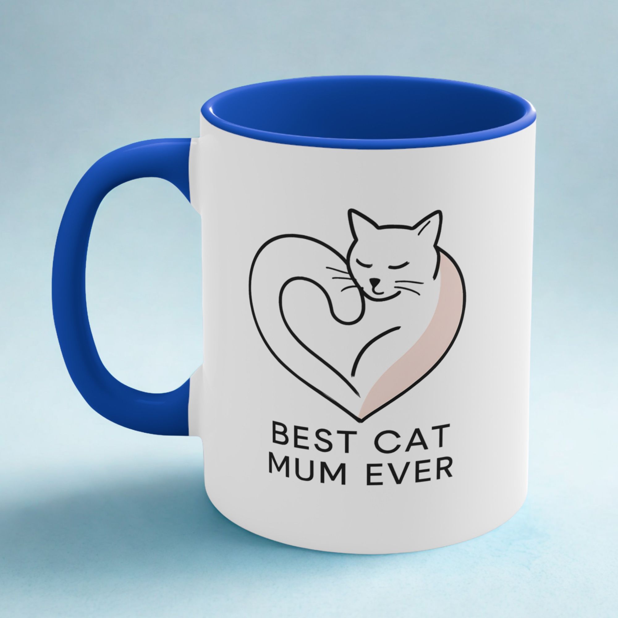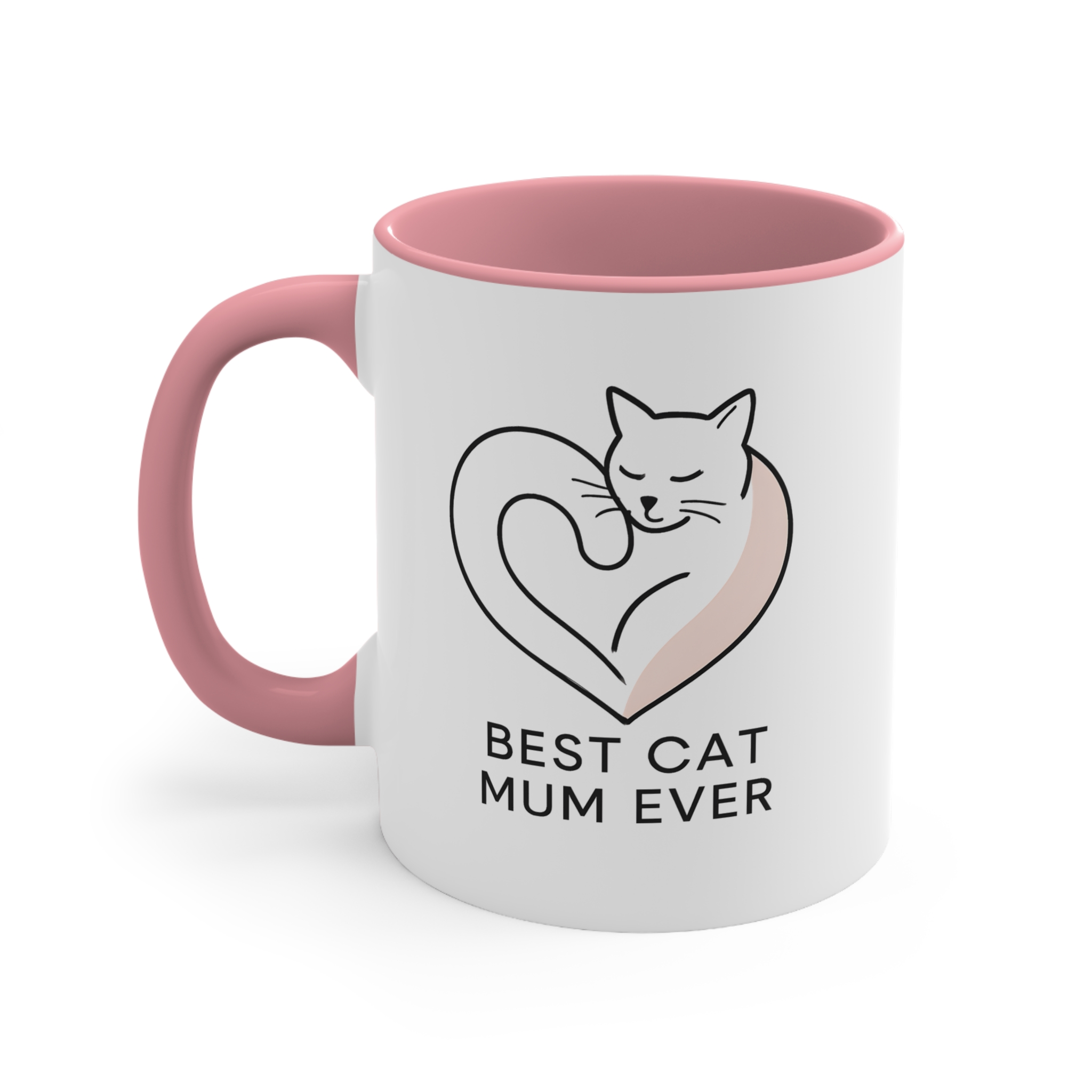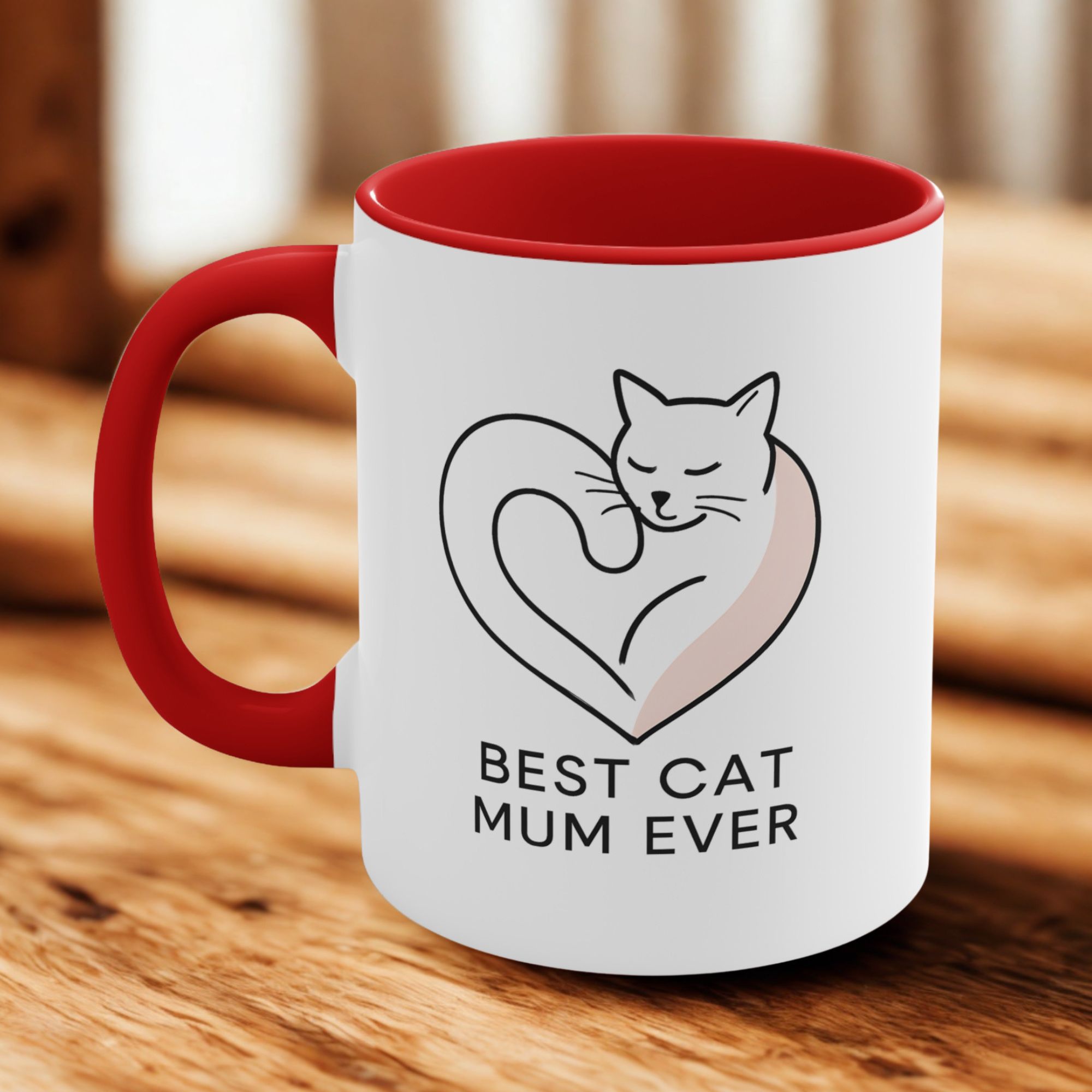 This adorable cat mum heart mug is designed to celebrate the love between a cat and their owner. Featuring a soft minimalist cat illustration forming a heart shape, paired with the message “Best Cat Mum Ever”, this mug is both meaningful and stylish.
