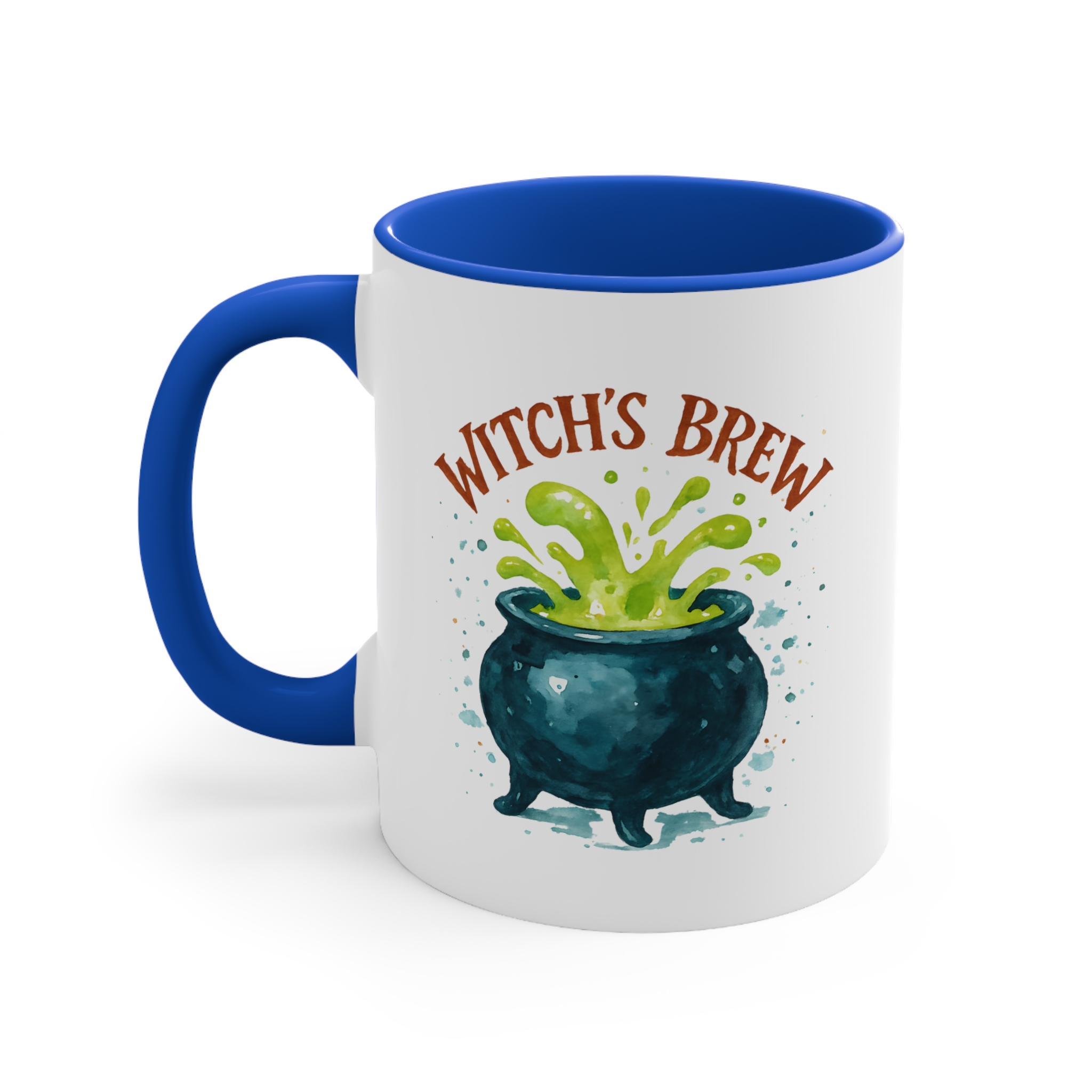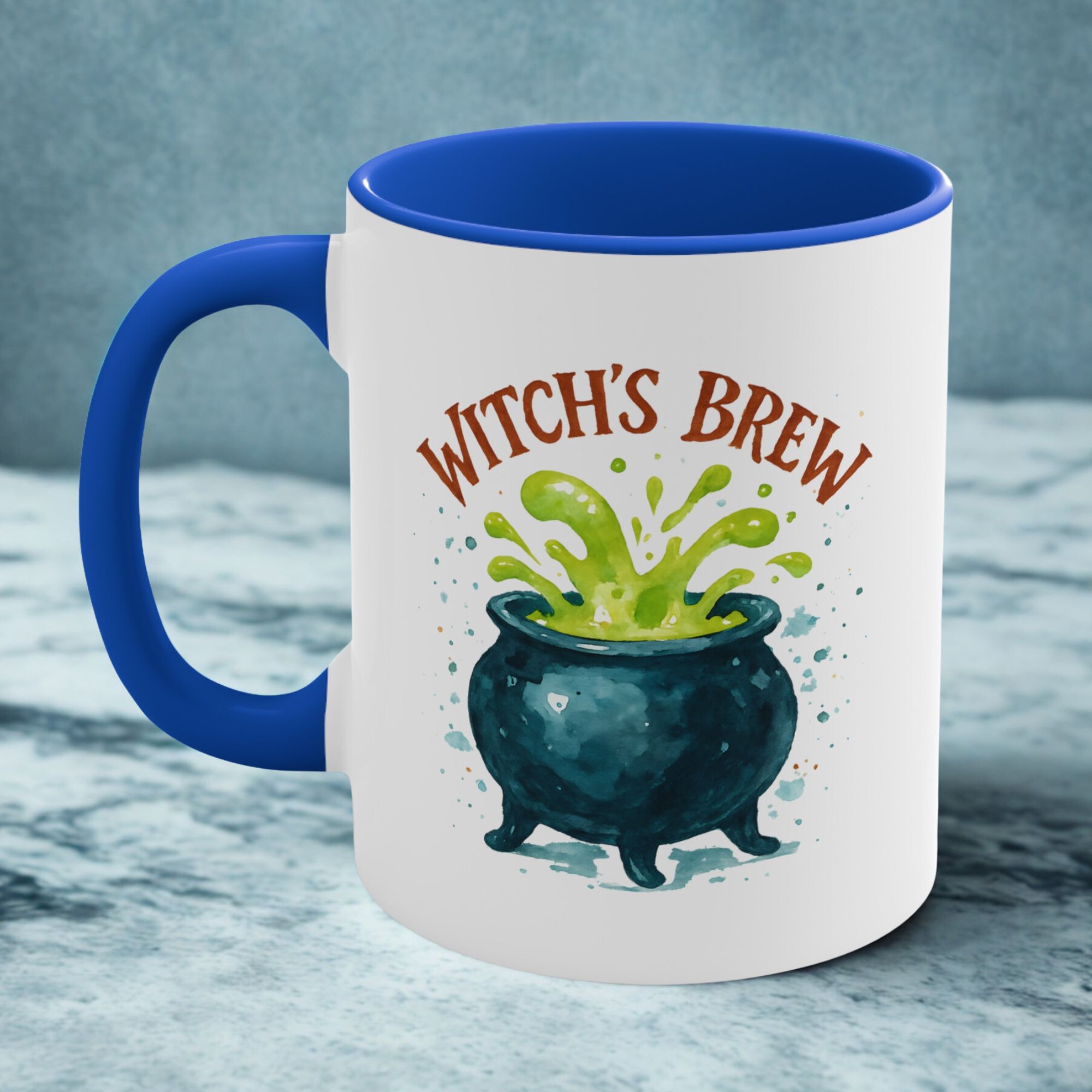 Crafted from premium ceramic, this 11oz mug is durable, microwave safe, and dishwasher friendly. The blue accent handle and interior add a bright, eye-catching contrast to the witchy artwork.
