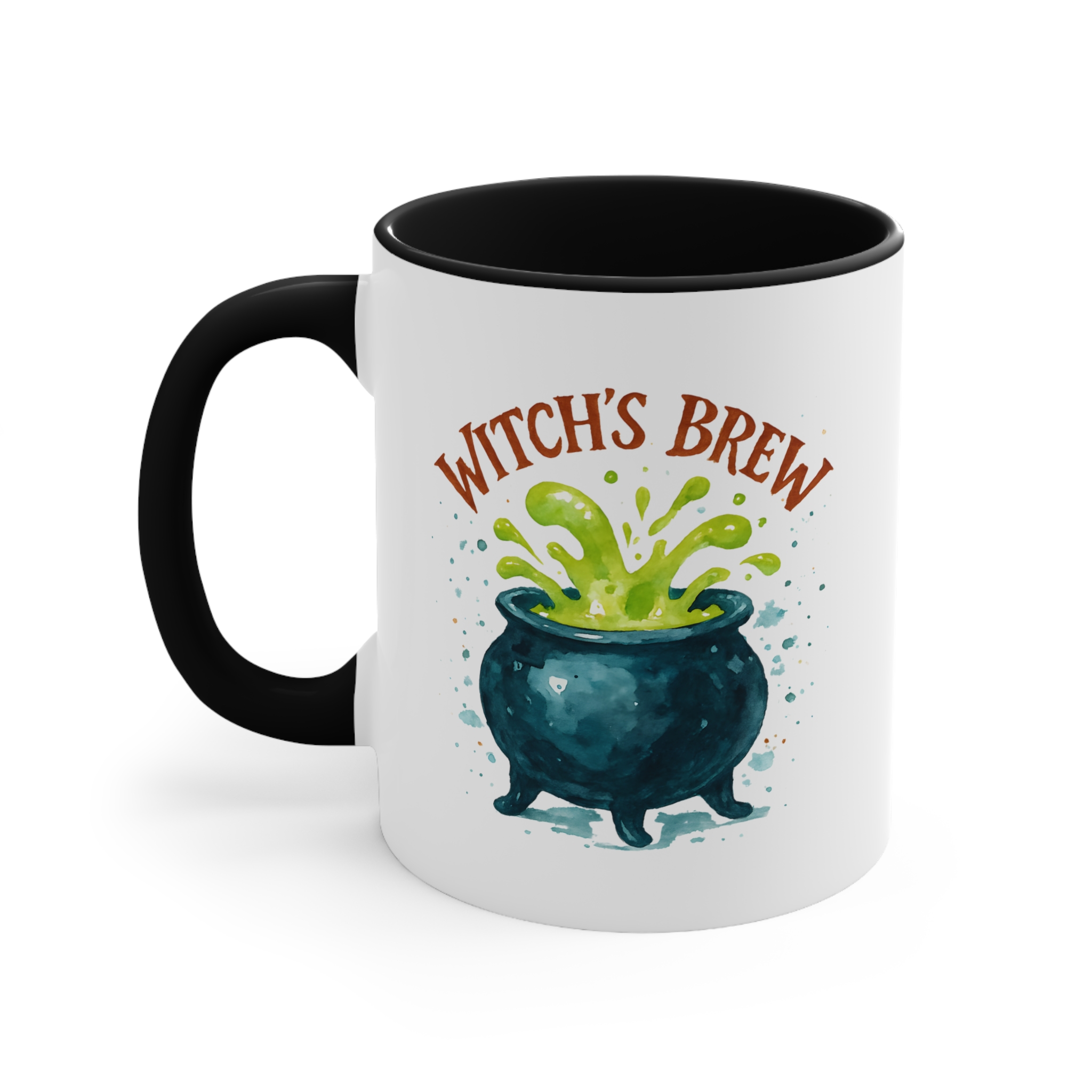 Brew up some spooky fun with this cauldron Halloween mug featuring a bubbling green potion in a witch’s cauldron with the text “Witch’s Brew.” Perfect for Halloween lovers, witches at heart, and anyone who enjoys a magical touch to their morning coffee or tea.