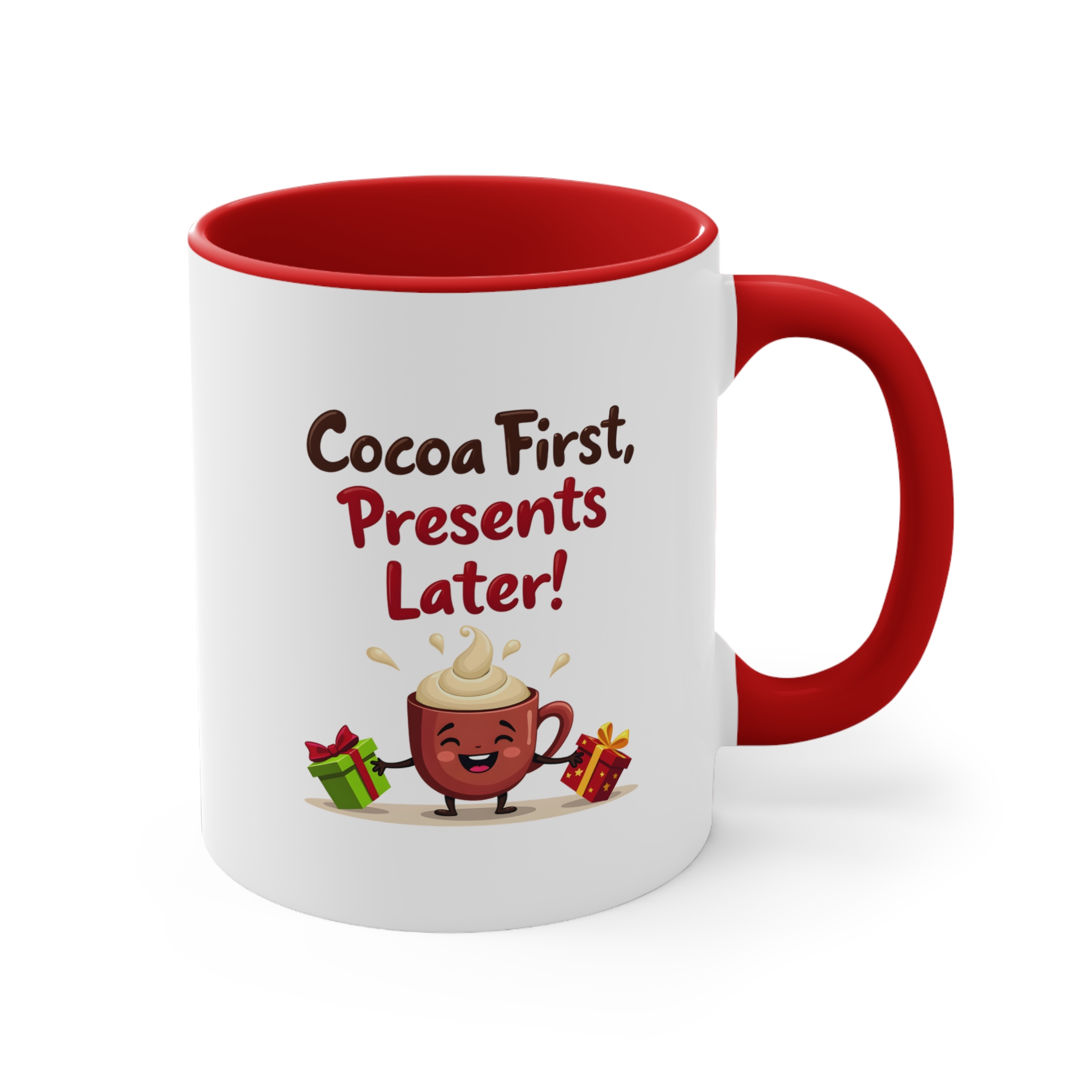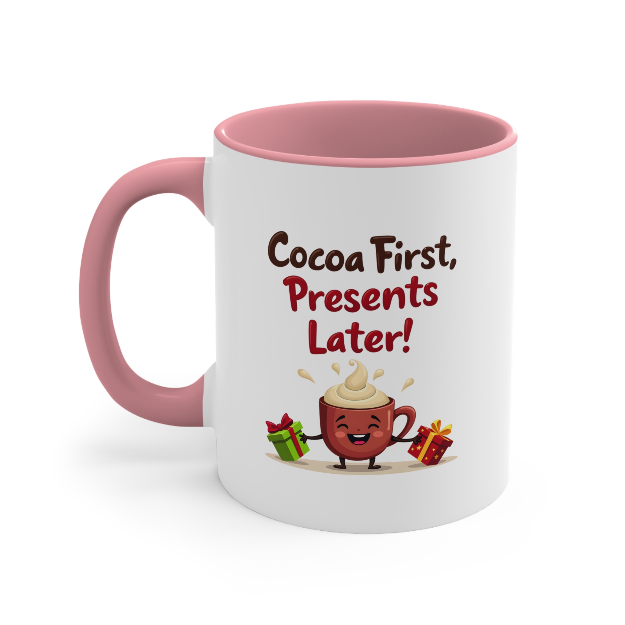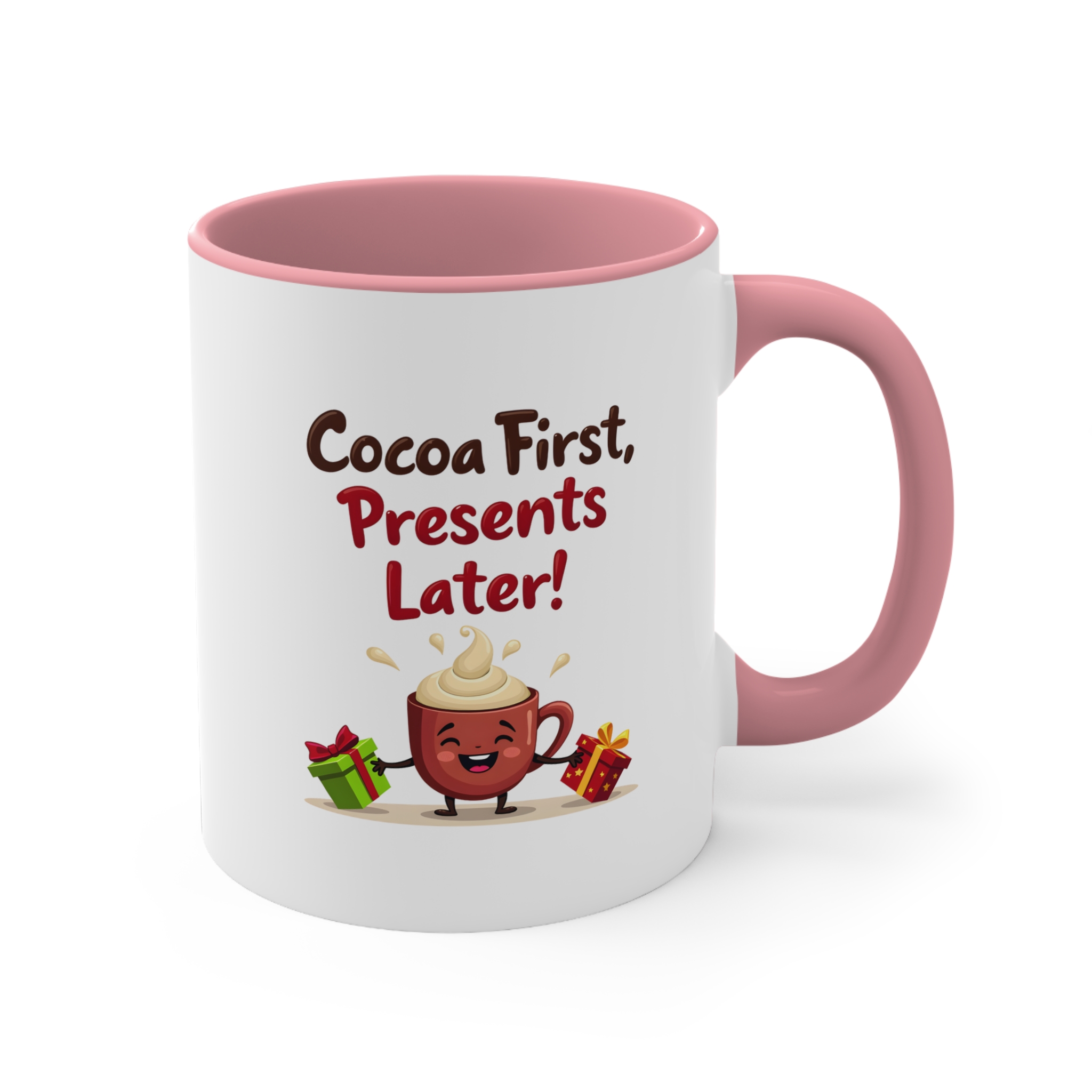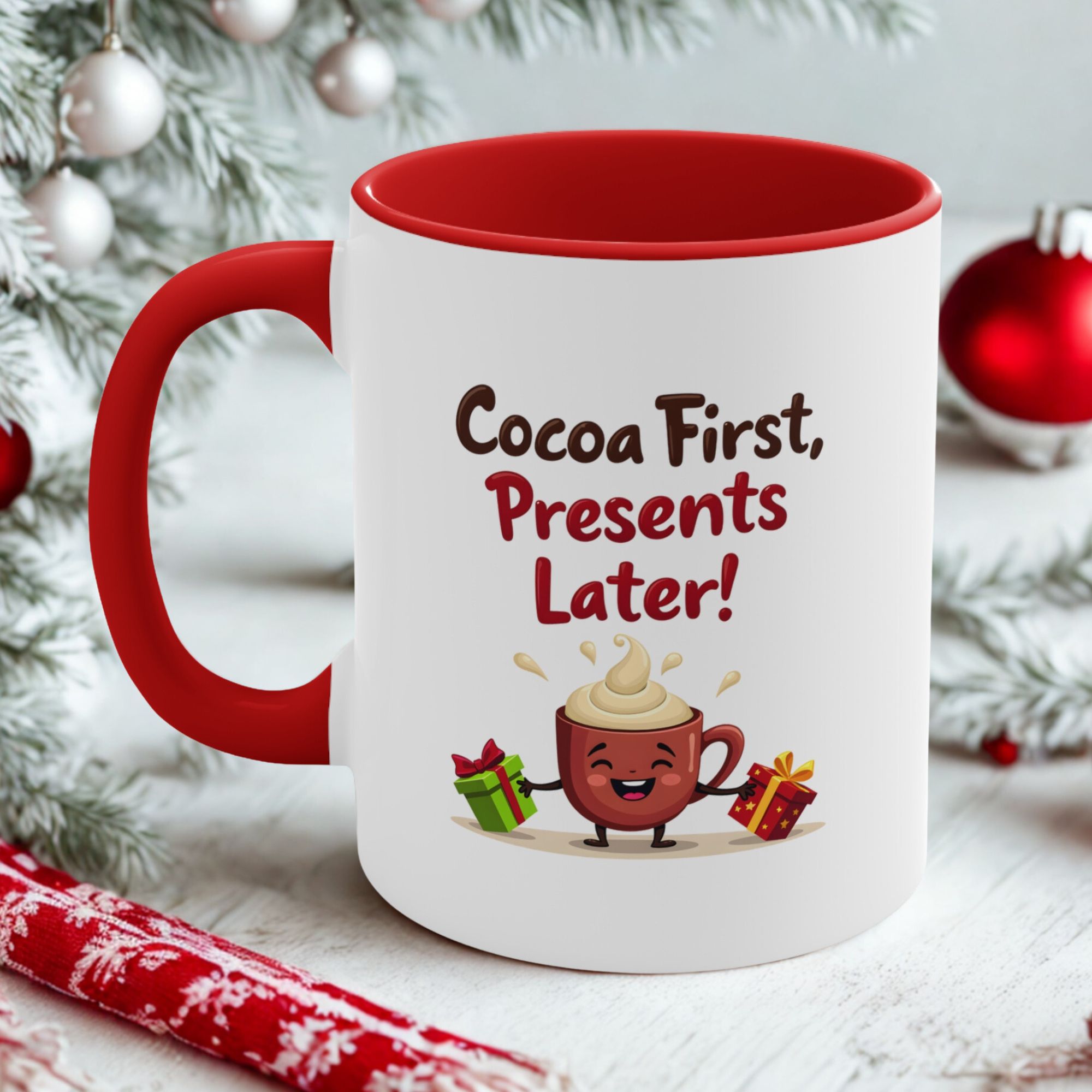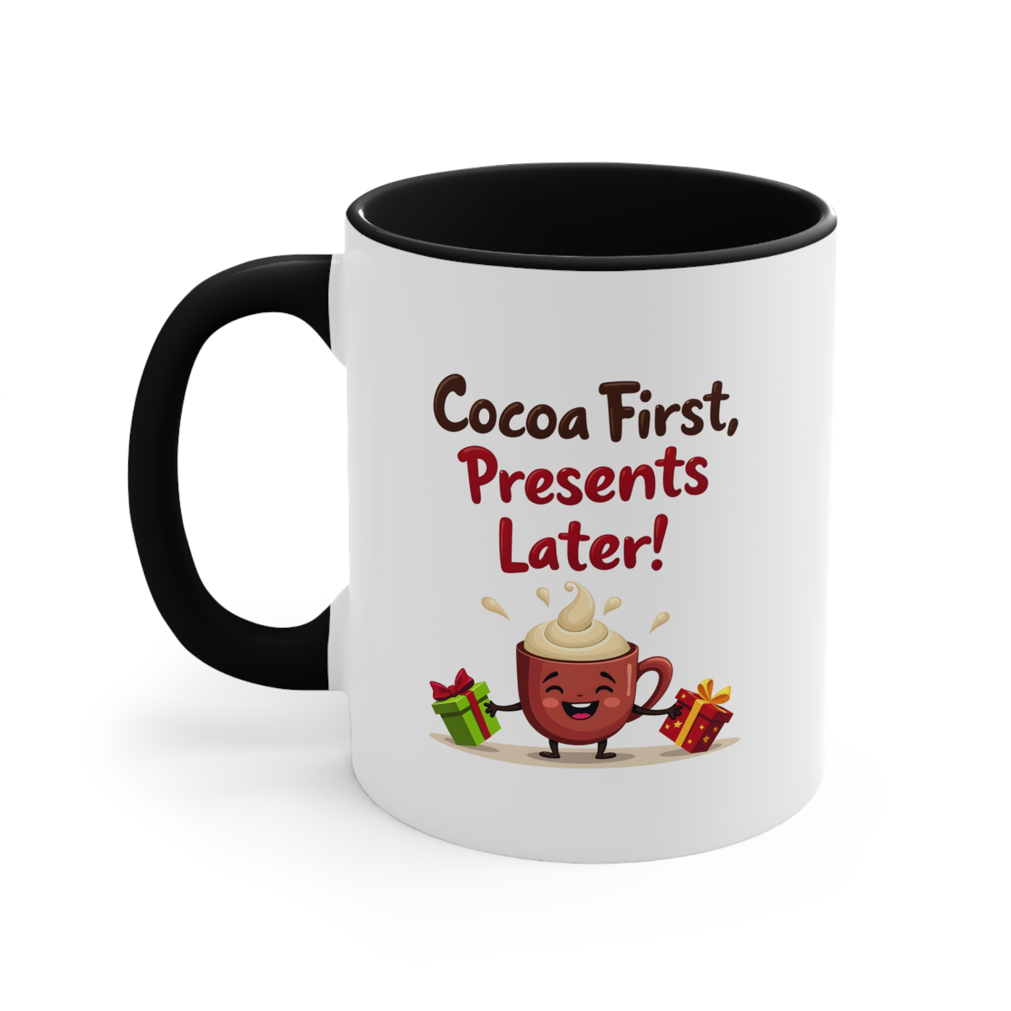 ✔ Adorable “Cocoa First, Presents Later!” design