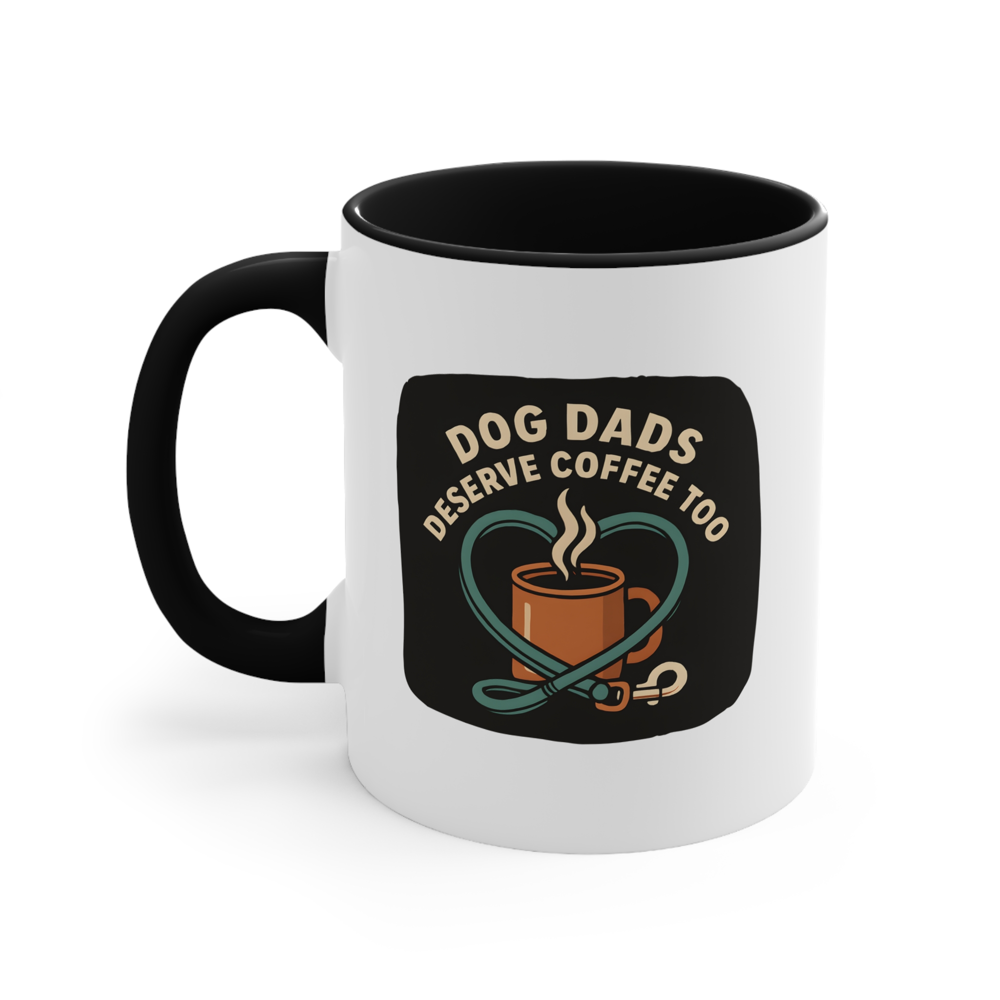 Dog walks before dawn. Slobbery kisses at 6AM. It’s no wonder dog dads need coffee too—and now there’s a mug that says it loud and proud. This coffee dog dad mug features a warm brown coffee cup with a teal leash forming a heart, symbolizing the perfect bond between a man and his pup… and his brew.