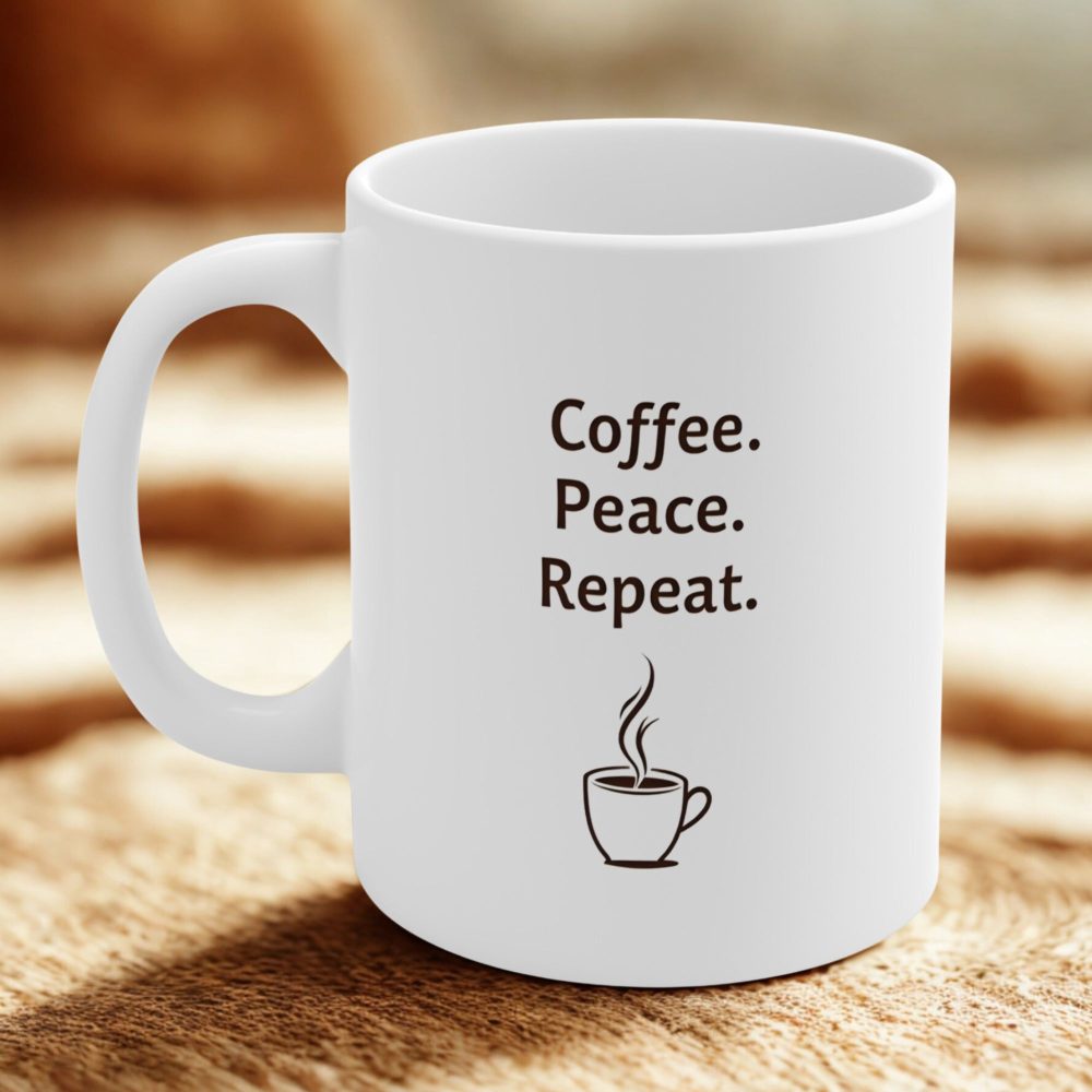 Start your day in a calm rhythm with this Coffee Peace Repeat Mug — a minimalist design for those who enjoy slow mornings and quiet coffee rituals.