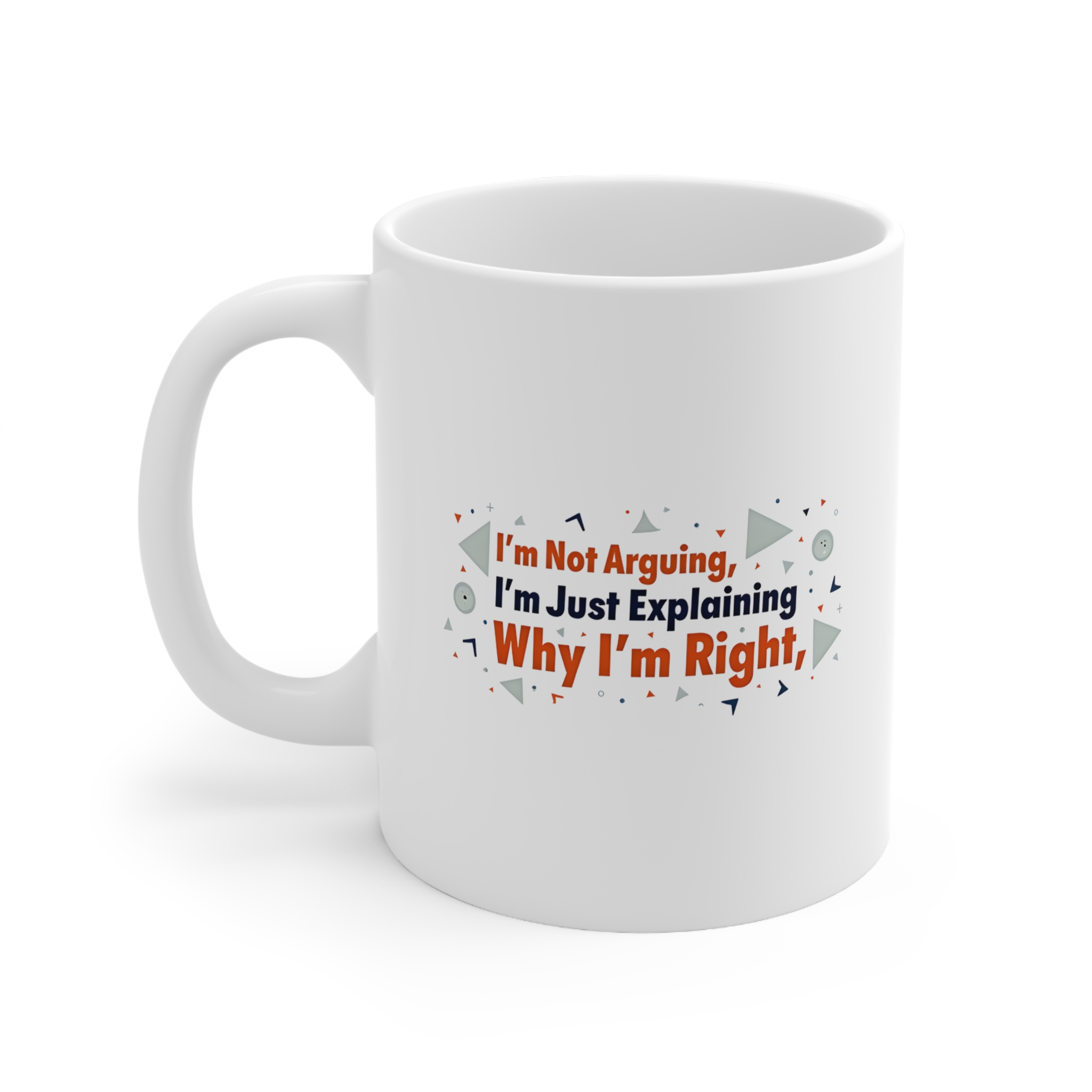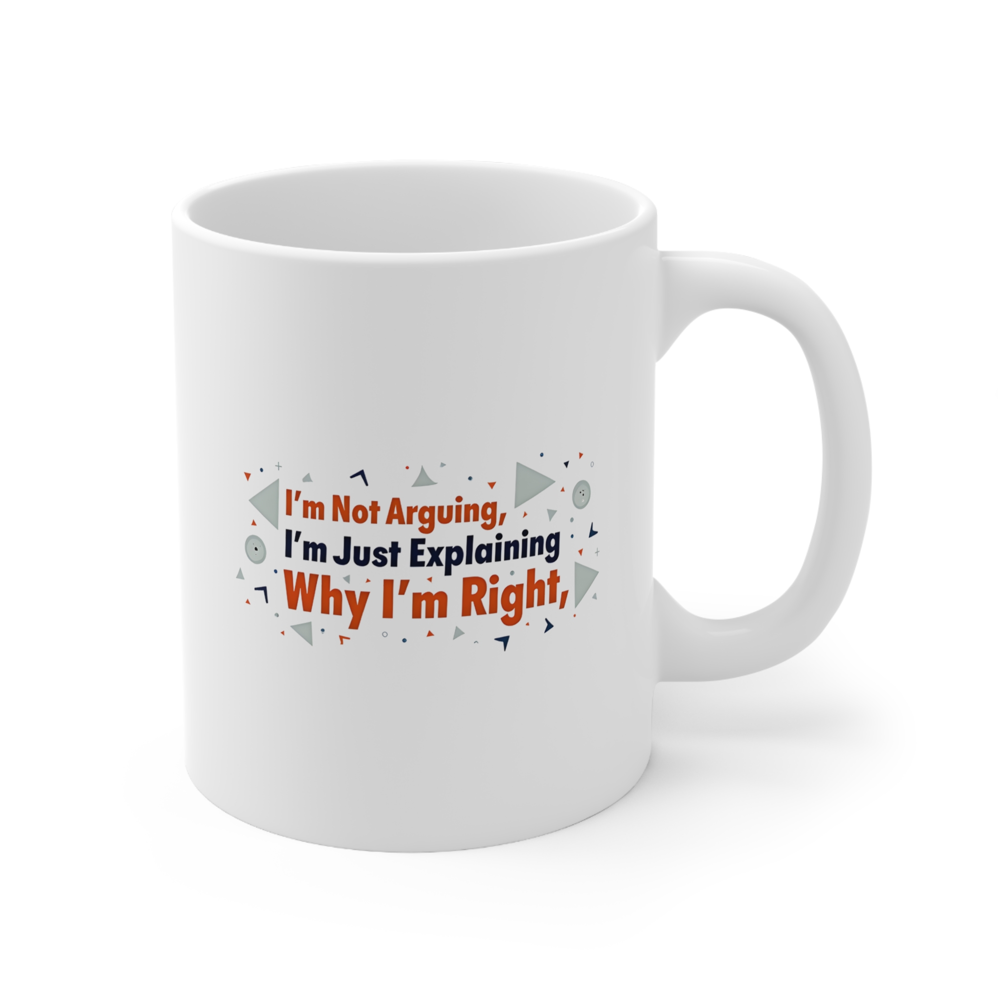 Colleague mug with “I’m Not Arguing, I’m Just Explaining Why I’m Right” quote in navy & orange—perfect for passionate office debates.