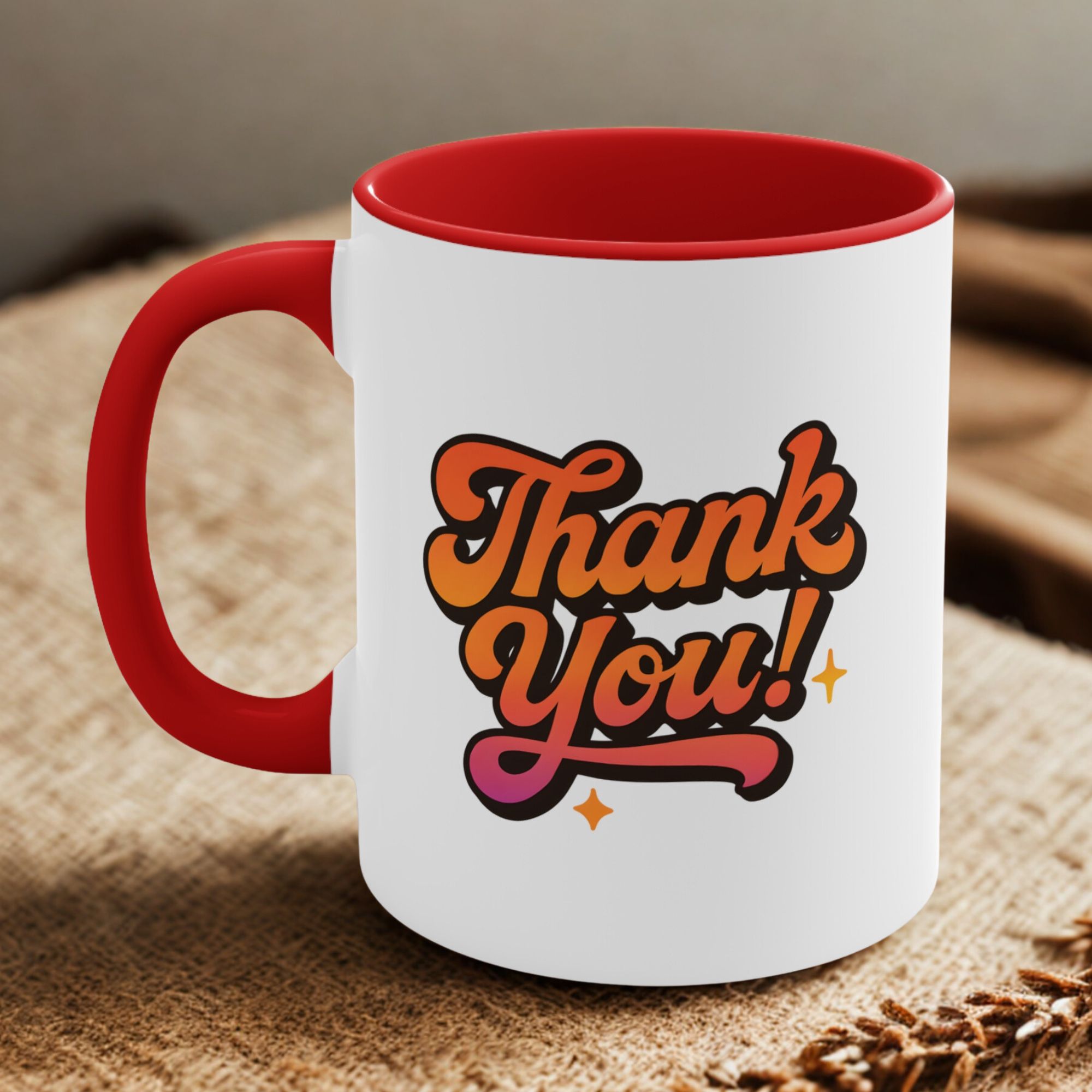 Express your thanks in full color with this vibrant thank you mug. A cheerful, retro-inspired design that makes every sip feel appreciated.