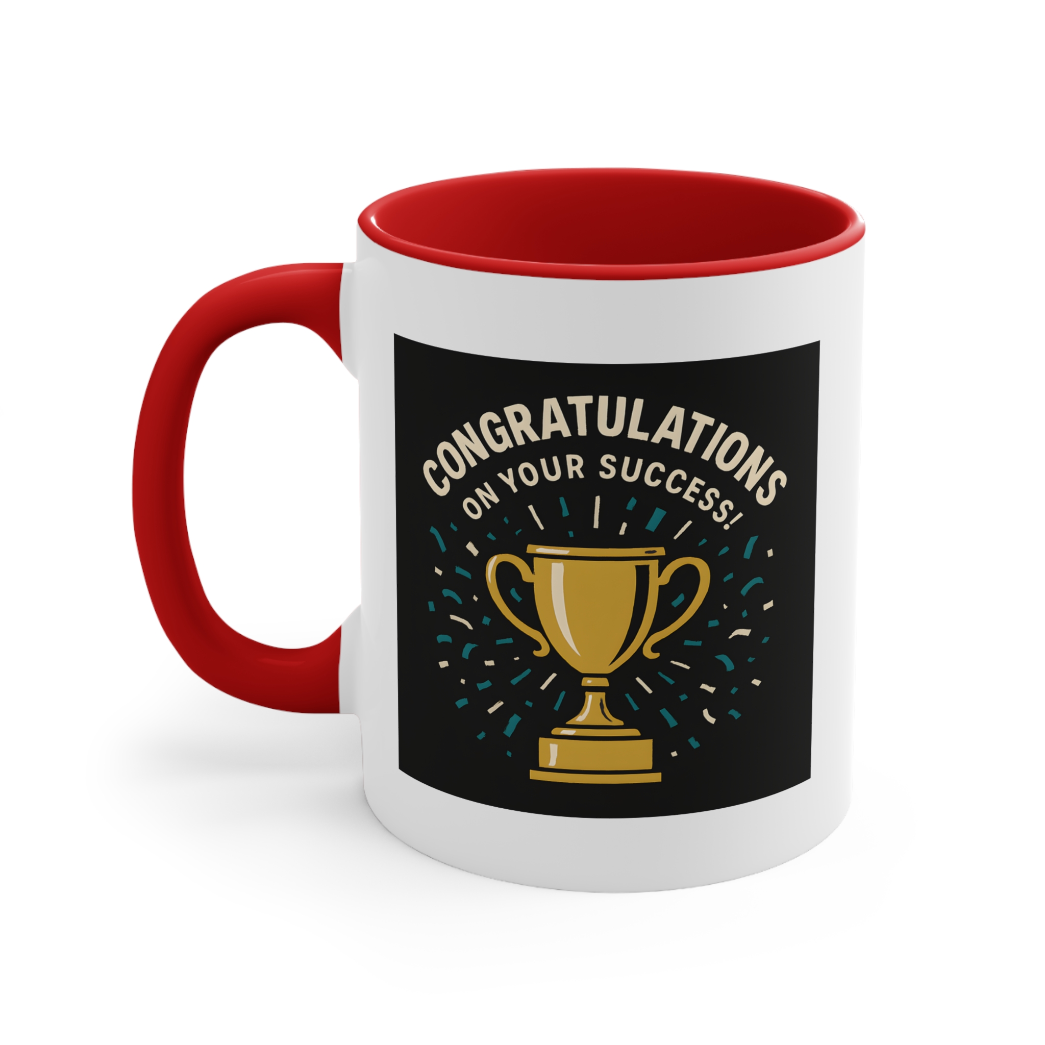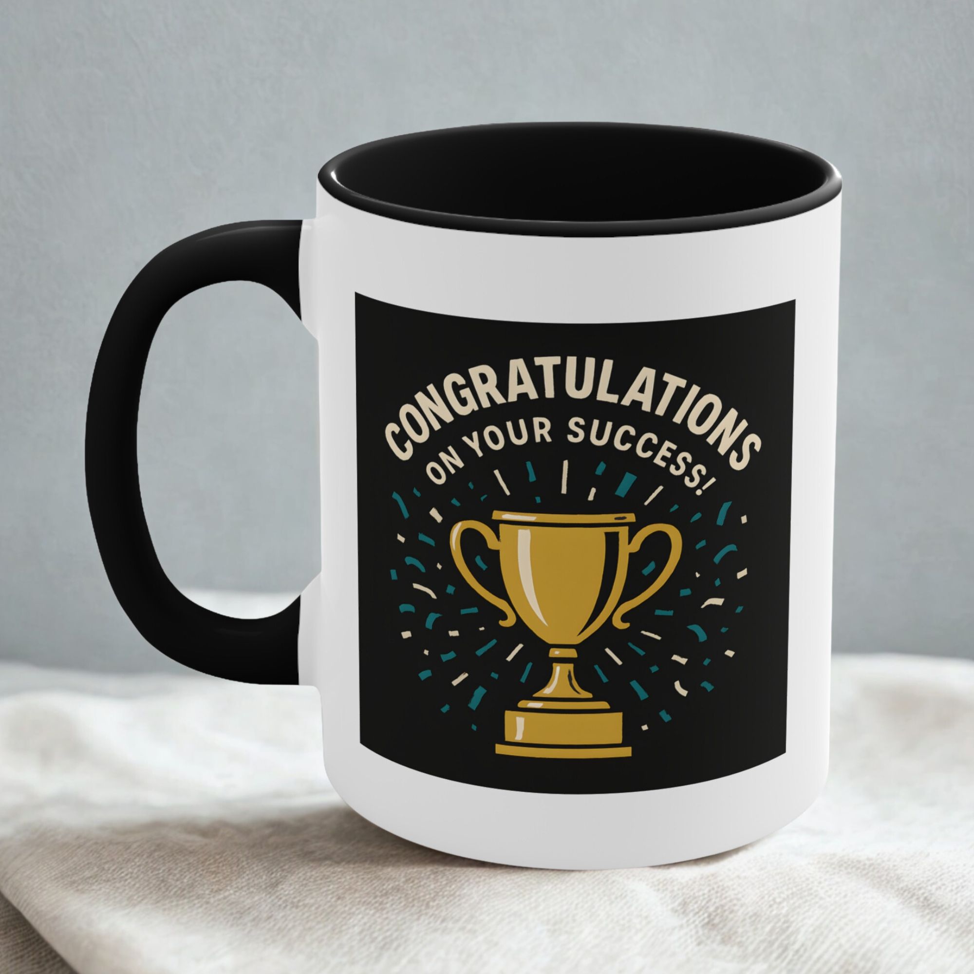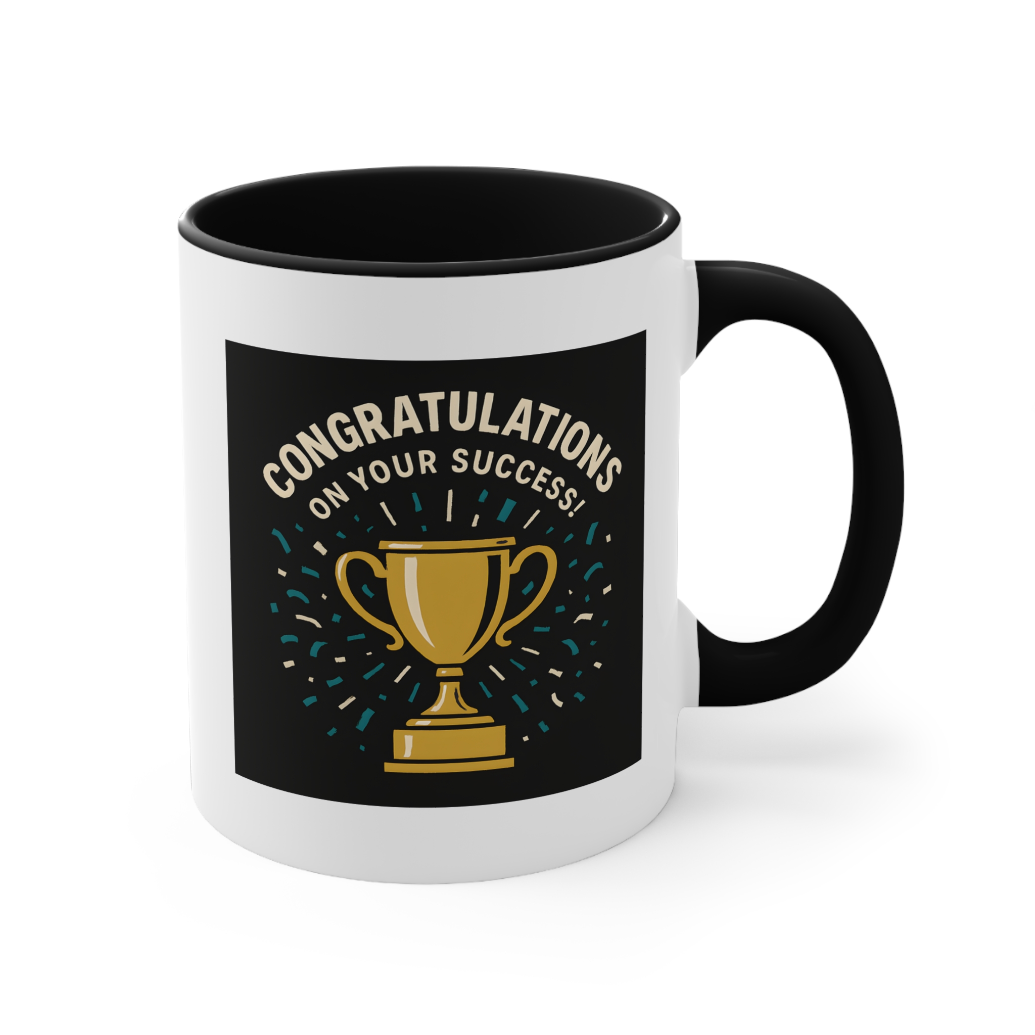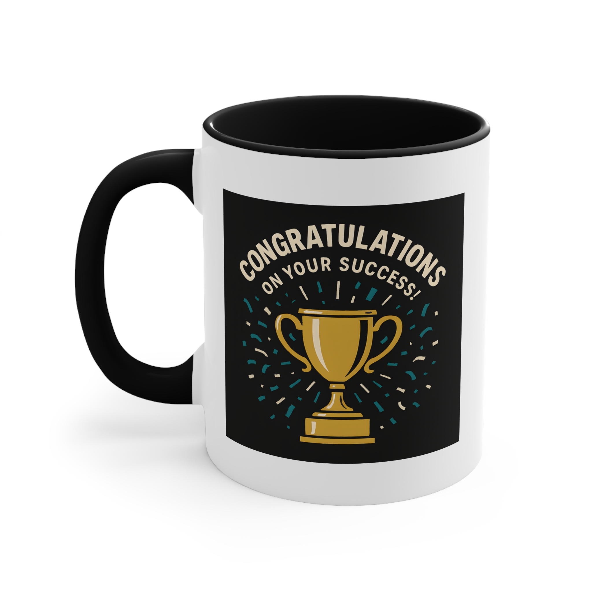 The congratulations mug is a timeless way to celebrate achievement and success. Featuring a golden trophy surrounded by confetti and the message “Congratulations on Your Success!”, this mug captures the spirit of celebration perfectly.