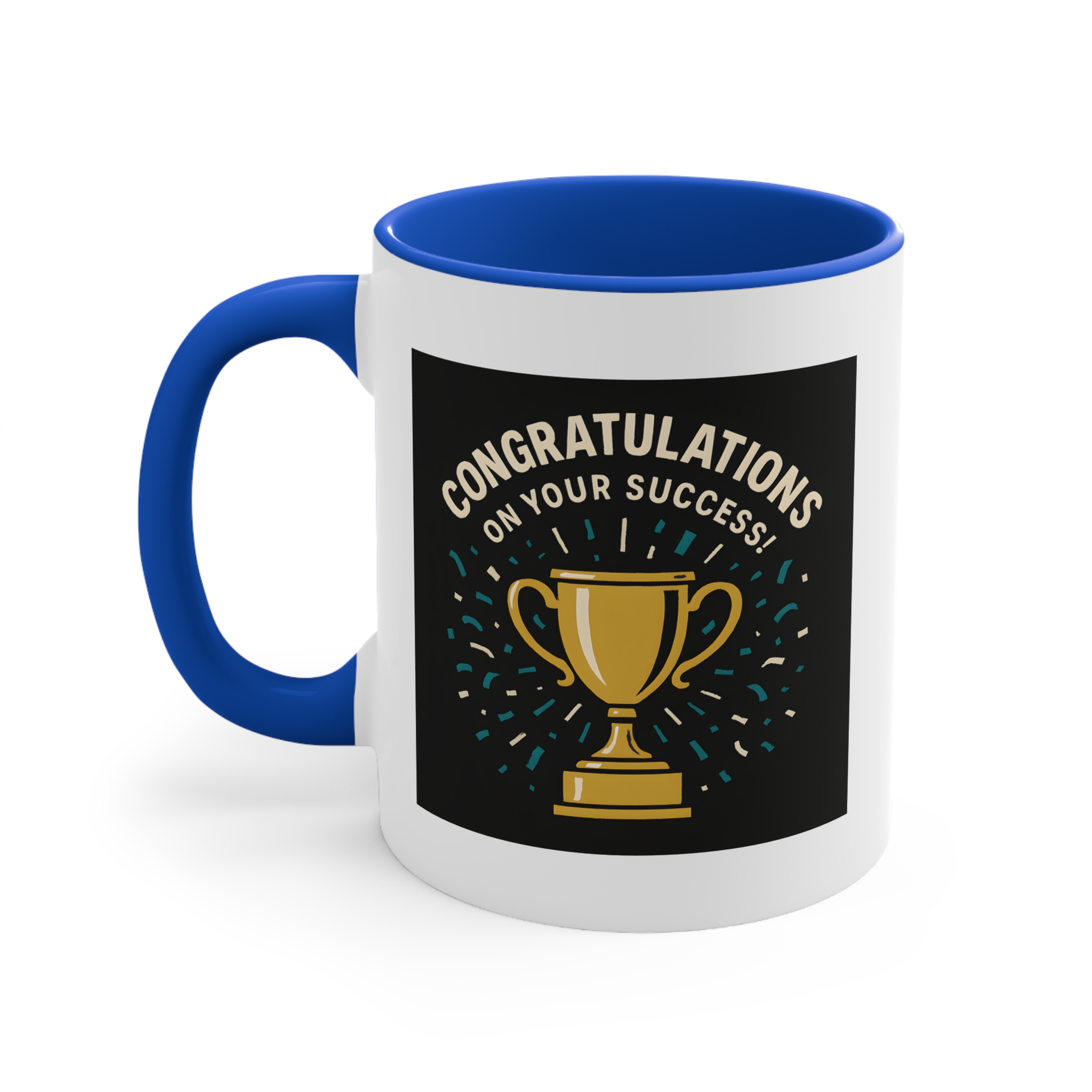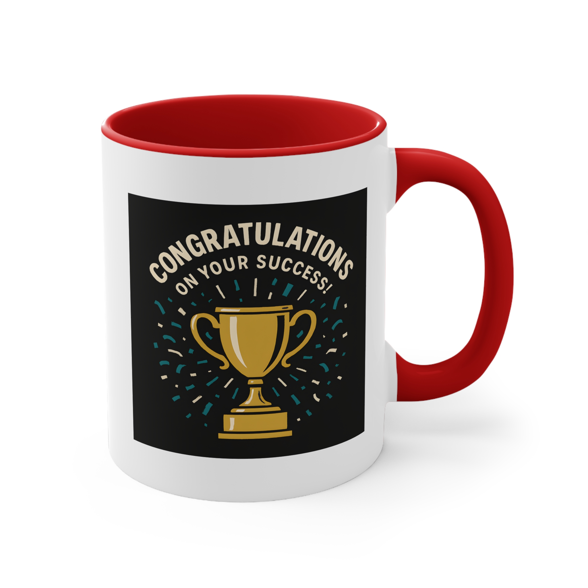 Congratulations mug – 11oz ceramic, microwave safe, hand wash recommended, available in 4 colors.
