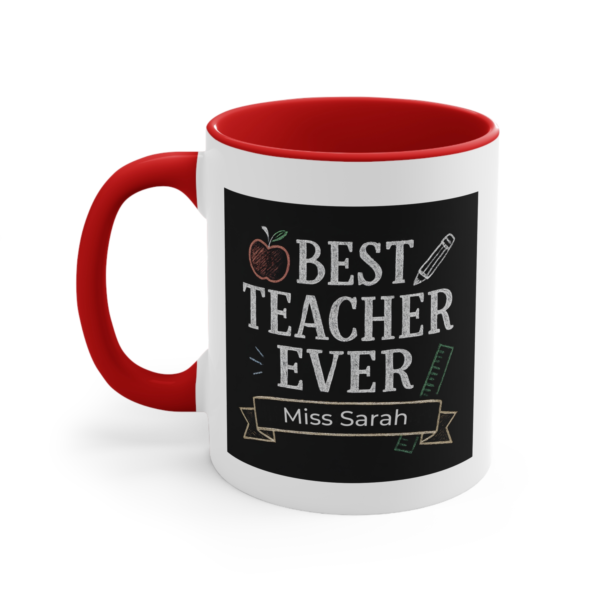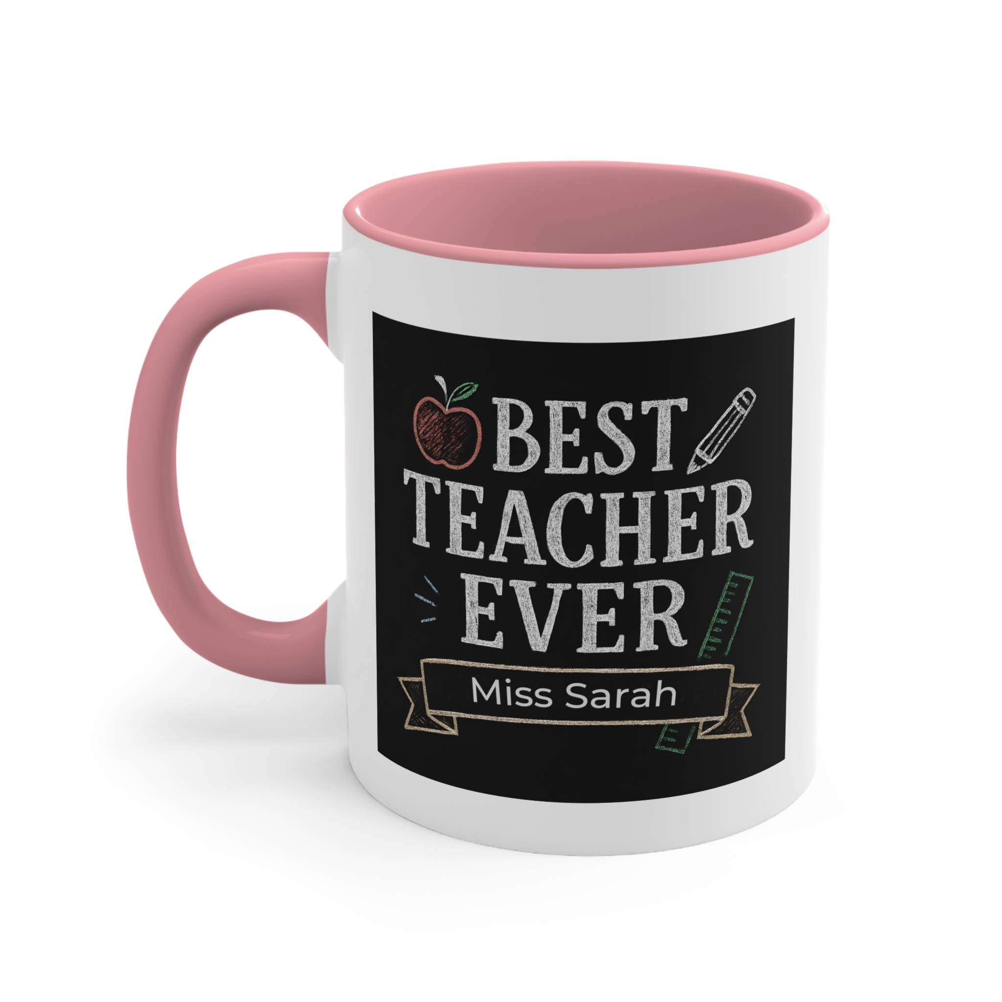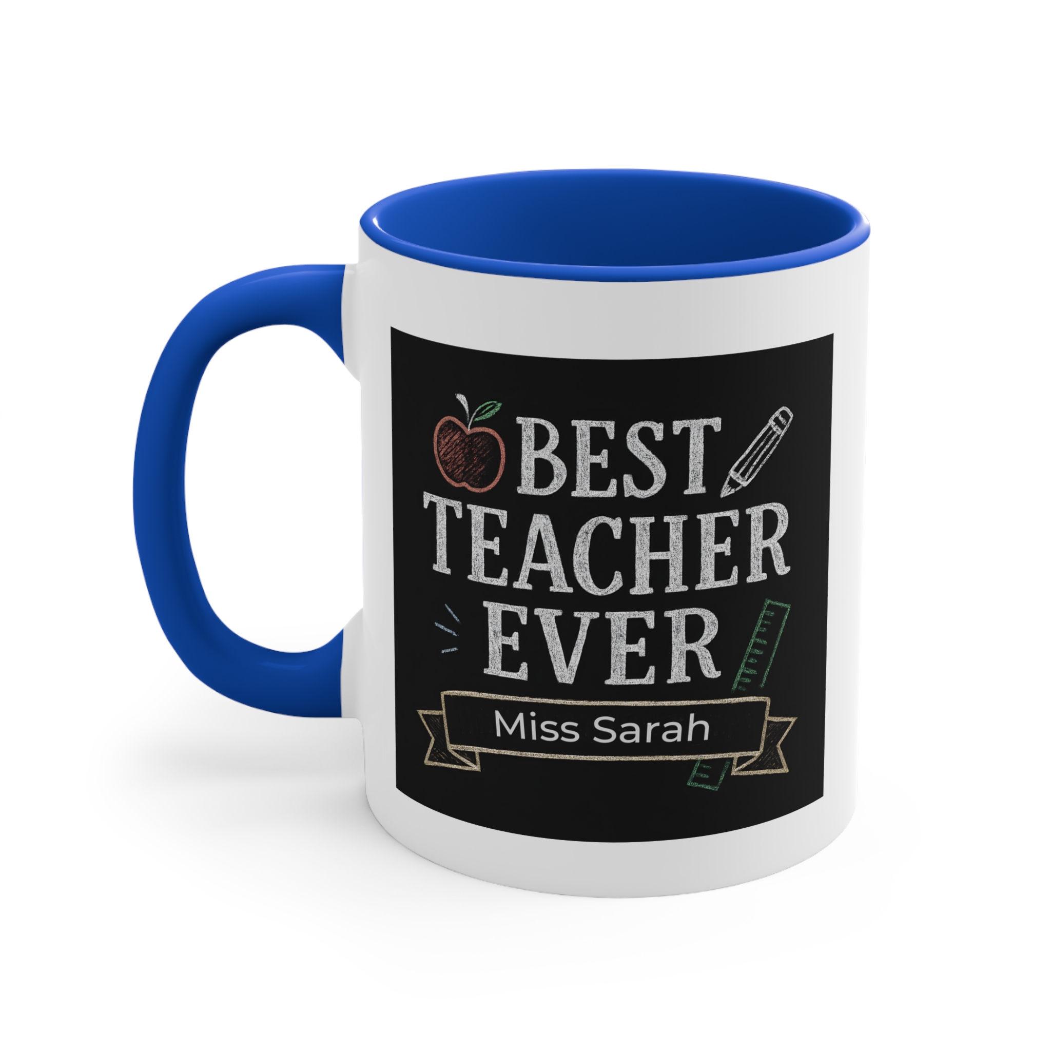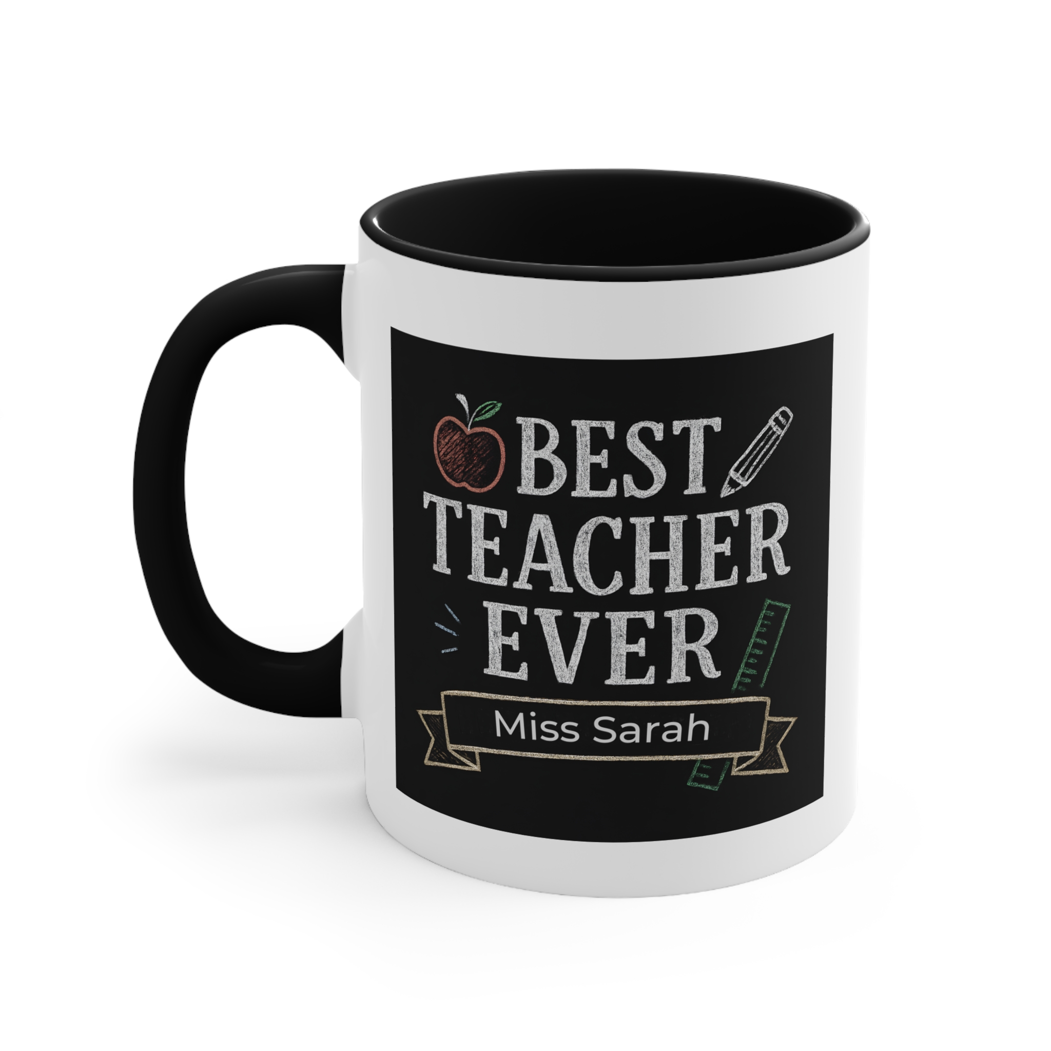 This custom best teacher mug Australia can be personalised with names such as Miss Sarah, Miss Chloe, Mr Thomas, Ms Jenny, making it a unique and thoughtful gift from students, parents, or school communities.