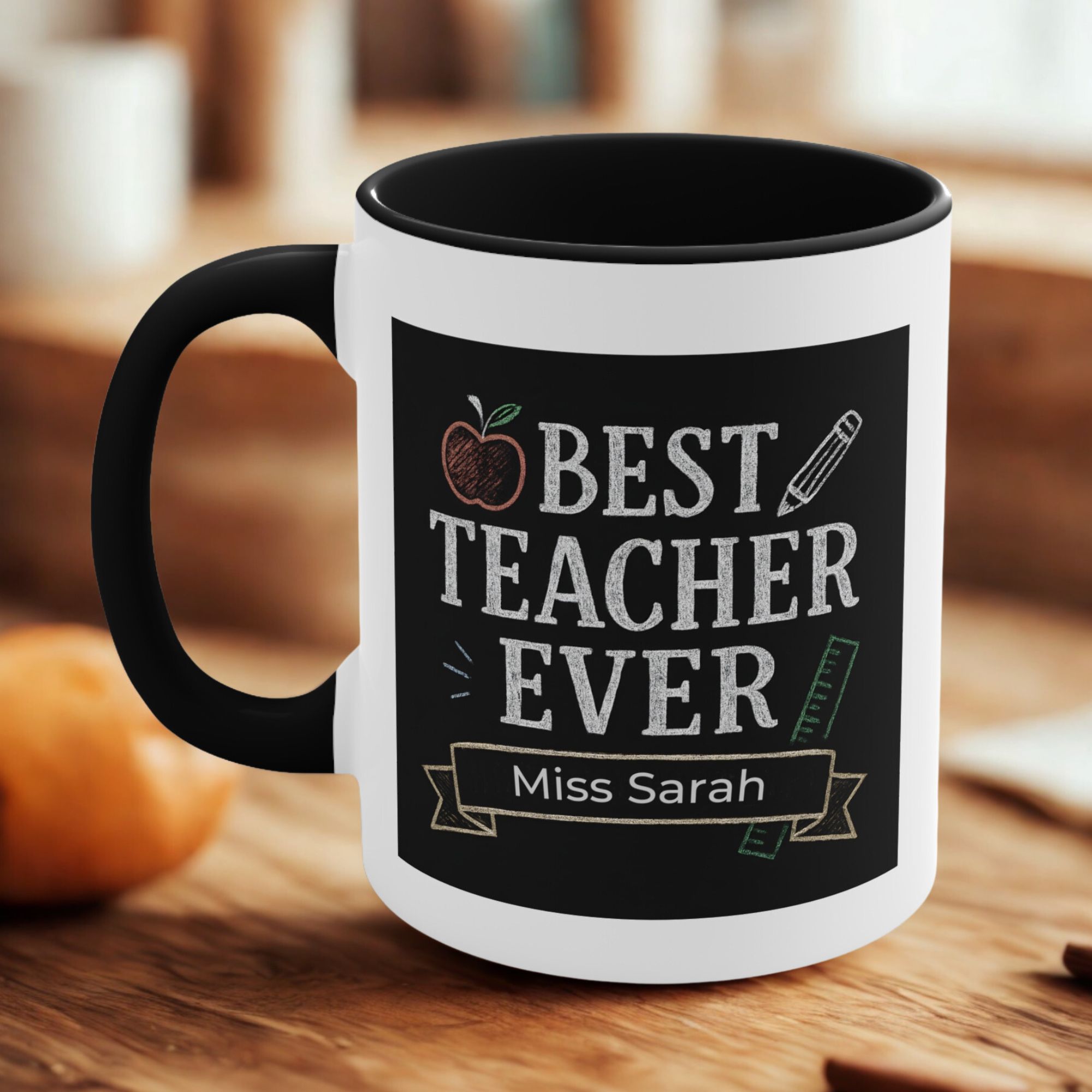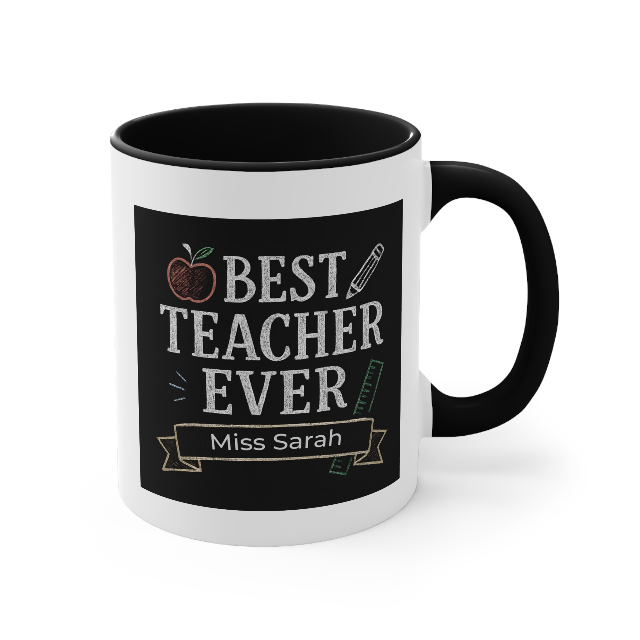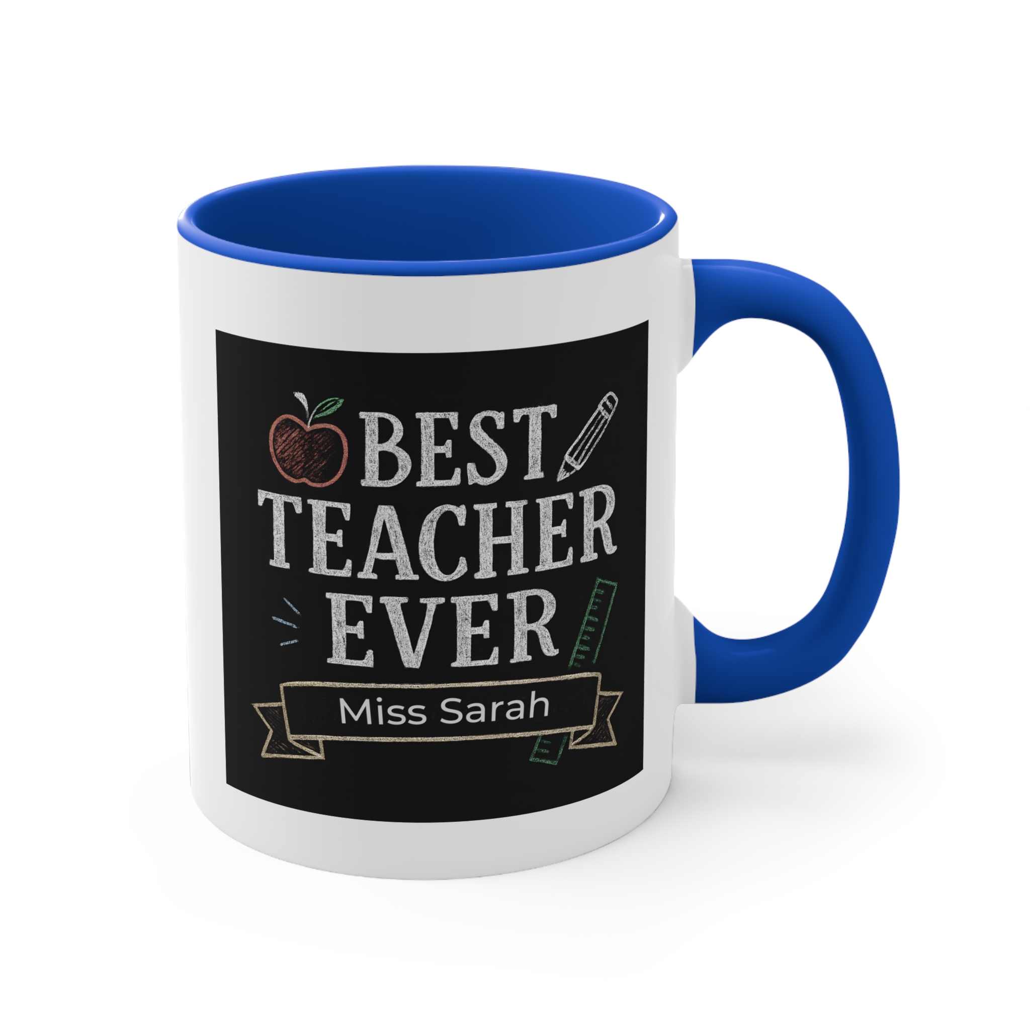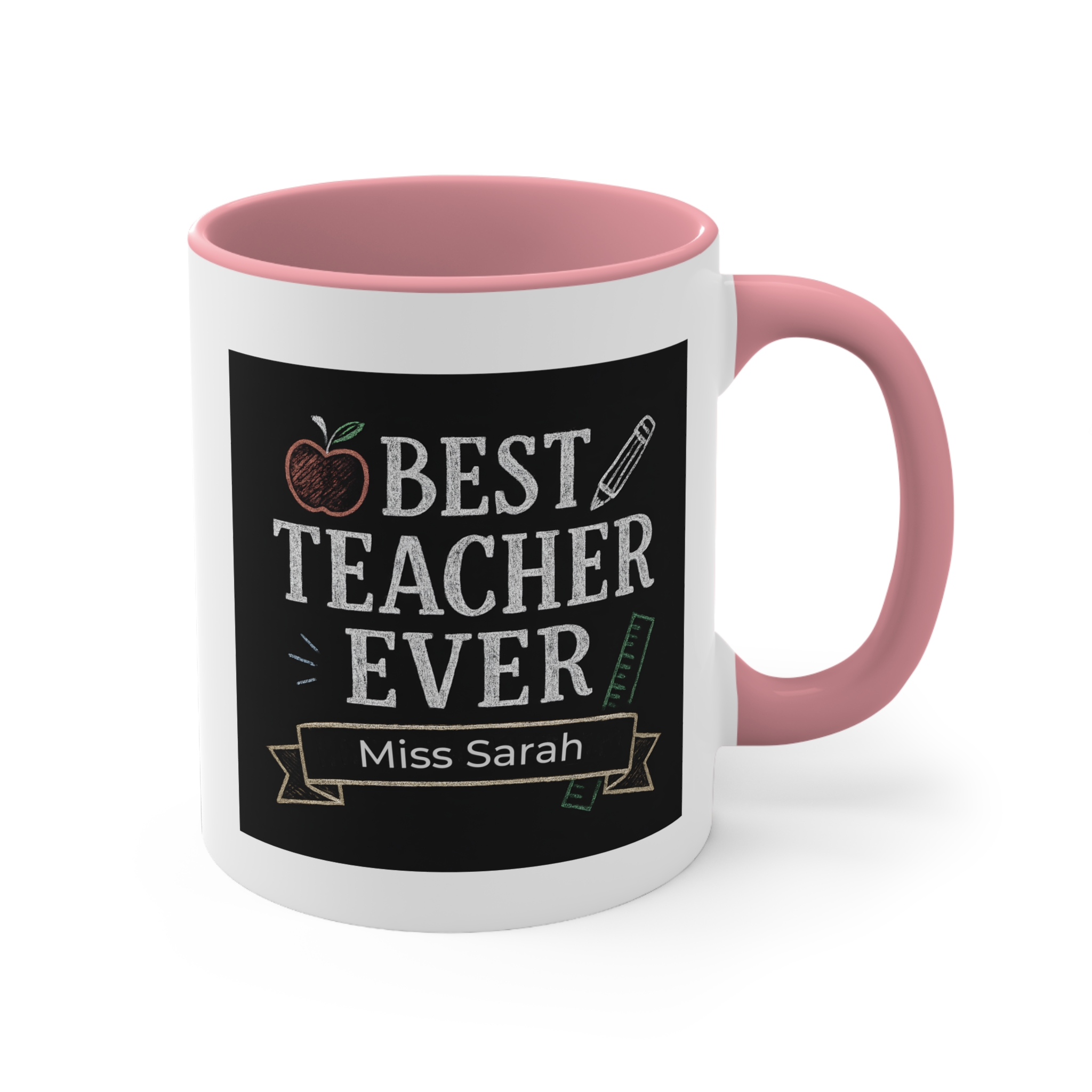 This custom best teacher mug Australia can be personalised with names such as Miss Sarah, Miss Chloe, Mr Thomas, Ms Jenny, making it a unique and thoughtful gift from students, parents, or school communities.
