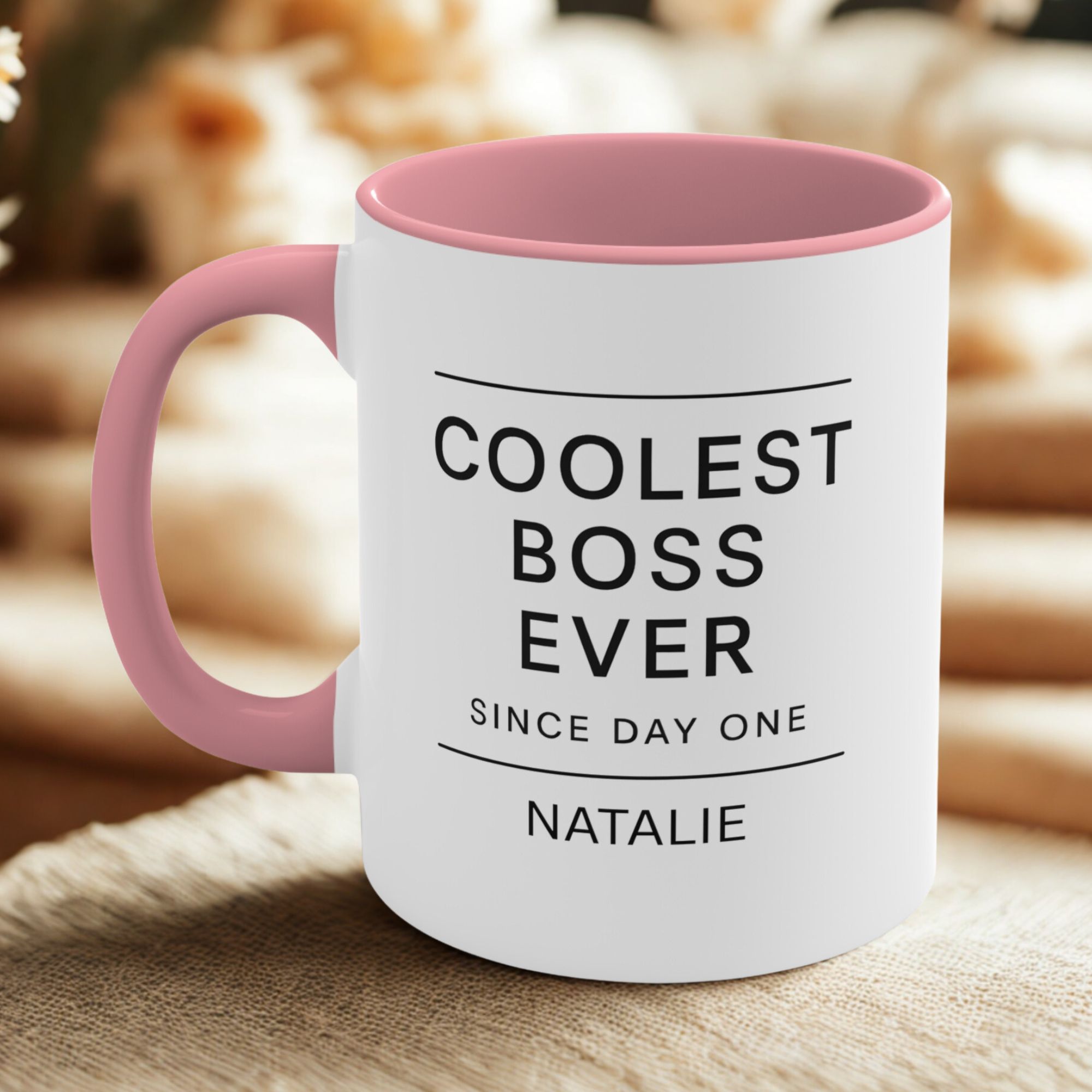 Whether it’s from the team or a personal thank-you, this custom coolest boss since day one mug delivers appreciation in a simple, stylish way.