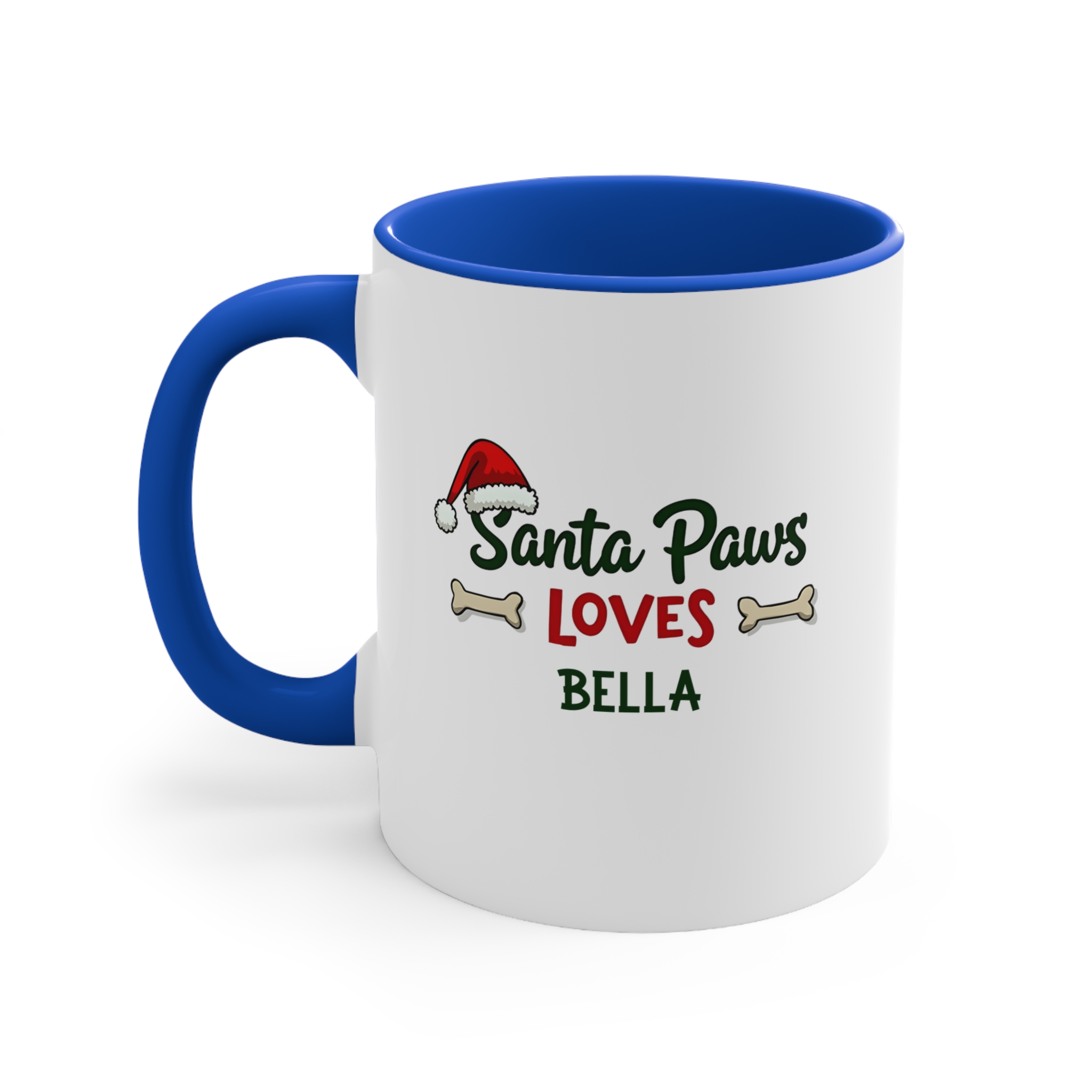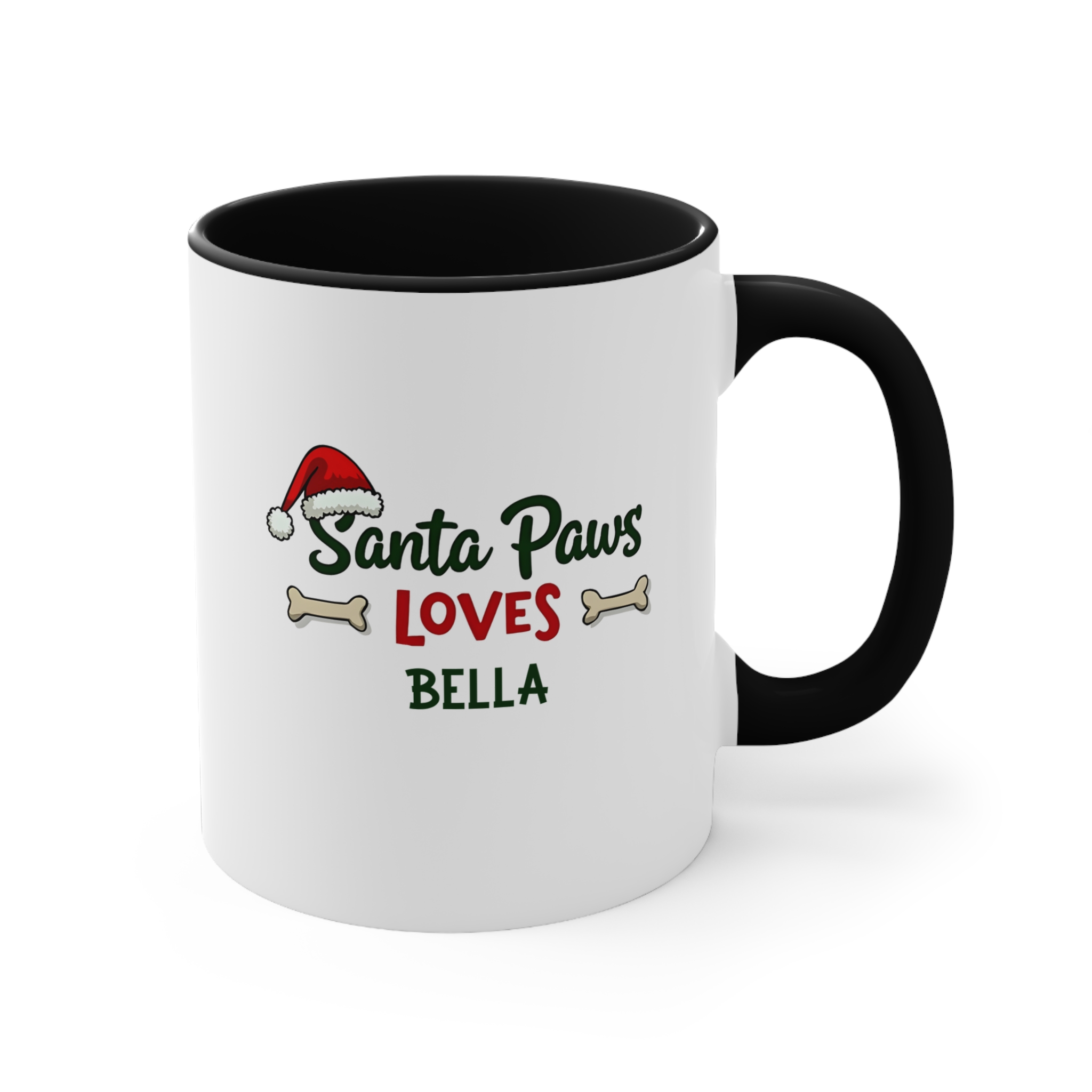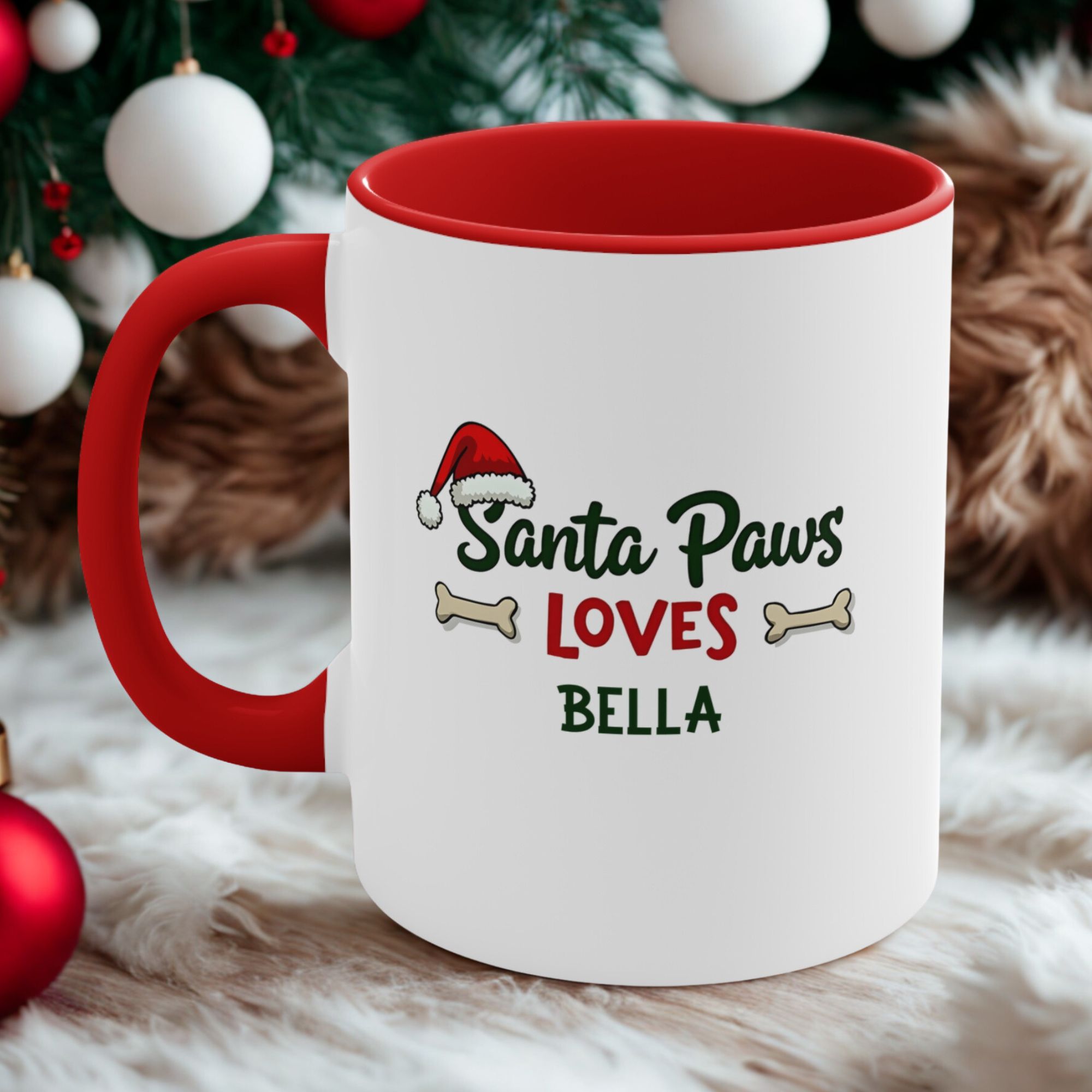 The custom dog Christmas mug Australia design is the paw-fect festive gift for dog lovers. With the playful phrase Santa Paws Loves [Name], a Santa hat, and dog bone accents, this mug adds holiday cheer and celebrates the special bond with your furry friend.