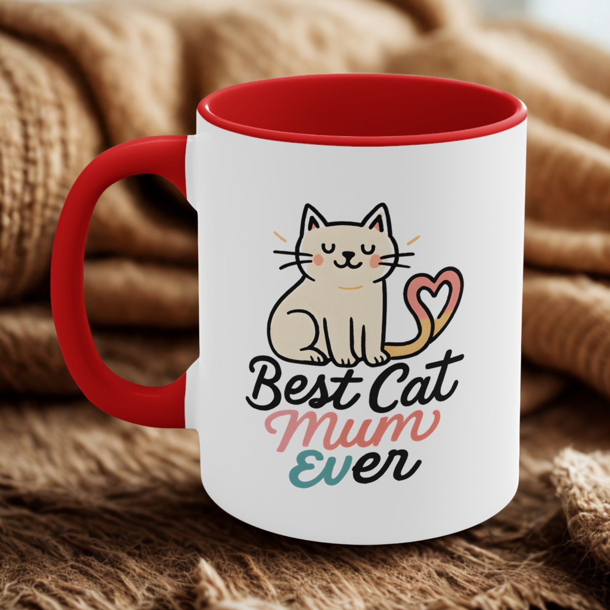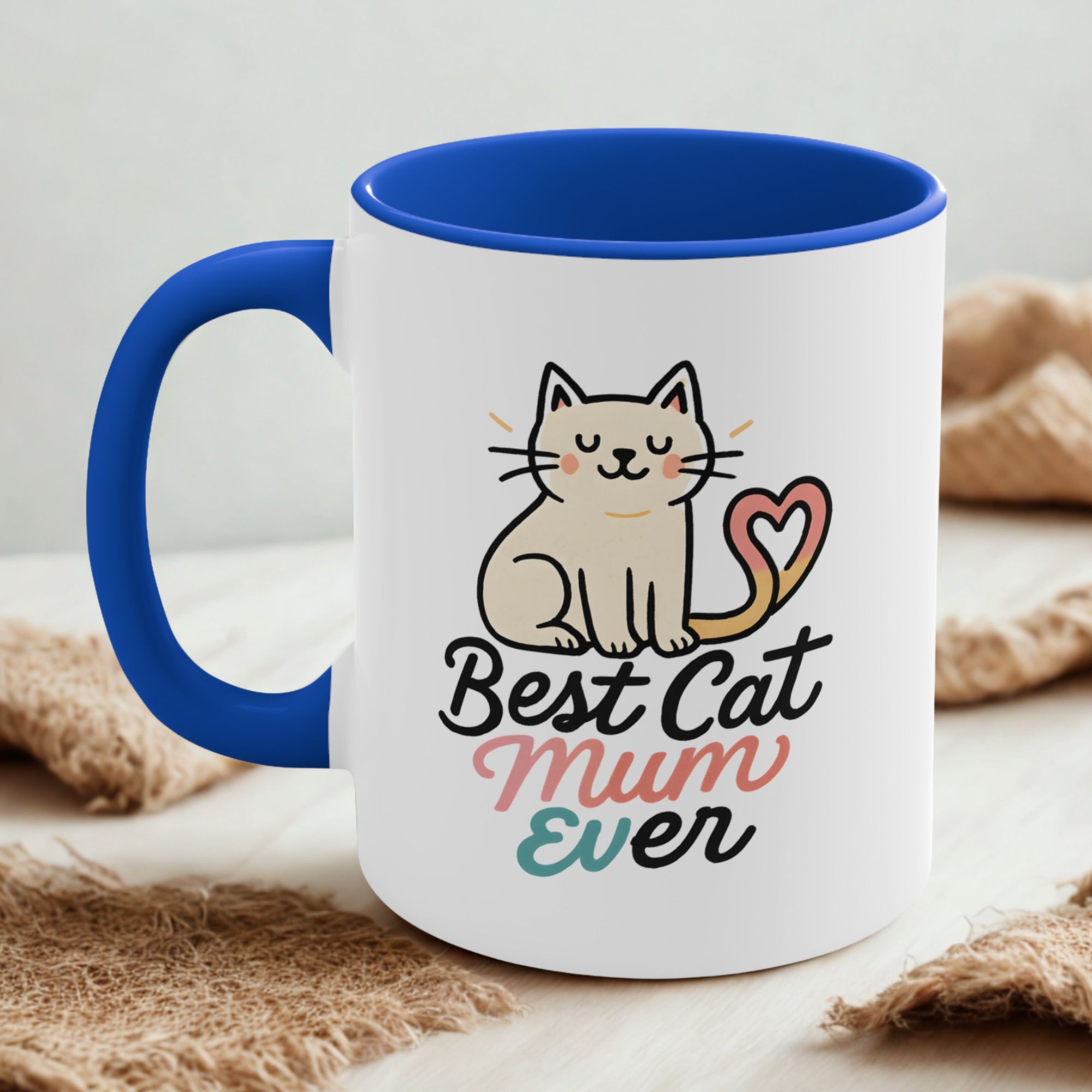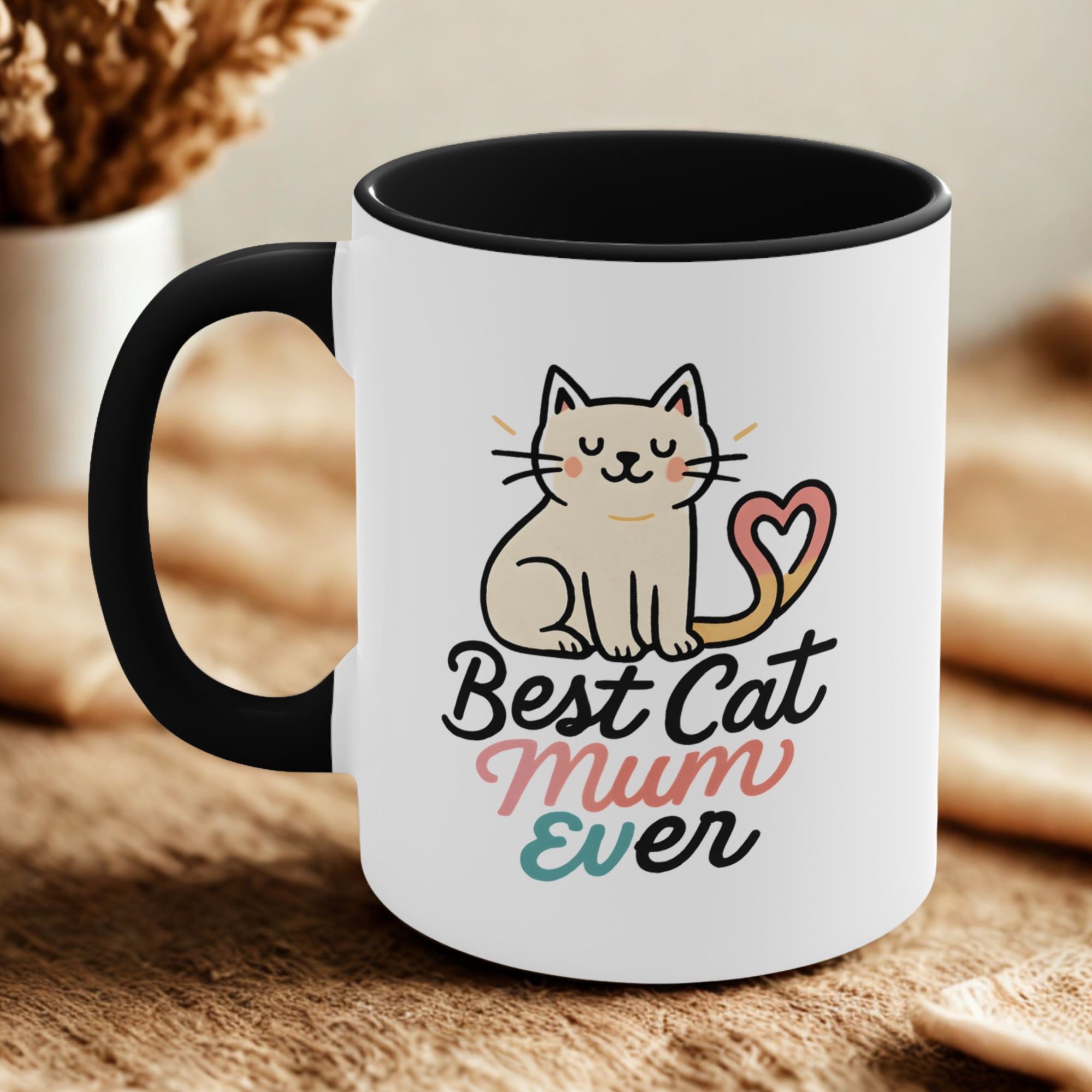 Featuring an adorable illustrated cat with a heart-shaped tail and “Best Cat Mum Ever” text, this mug is perfect for coffee, tea, and gifting.