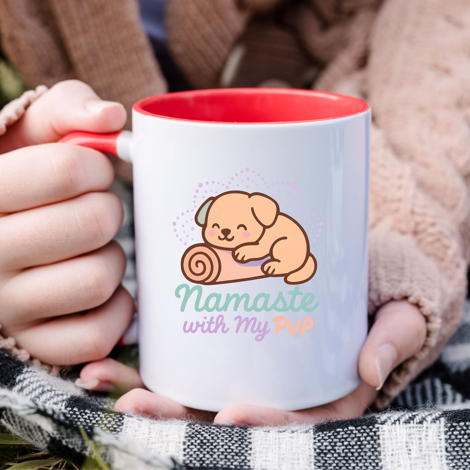 Add a little kawaii calm to your cup with this cute yoga dog mug, featuring an adorable smiling puppy snuggled up with their yoga mat. With soft pastel tones in mint, lilac, and peach, this playful design is the perfect blend of peace and personality.