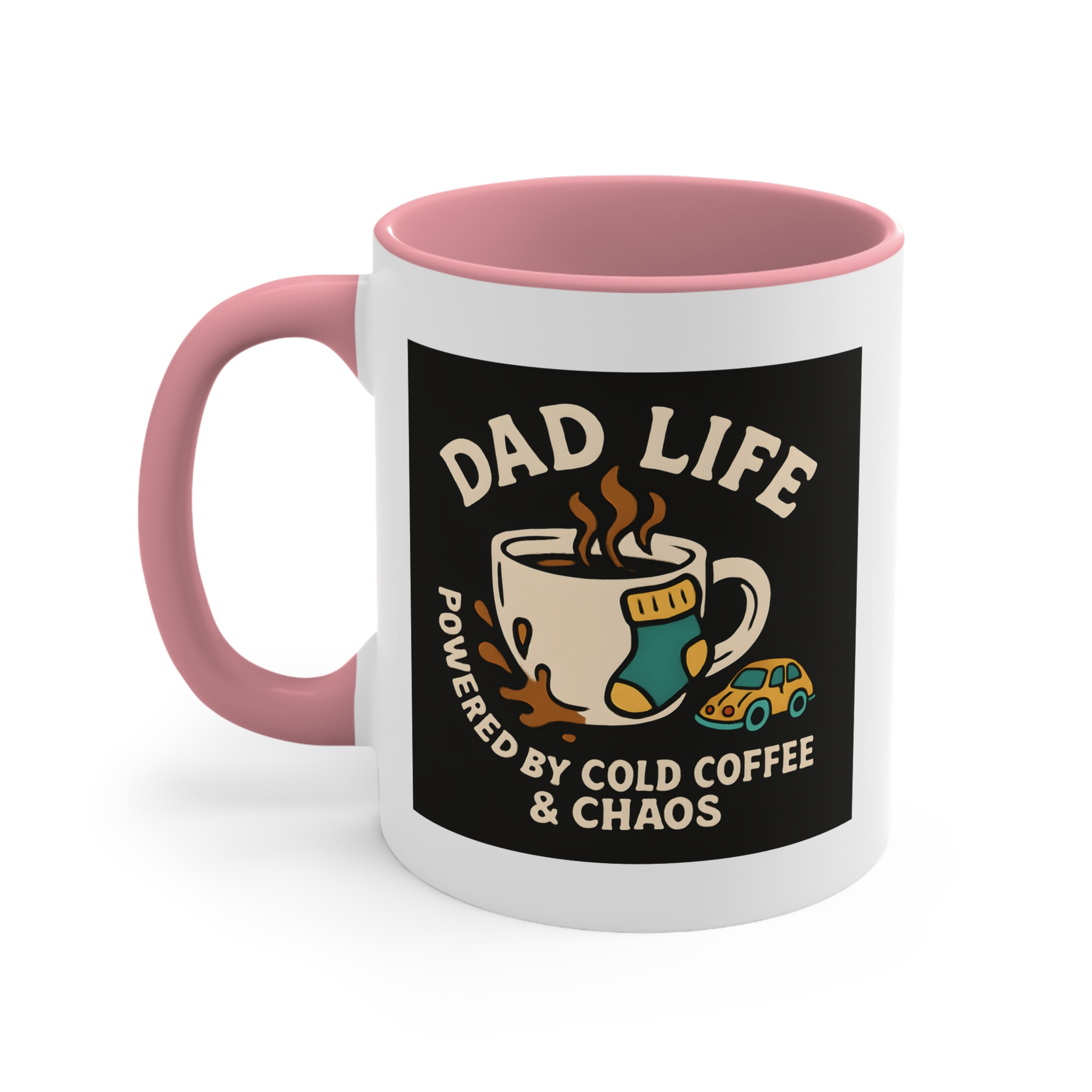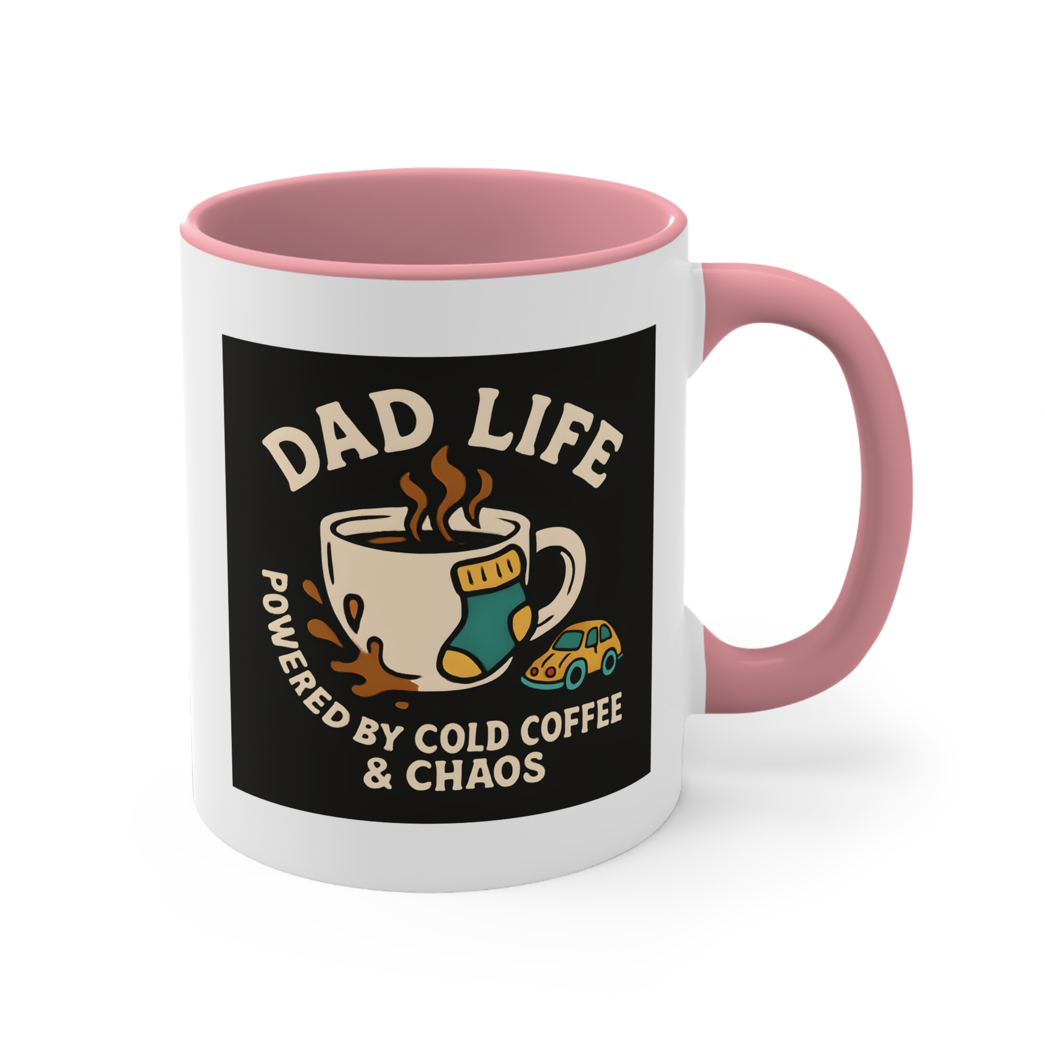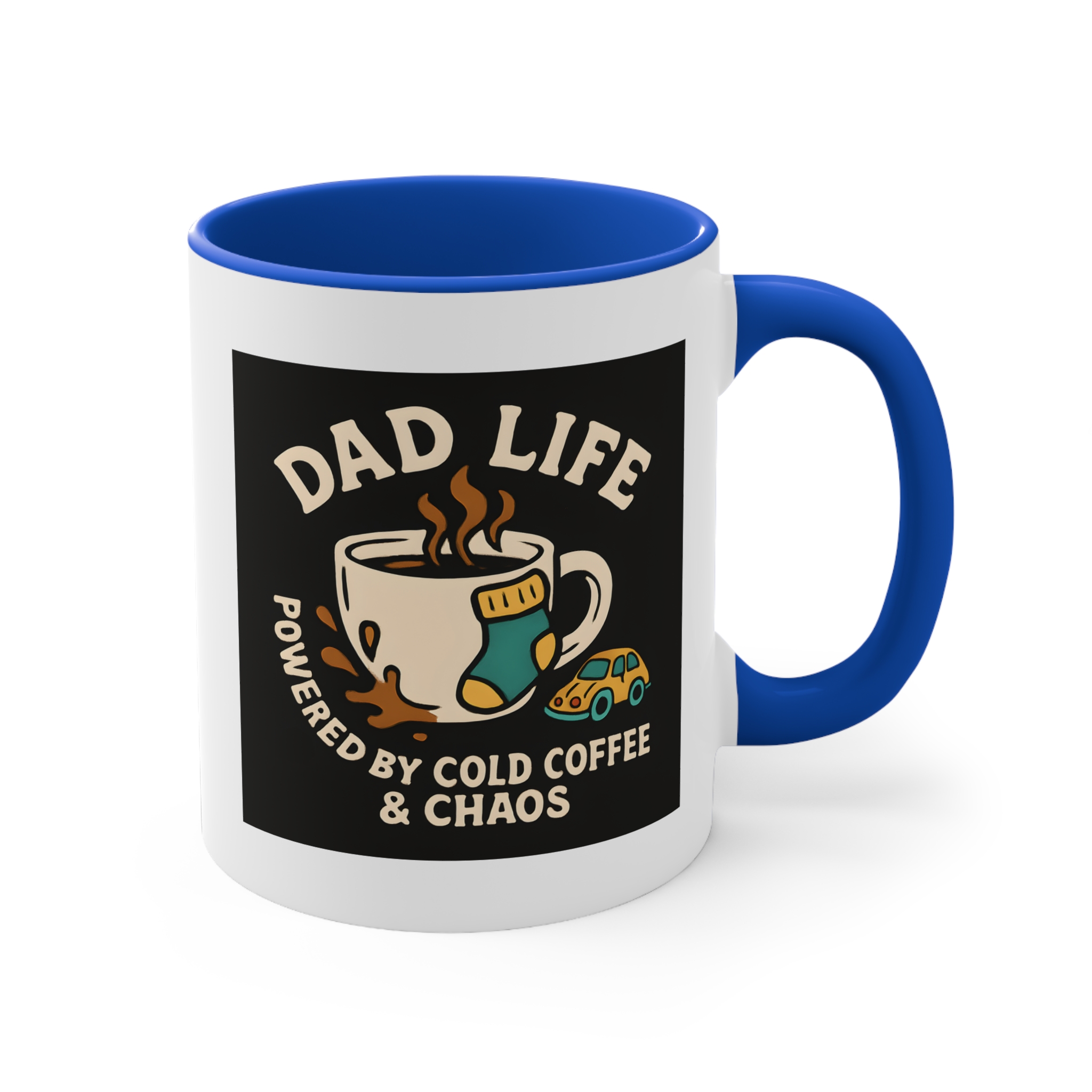 Welcome to the real MVP club — where cold coffee is a lifestyle and chaos is part of the charm. This hilarious Dad Life mug features a steaming cup of coffee surrounded by all-too-familiar dad debris: a lone sock, a tiny toy car, and a splash of coffee on the side. With bold retro-inspired art and the words “Powered by Cold Coffee & Chaos,” this mug is a badge of honour for every hands-on, sleep-deprived, toy-stepping father out there. Ideal for early mornings, late nights, and everything in between.