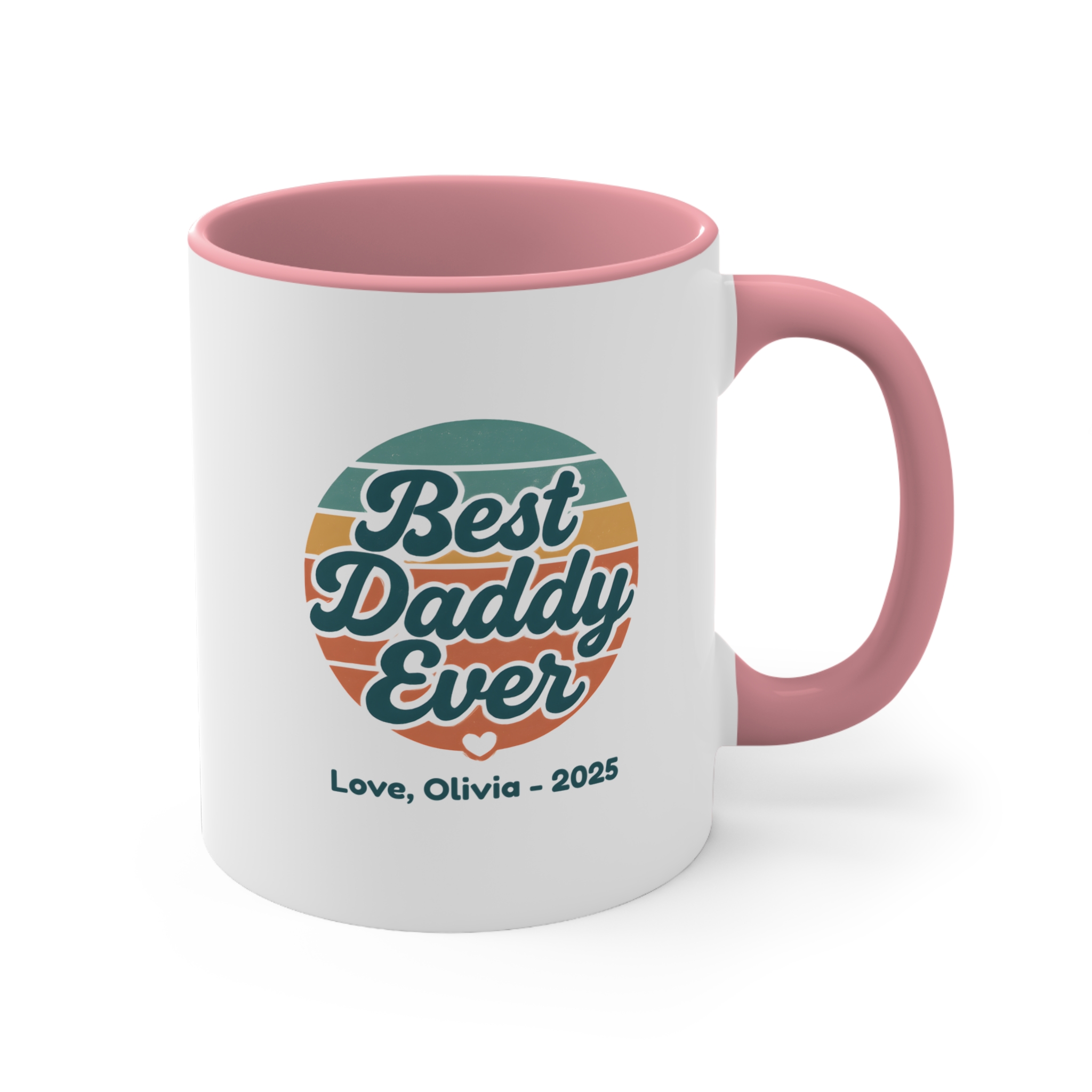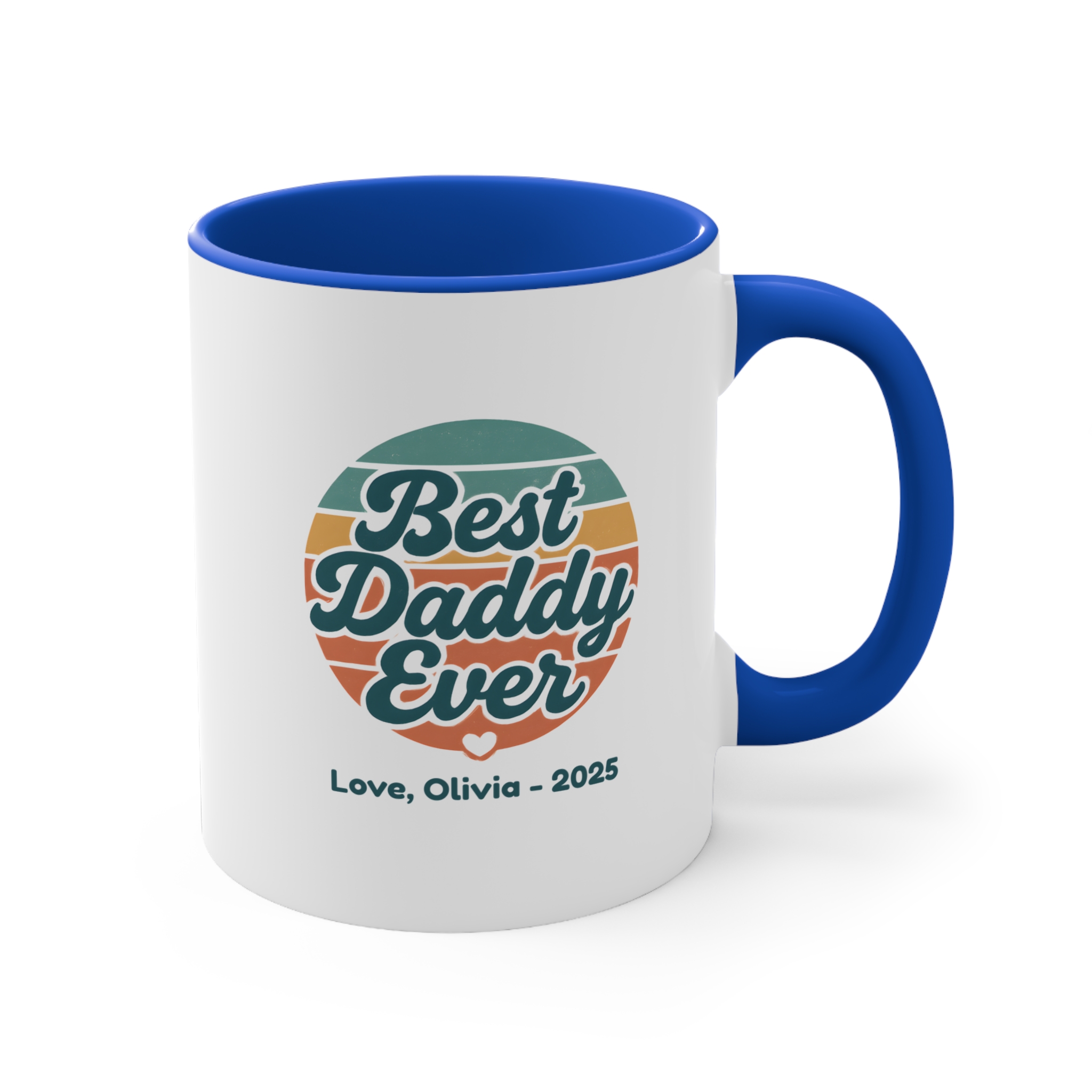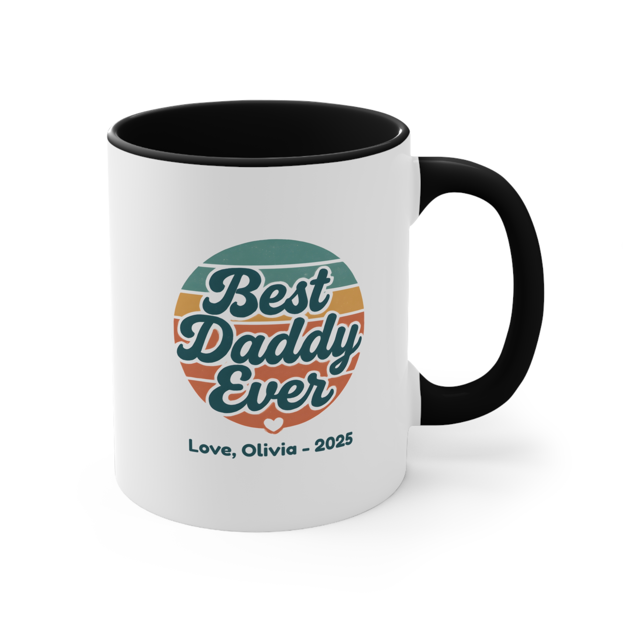 Surprise Dad with a heartwarming gift he’ll actually use — this custom daddy mug features a bold retro-style “Best Daddy Ever” design in vintage colors. Add your child’s name and year (e.g., “Love, Olivia – 2025”) to make it extra special. A perfect keepsake from little ones to show love on Father’s Day, birthdays, or just because.