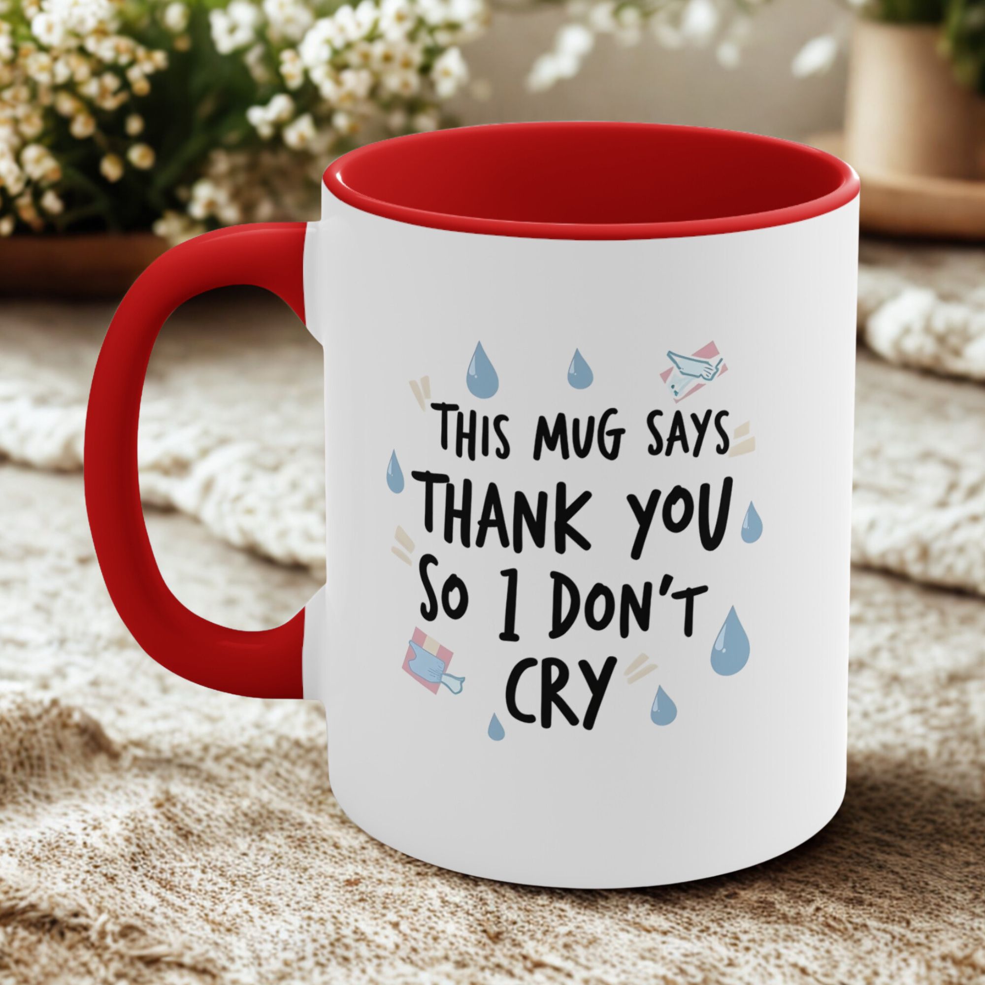 When words get stuck and emotions take over, let this funny emotional thank you mug do the talking. With a teardrop pattern, cute paper planes, and the heartfelt (yet hilarious) quote “This Mug Says Thank You So I Don’t Cry,” it’s the perfect blend of gratitude and feels.