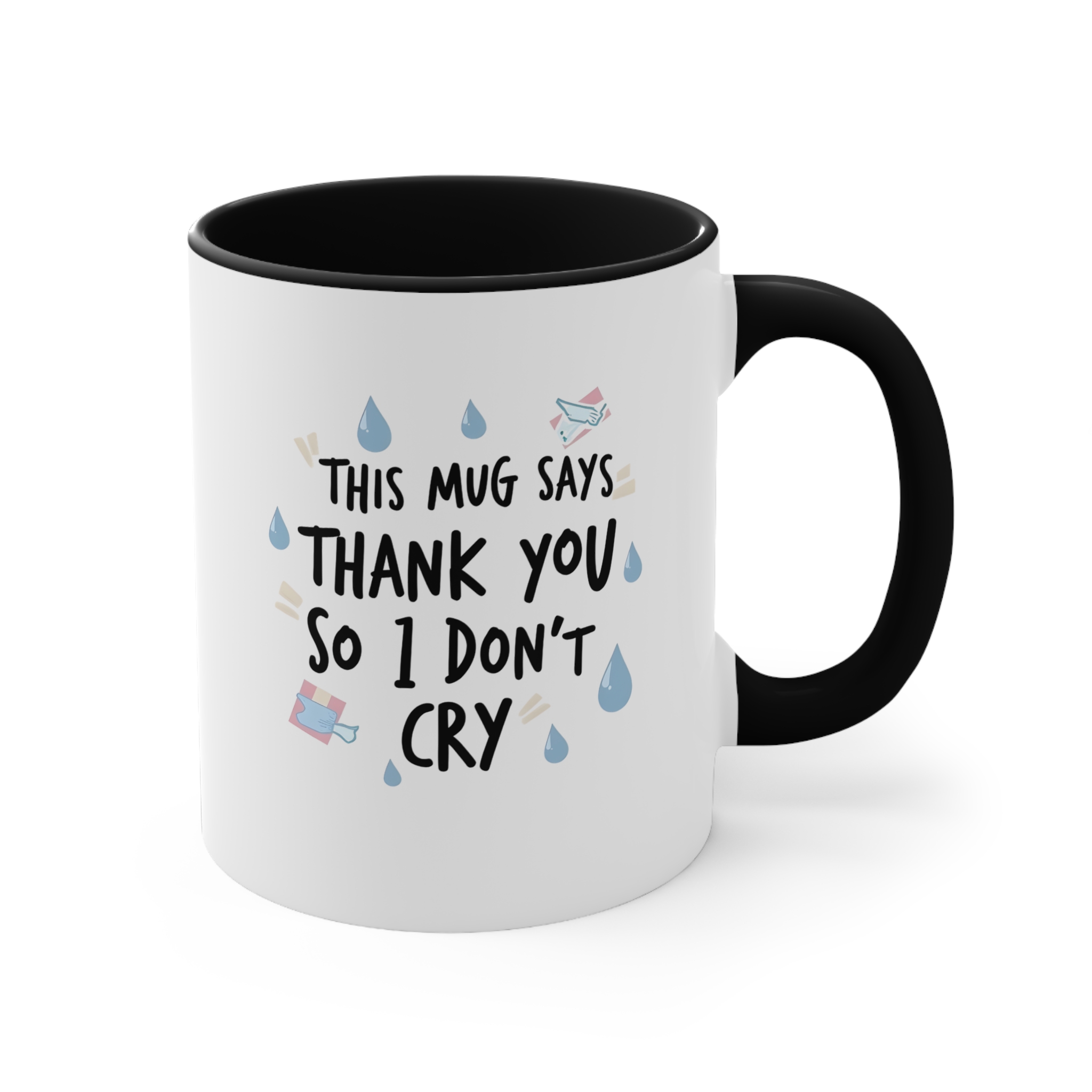 Funny emotional thank you mug with heartfelt message and blue accents. Ideal for farewells or anyone who makes you tear up with gratitude.