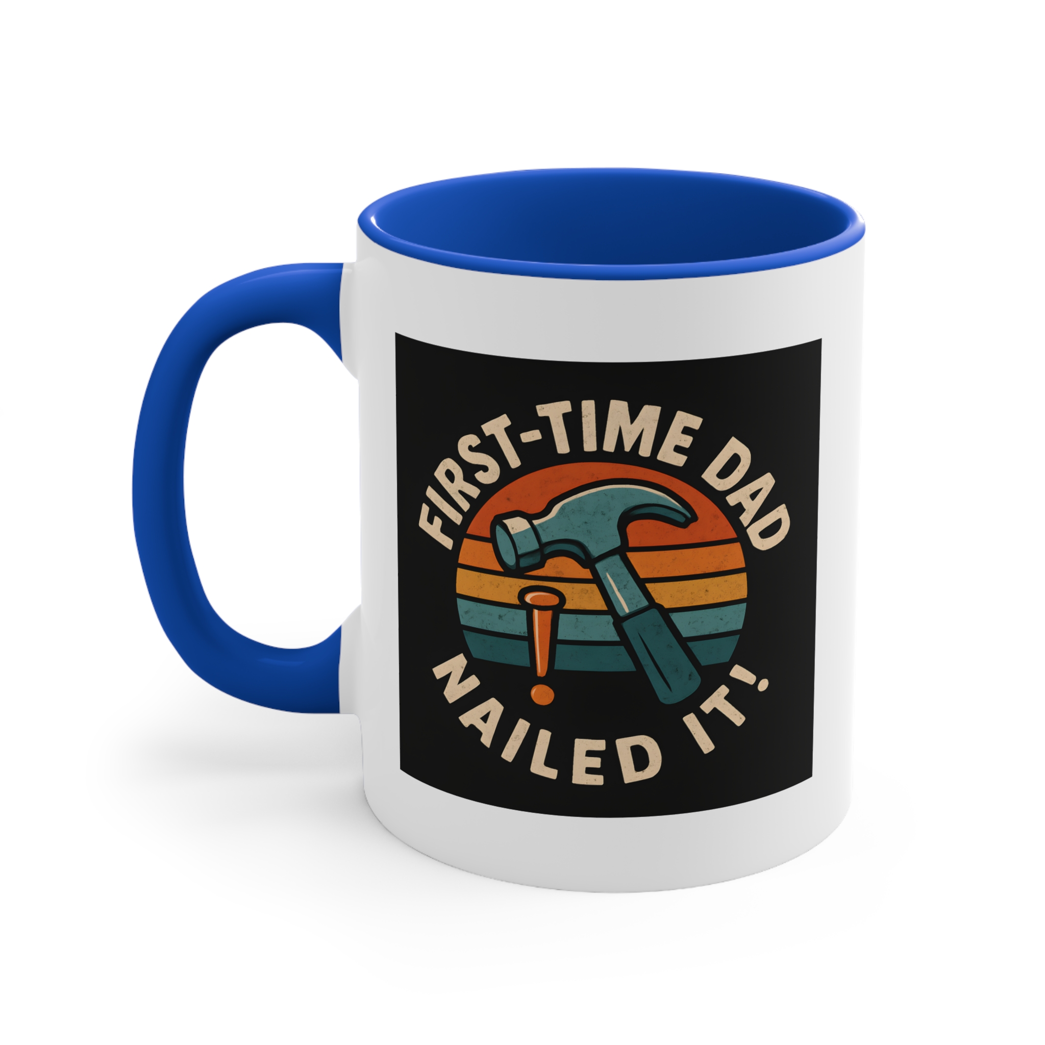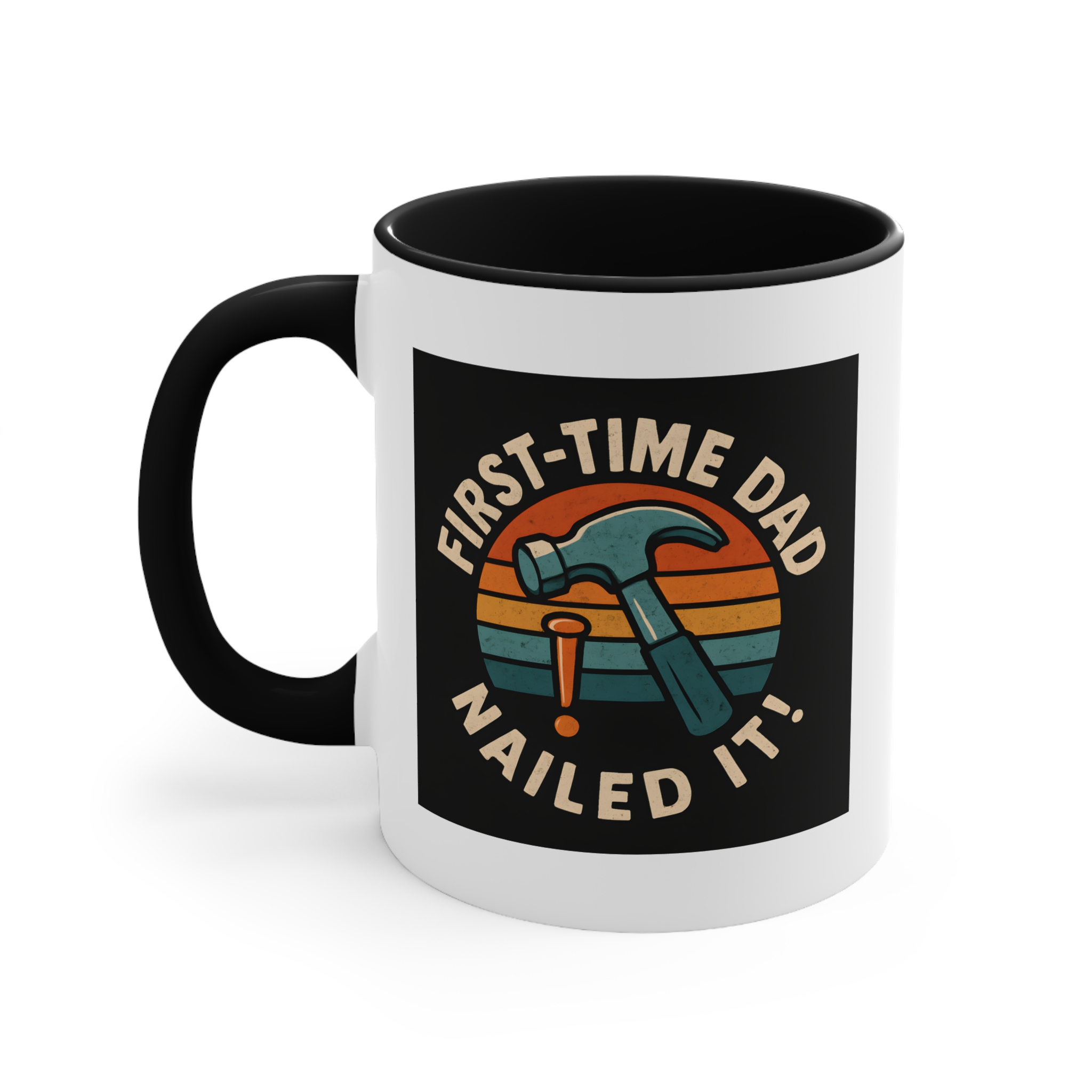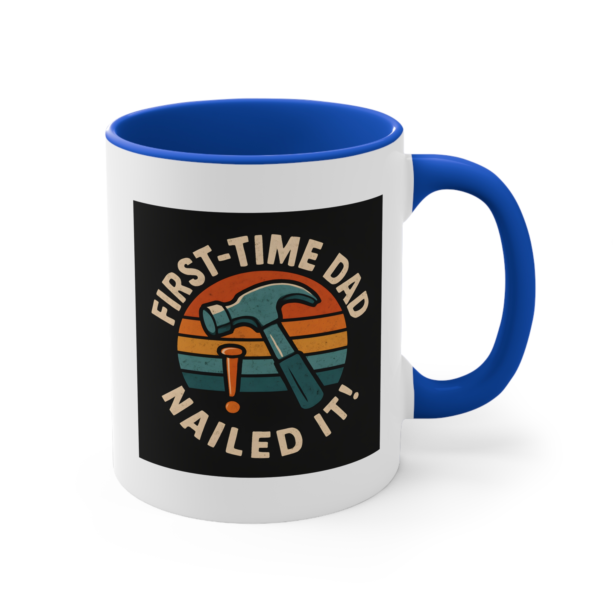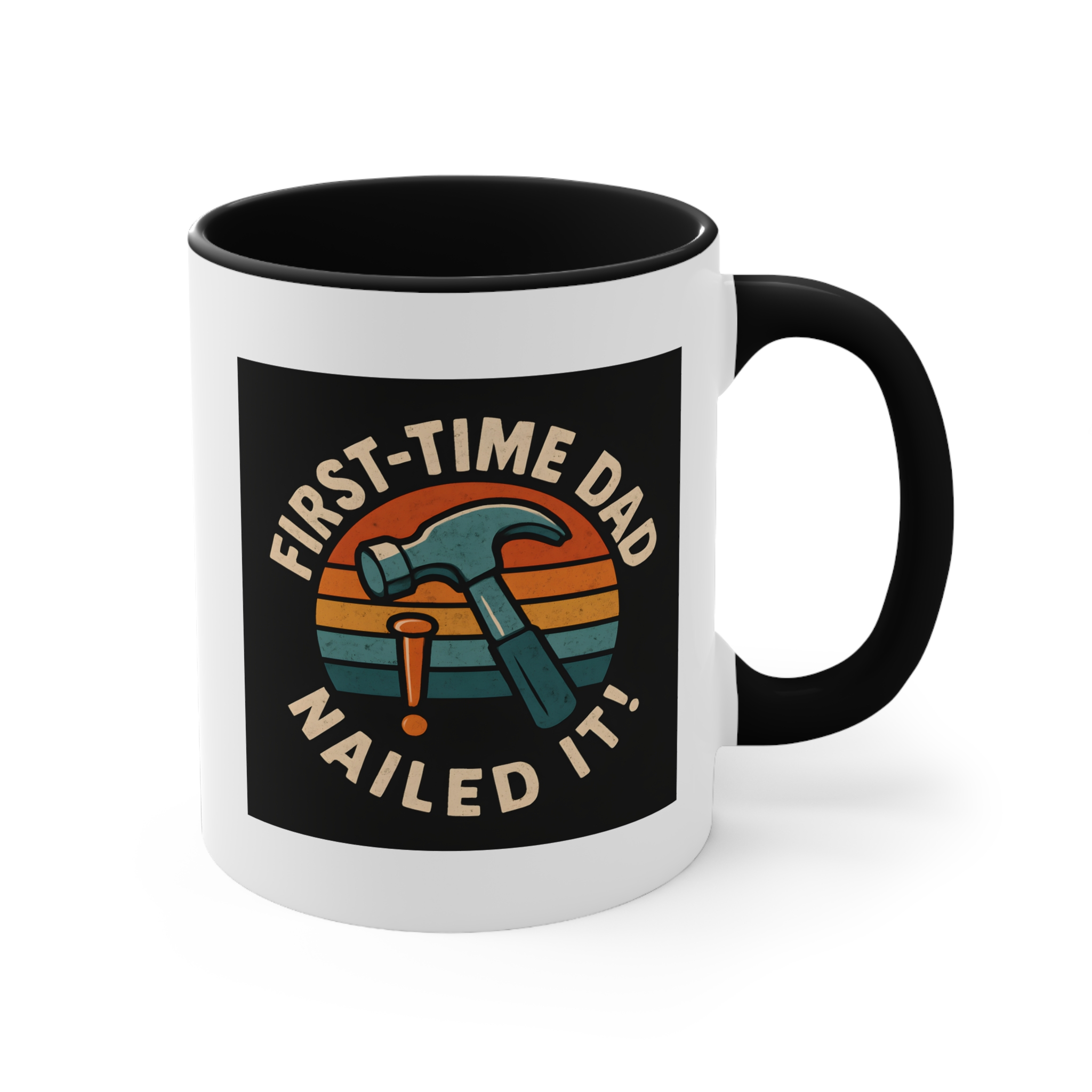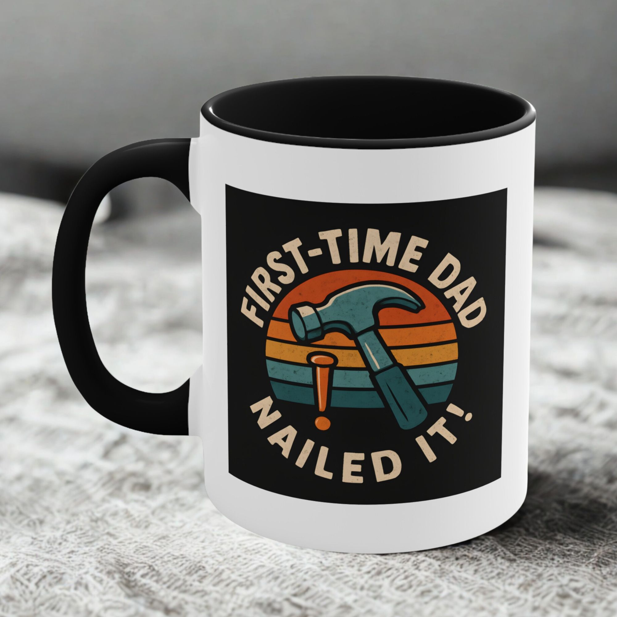 First time dad gift mug with retro “Nailed It!” design. A fun 11oz ceramic coffee cup for baby showers, Father’s Day, or celebrating new dads.