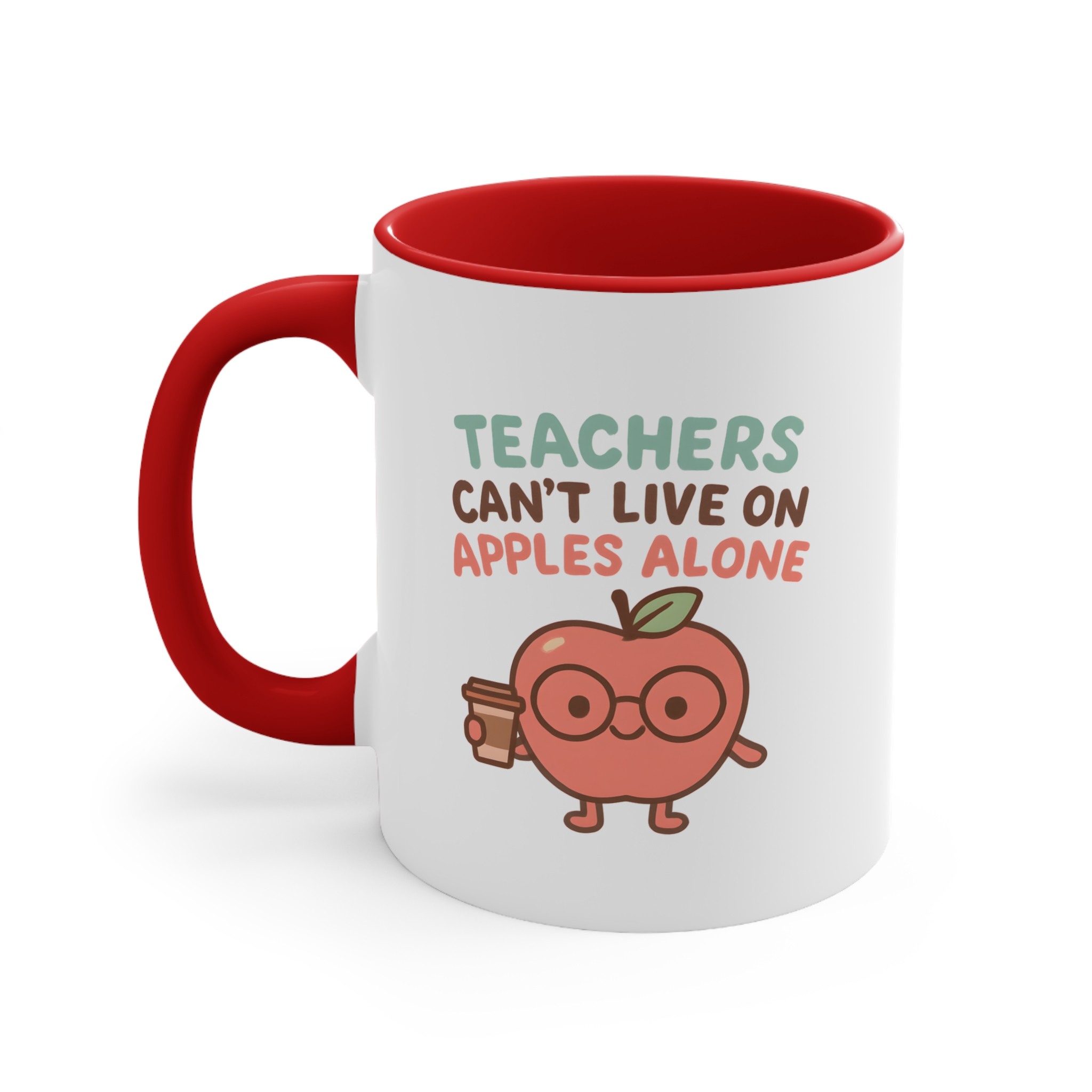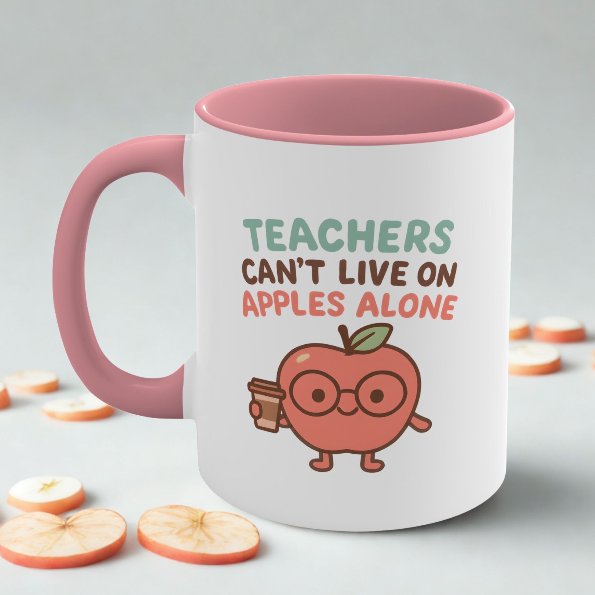This funny apple teacher mug adds a cute twist to a classic classroom joke, reminding everyone that teachers need more than just apples to get through the day. Featuring an adorable apple character holding a coffee cup, it’s perfect for classroom desks, staff rooms, or home coffee breaks.