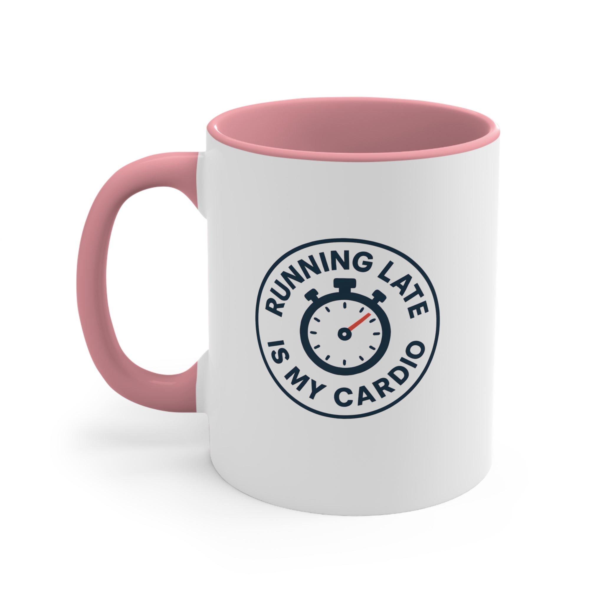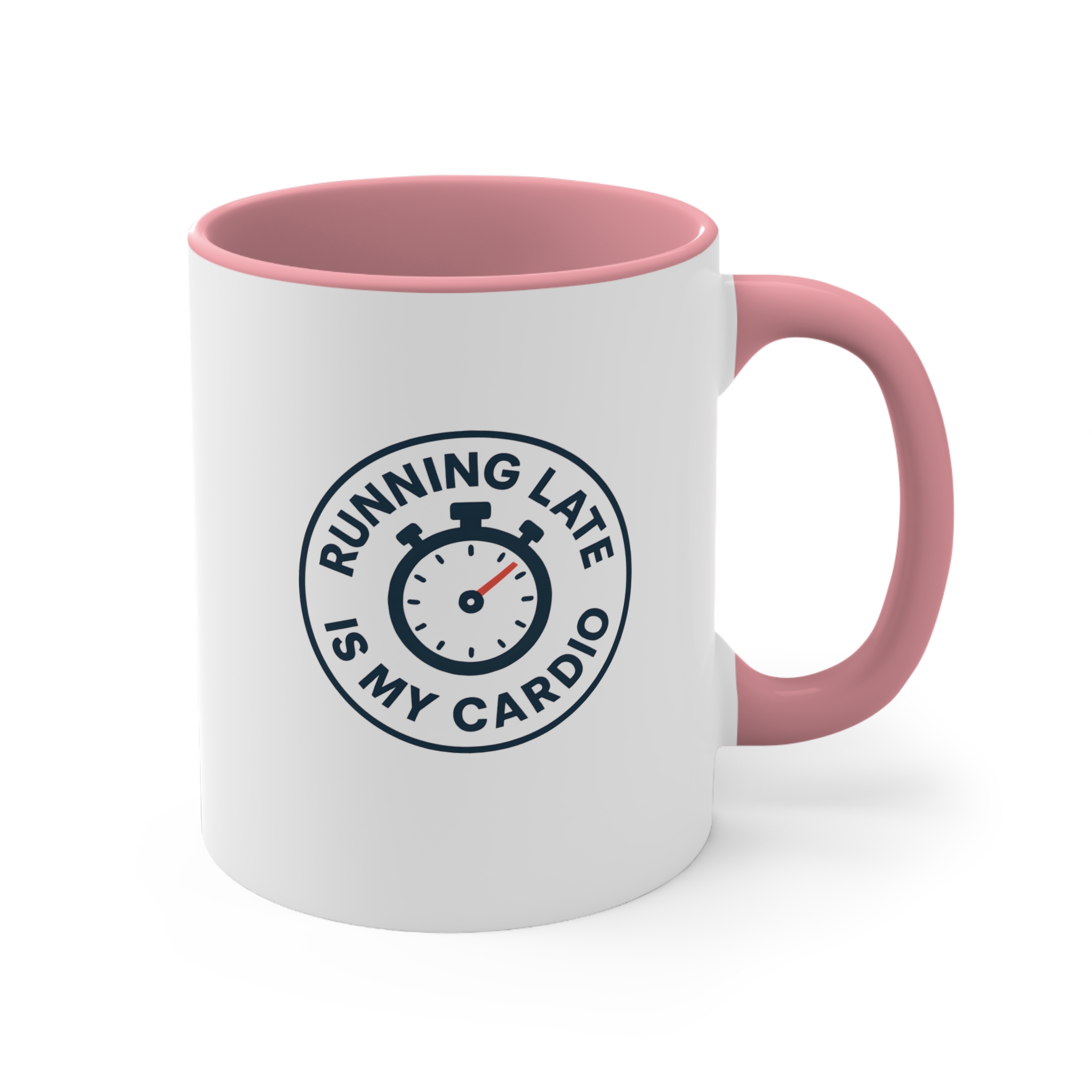 Tired of actual cardio? Let your funny cardio mug do the talking. With a bold stopwatch icon and clean circular design, this mug delivers laughs and caffeine at the same time. “Running Late Is My Cardio” wraps around the clock just like your mornings wrap around chaos.