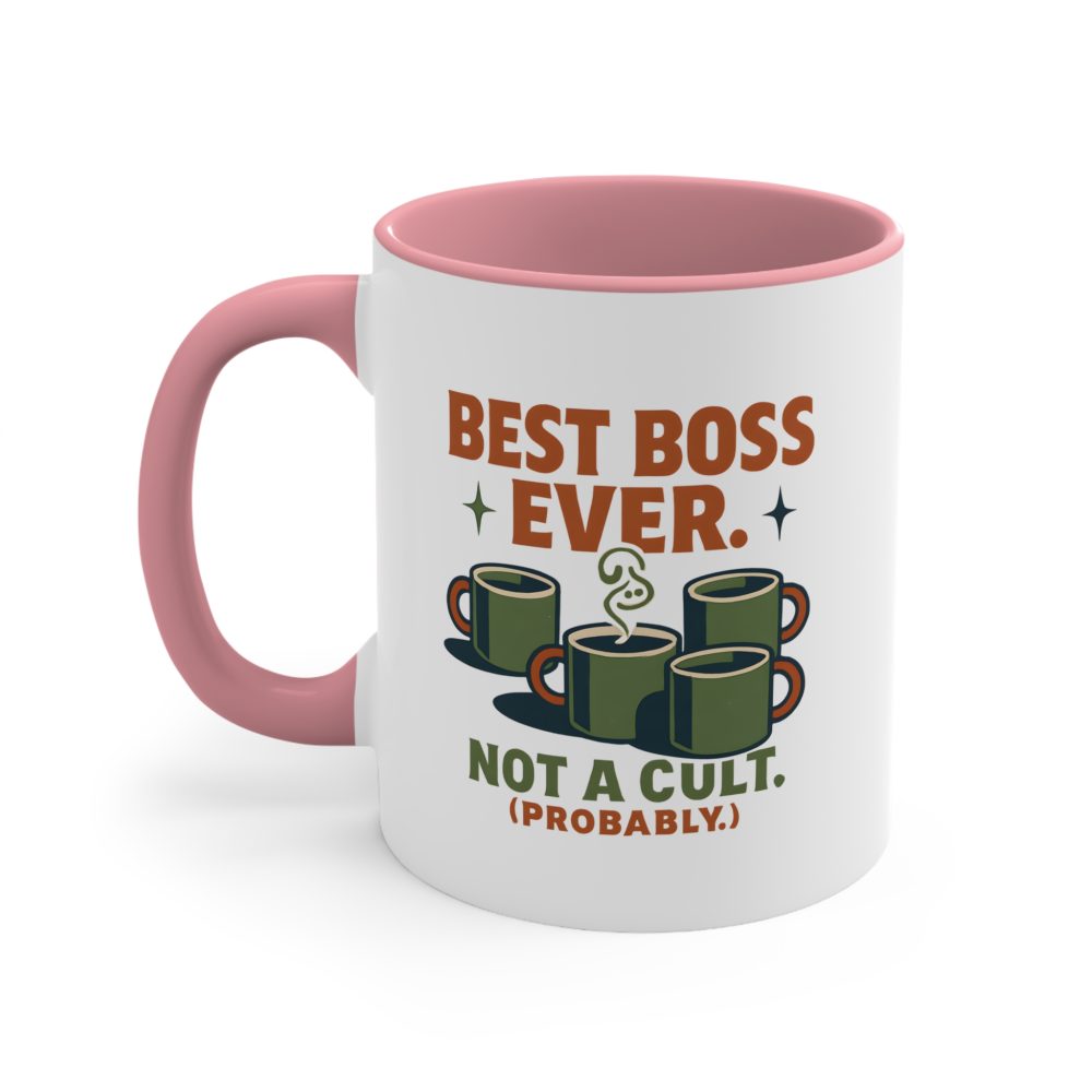 funny coffee mug for boss, best boss ever mug, not a cult mug, retro office mug, hilarious boss mug, team appreciation mug, office humor gift, sarcastic workplace mug, pink handle coffee mug, boss’s day gift