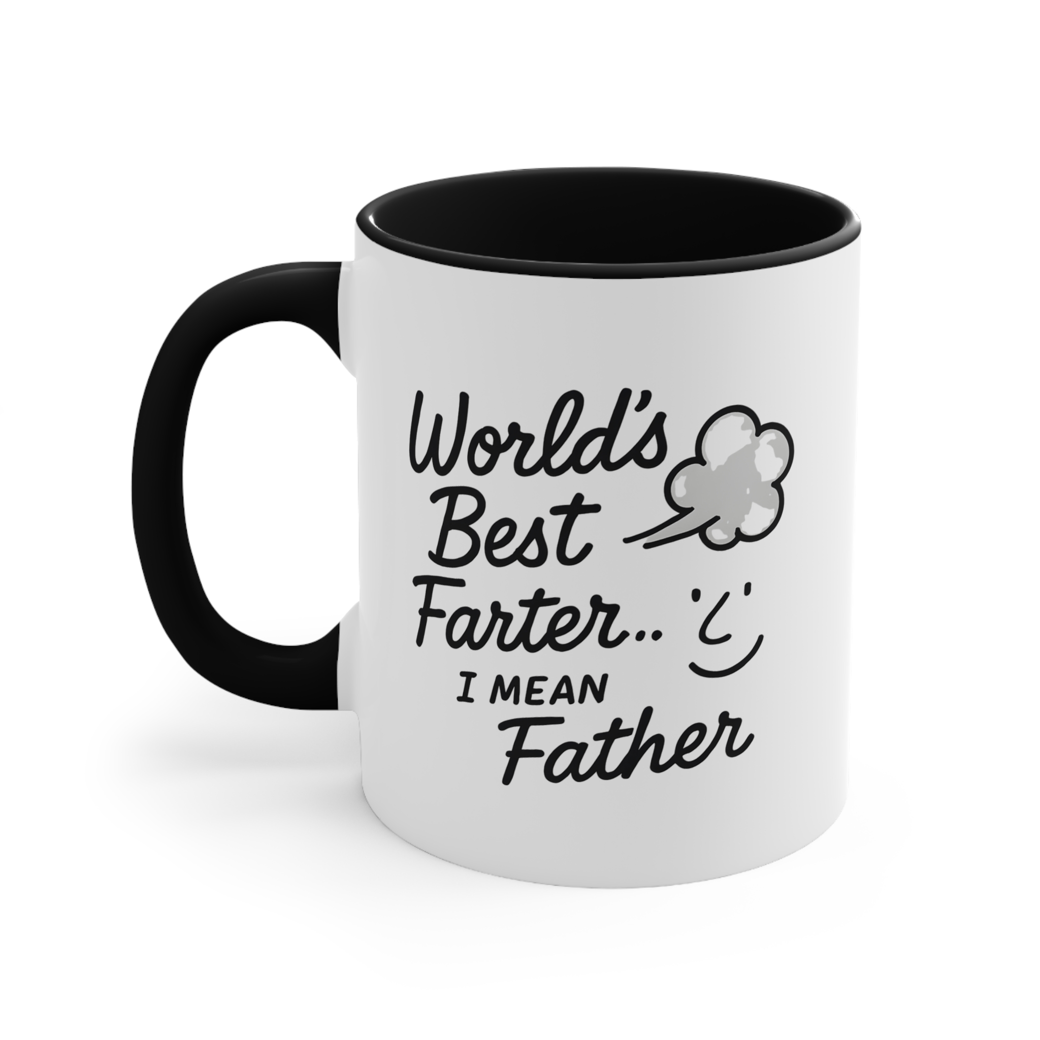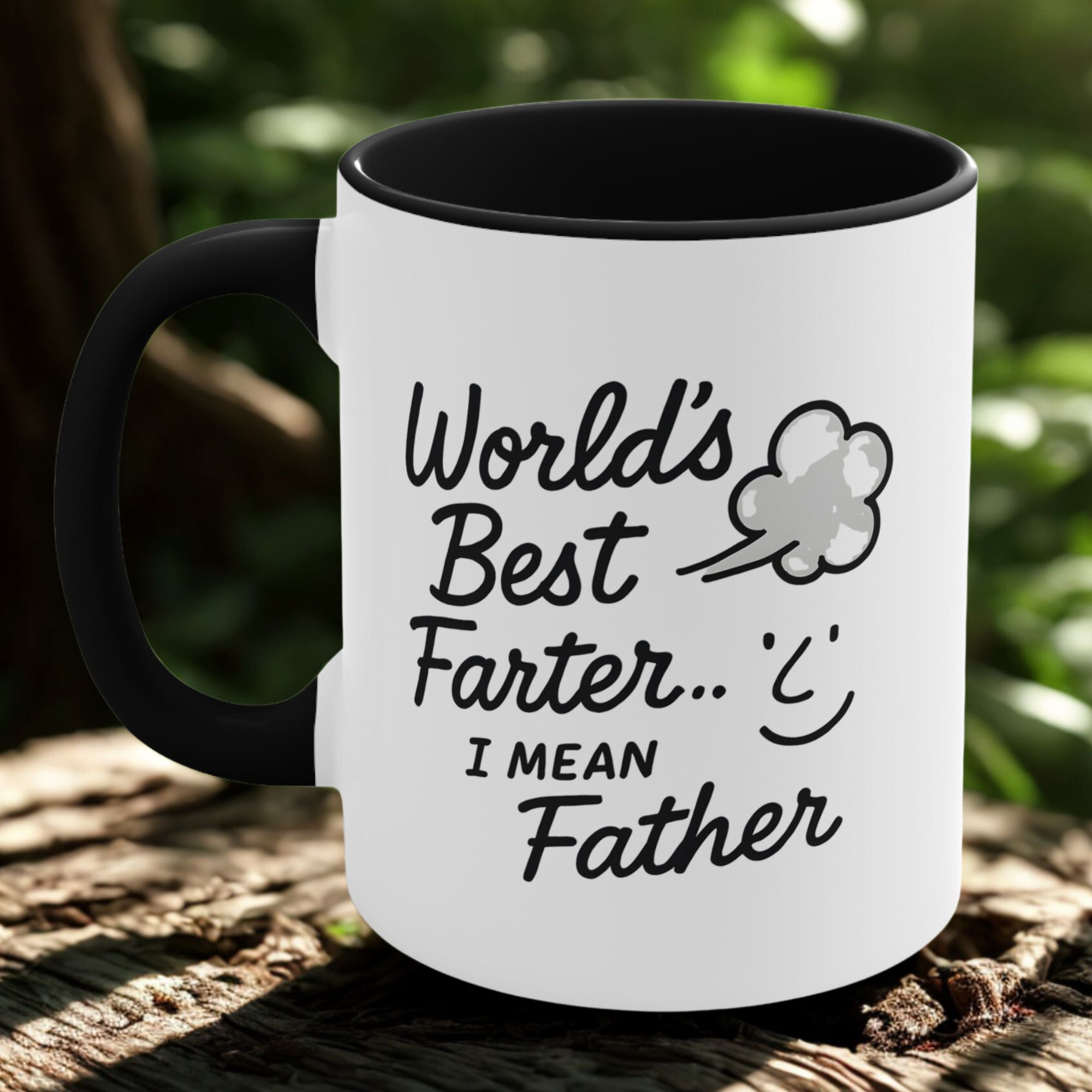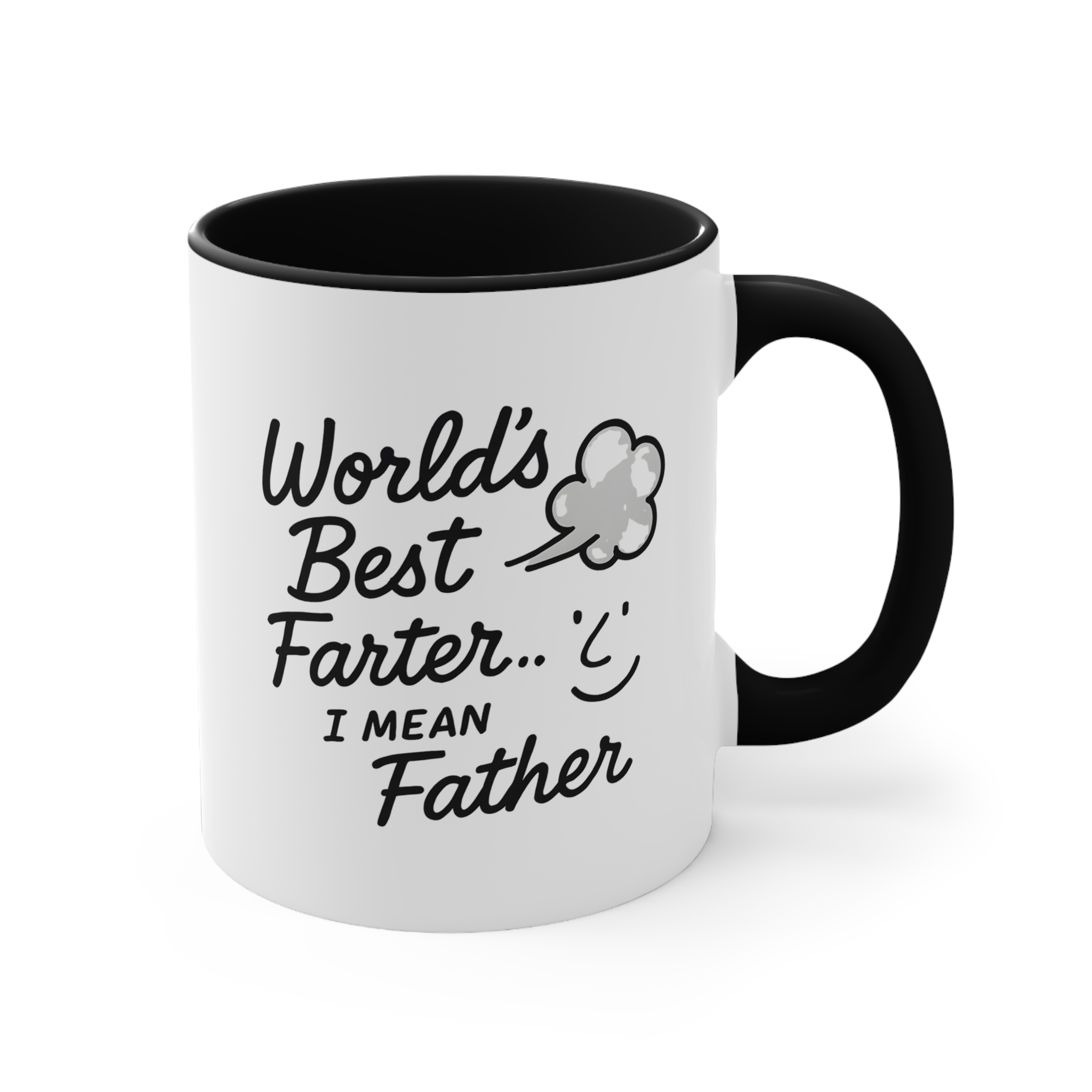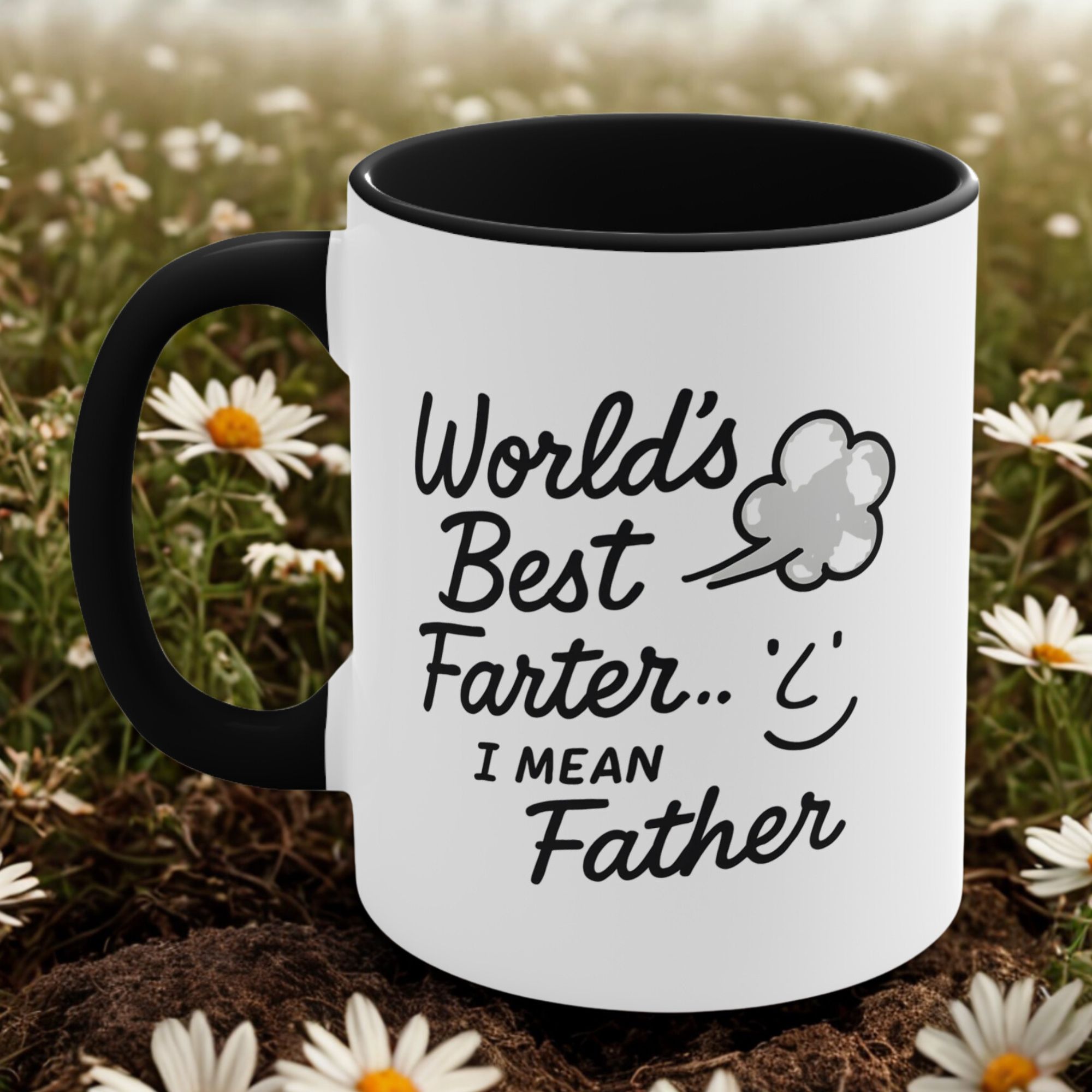Celebrate dad’s funny side with this hilarious Father’s Day mug. “World’s Best Farter… I Mean Father” is printed on an 11oz ceramic cup with a black handle and interior.