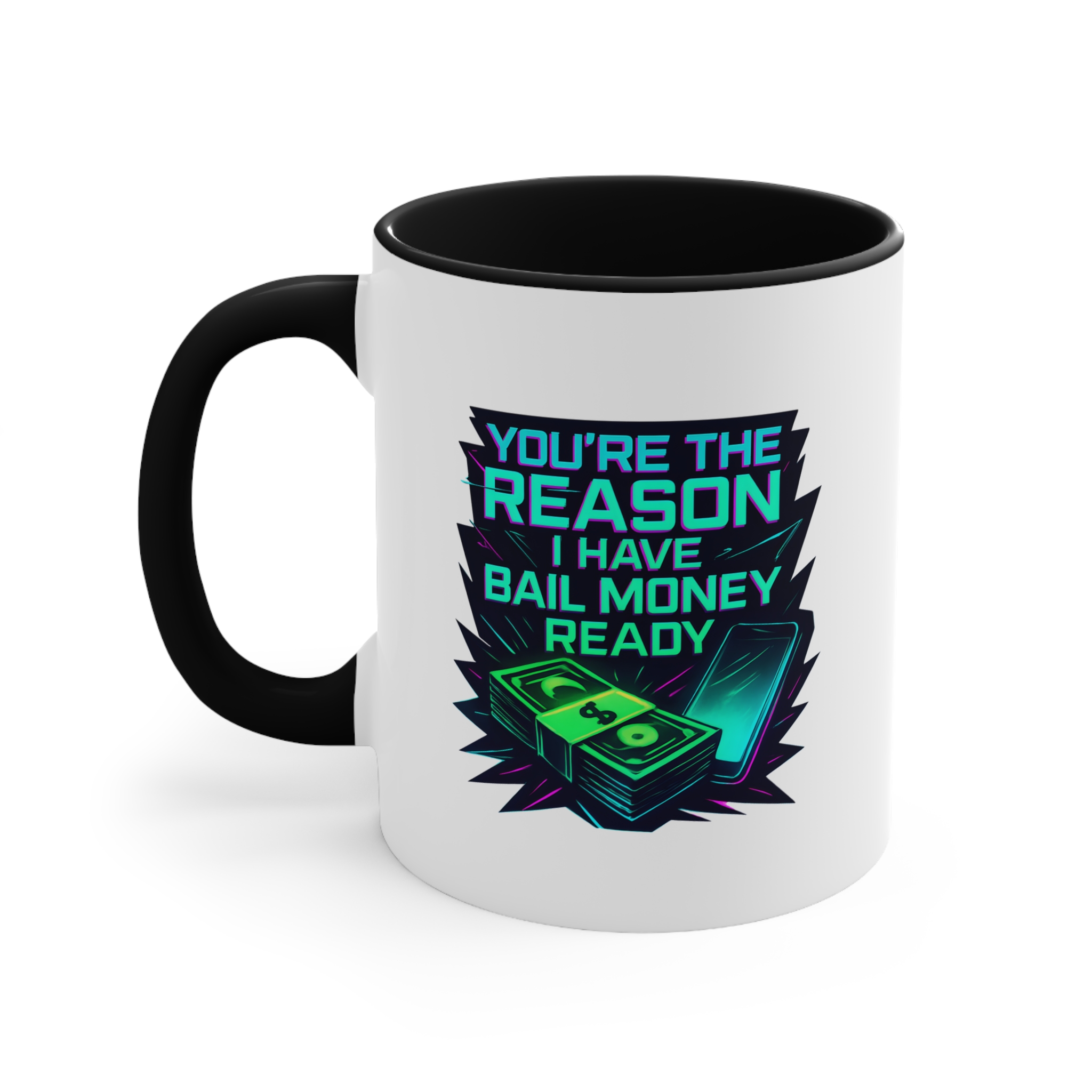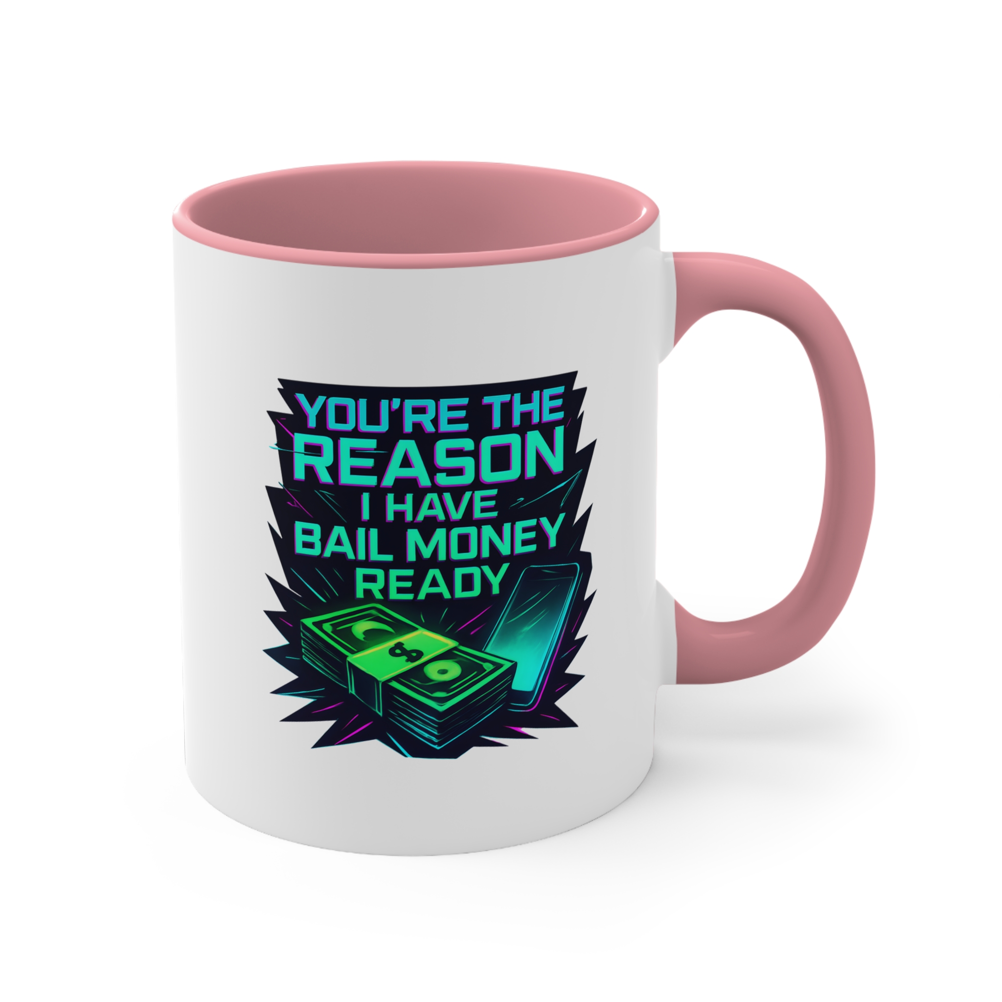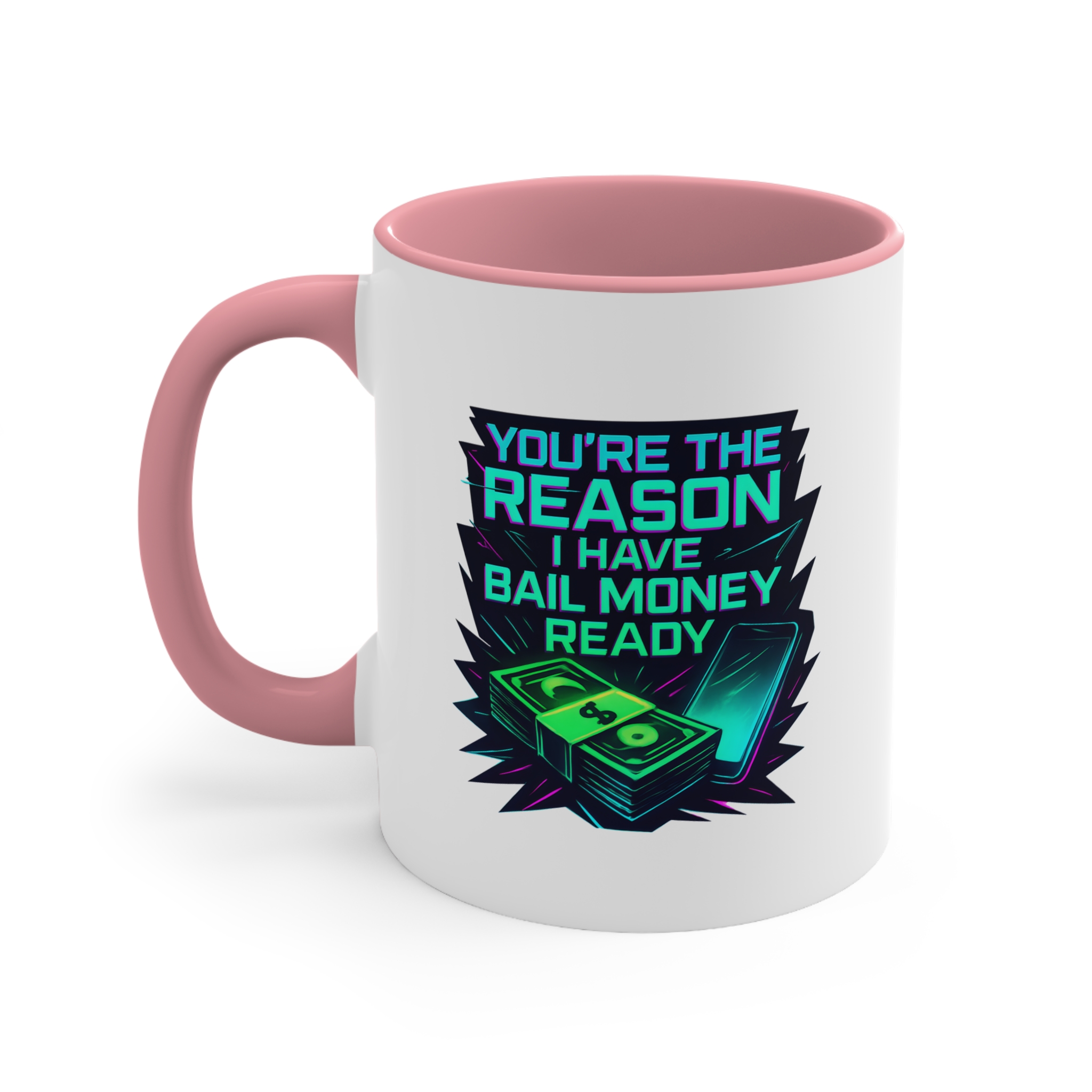 Celebrate your wildest friendships with this funny mug featuring a neon bail money design—perfect for your ride-or-die bestie.