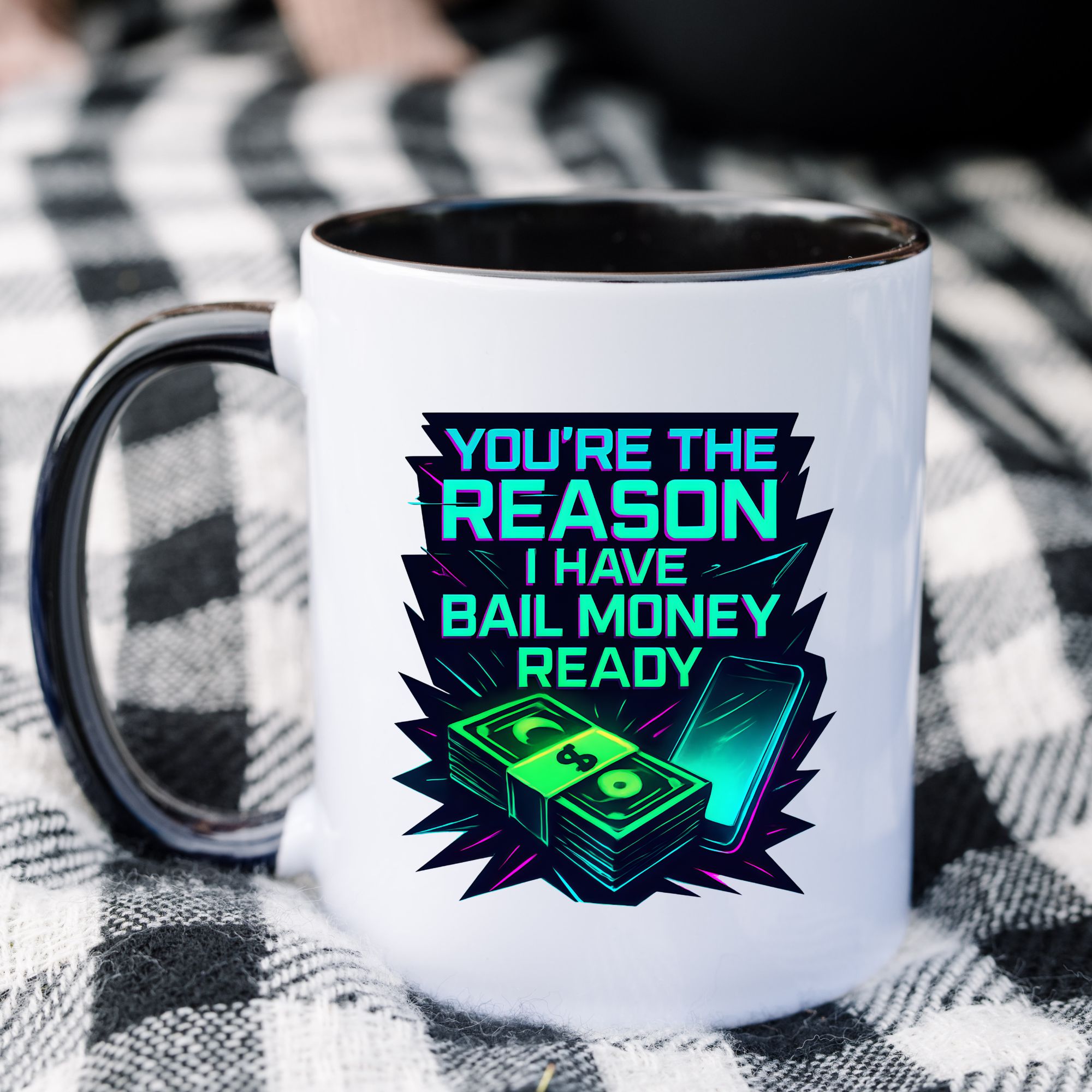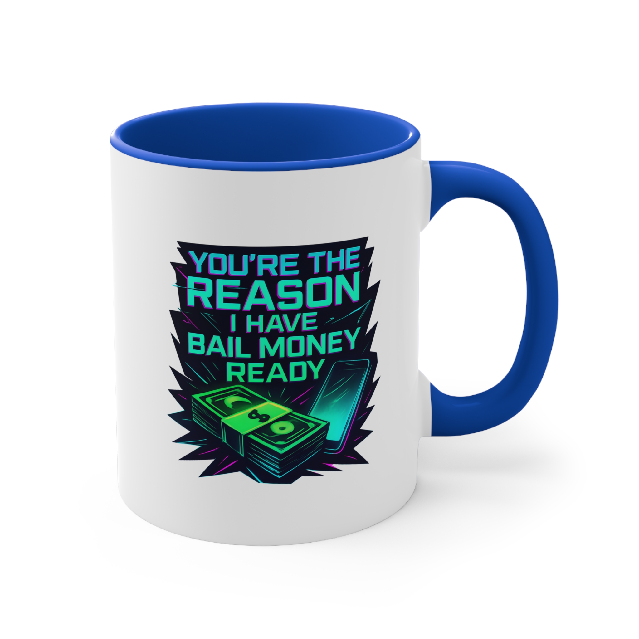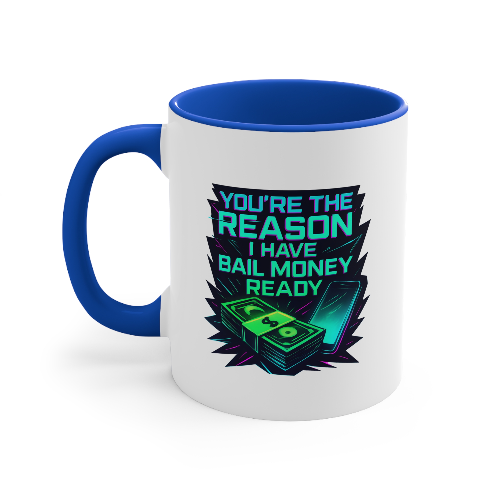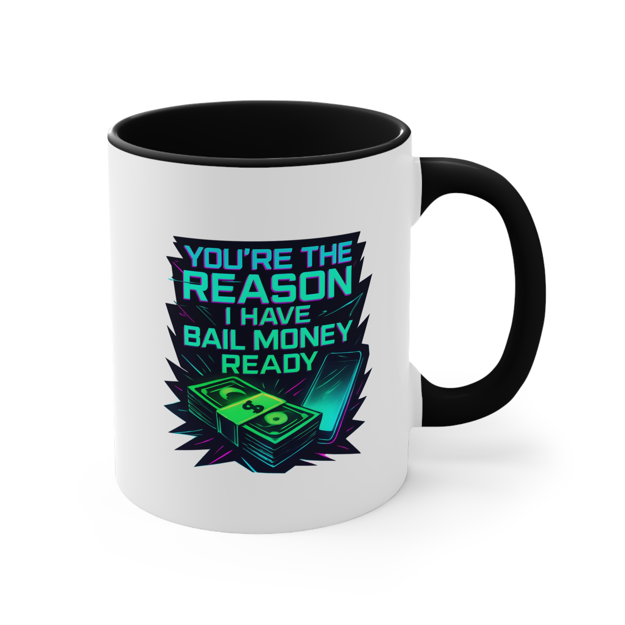 Celebrate your wildest friendships with this funny mug featuring a neon bail money design—perfect for your ride-or-die bestie.