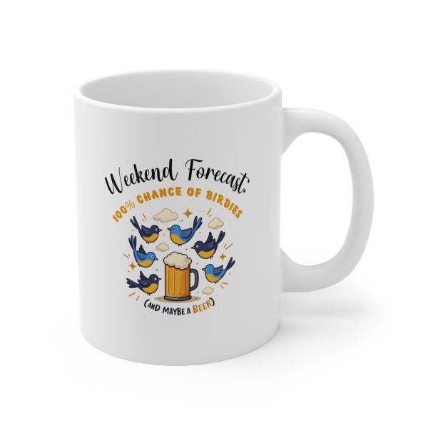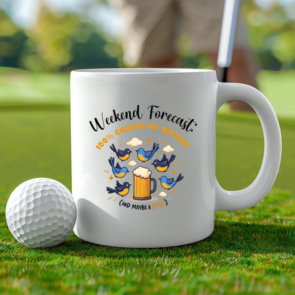Add laughs to your morning routine with this funny golf mug. Featuring a playful “Weekend Forecast: 100% Chance of Birdies (and Maybe a Beer)” design with cartoon birds and a beer illustration, this 11oz ceramic cup is microwave- and dishwasher-safe — perfect for golf lovers.