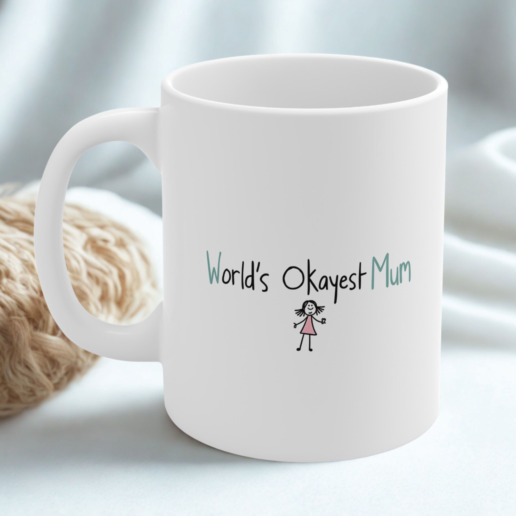 World’s Okayest Mum Mug | Funny Stick Figure Mum Design with Playful Hand-Drawn Font