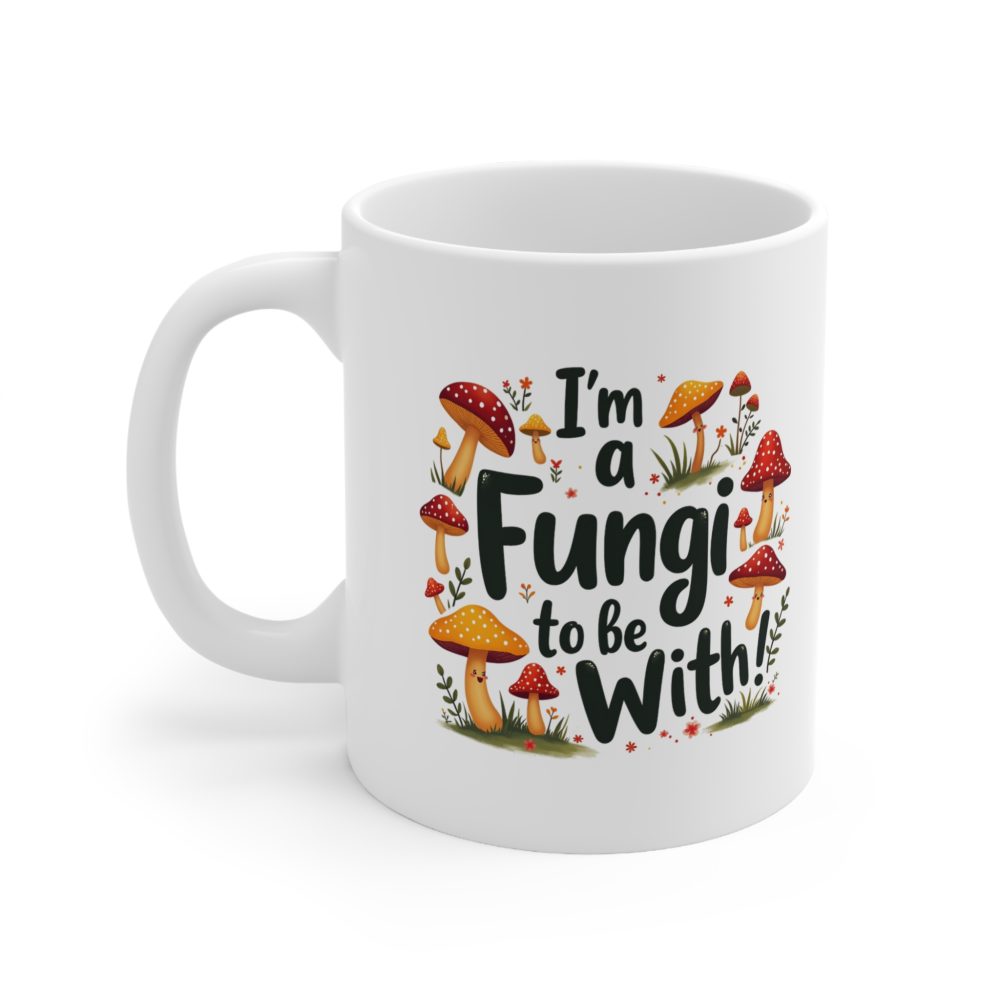 Brighten your mornings with this funny mushroom mug, featuring a playful “I’m Fungi to Be With” design surrounded by colorful mushrooms. This 11oz ceramic mug is microwave- and dishwasher-safe — ideal for daily laughs and coffee.