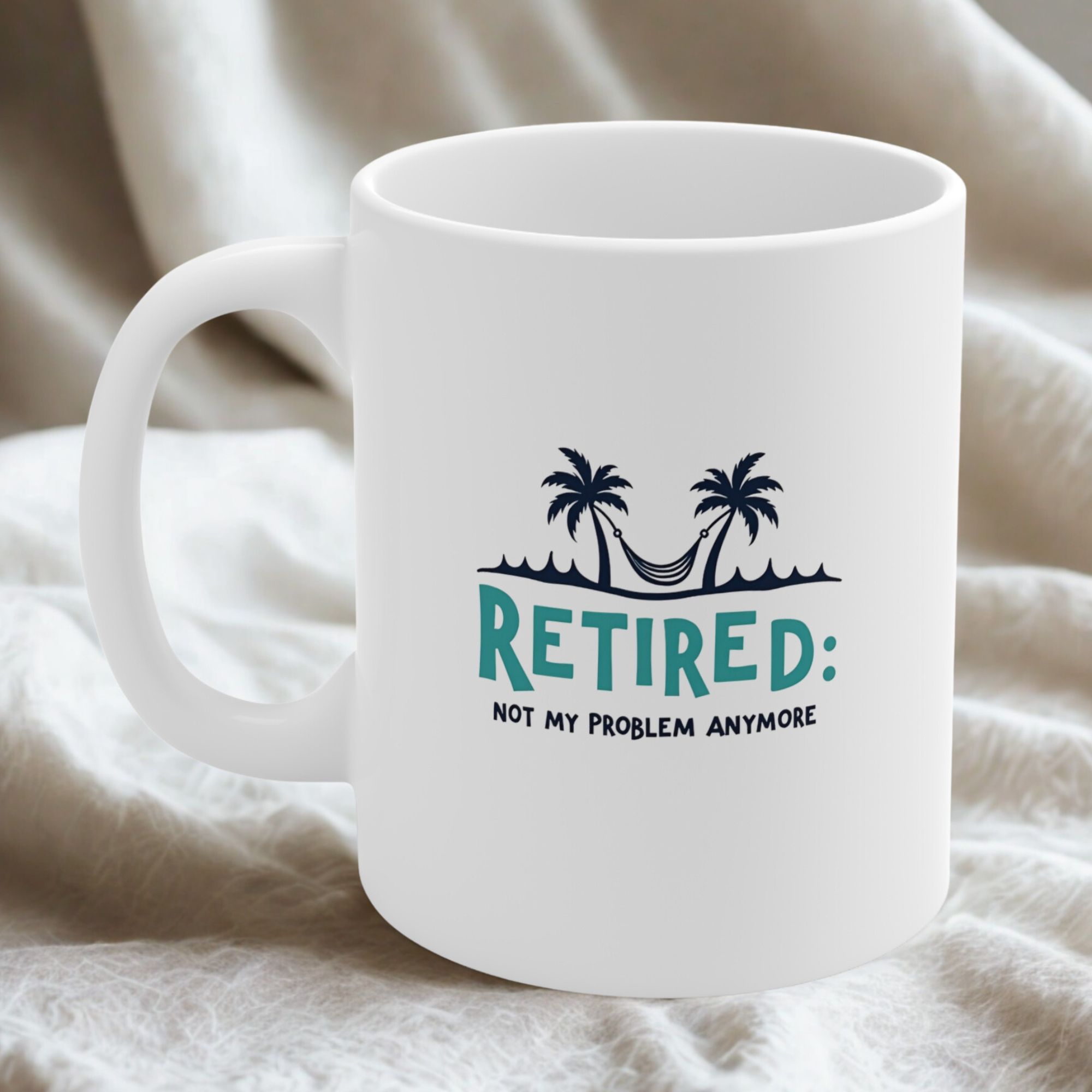Celebrate the joy of retirement with the “Retired, Not My Problem Anymore” mug! This humorous coffee cup is perfect for retirees who are ready to leave work worries behind and enjoy a stress-free life. Made from durable white ceramic with a glossy finish, this 11oz mug features a comfortable C-shaped handle for an easy grip. It’s lead and BPA-free, ensuring a safe and enjoyable coffee or tea break. A great gift for coworkers, friends, or family members embracing their well-earned freedom.