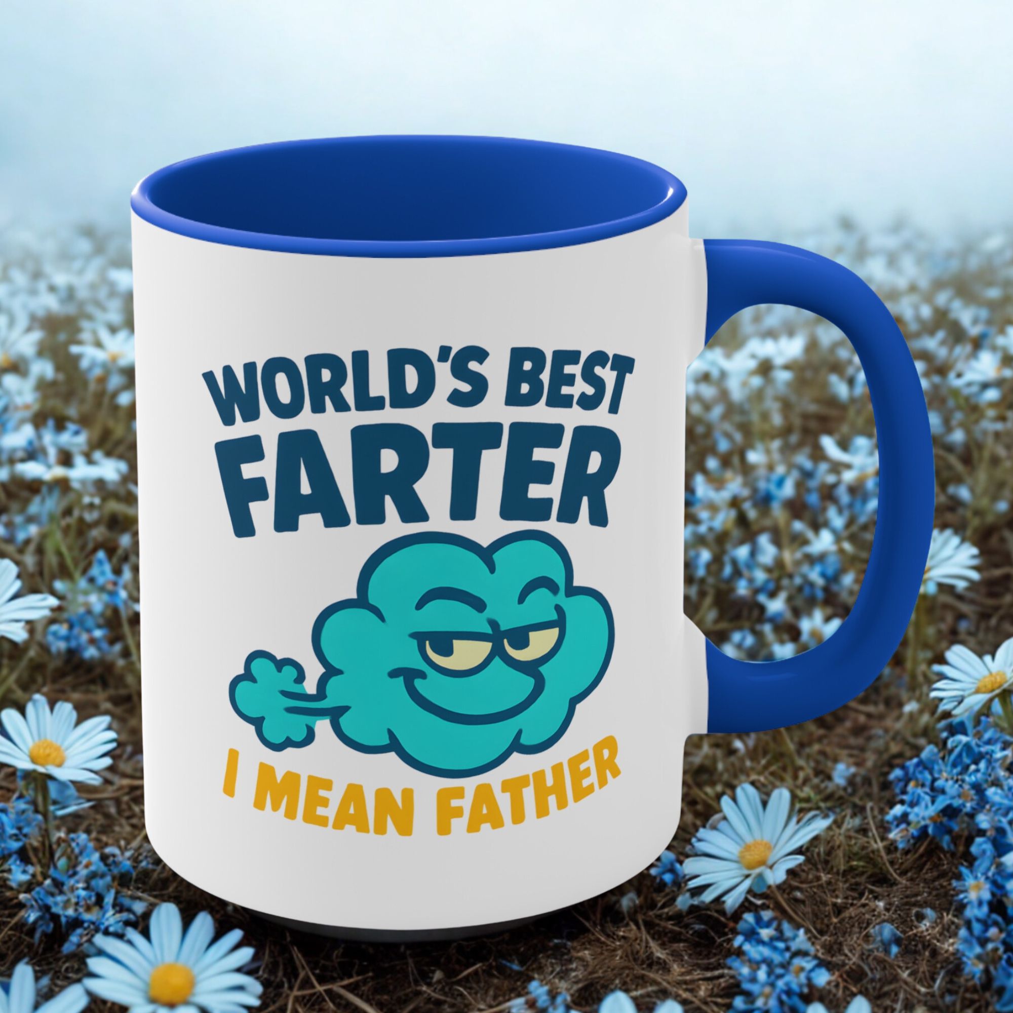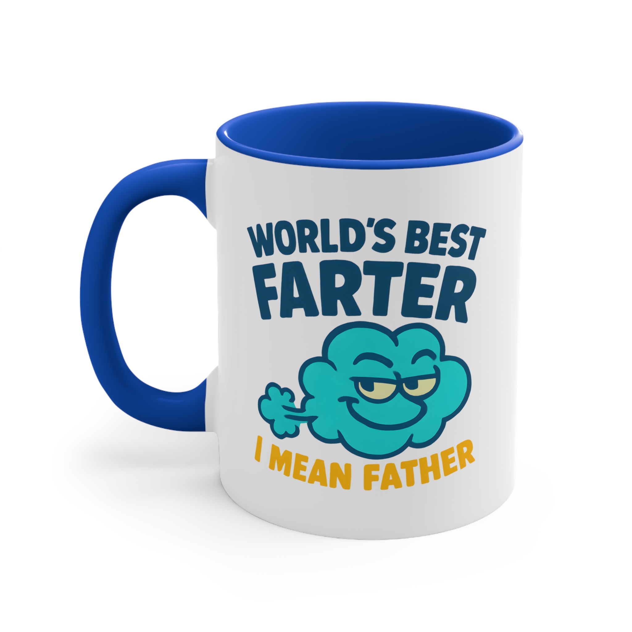 Make dad laugh with this hilarious “World’s Best Farter… I Mean Father” mug. Featuring a bold design and blue handle, it’s perfect for cheeky Father’s Day gifting.
