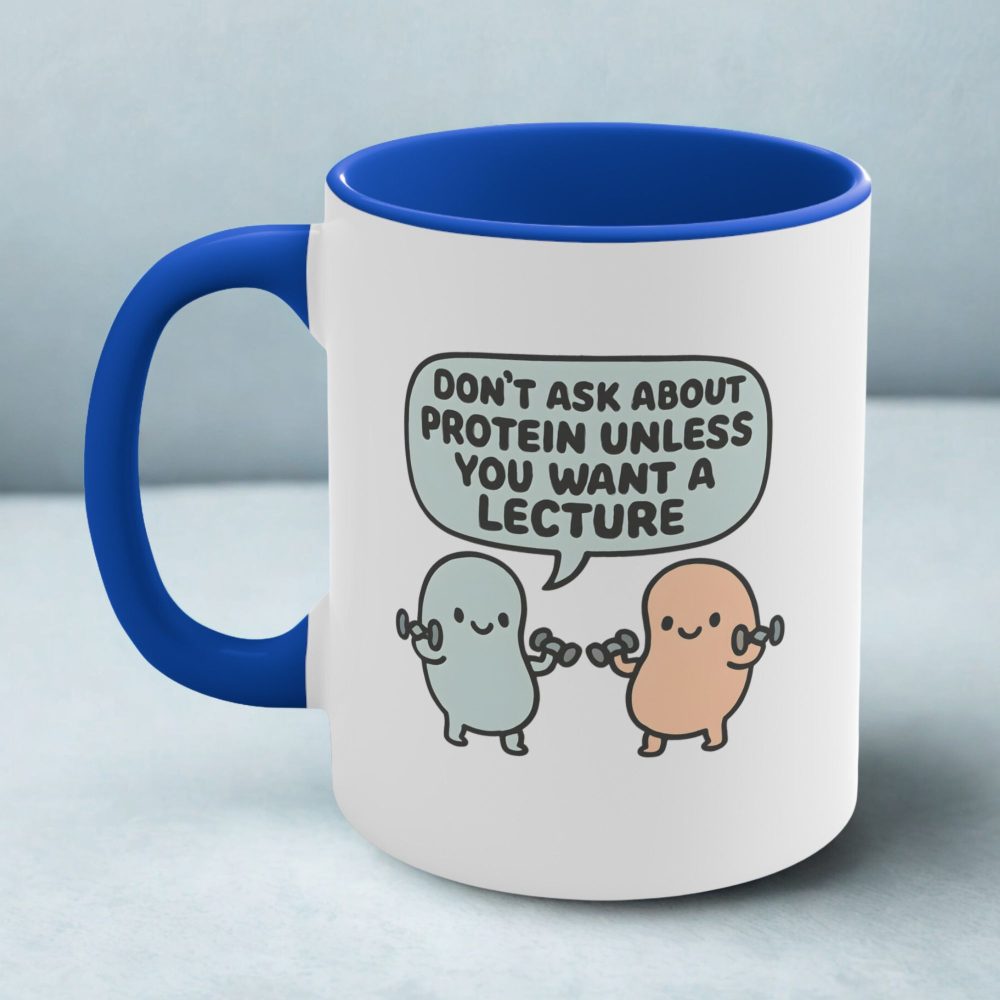 Tired of the protein question? This funny vegan protein mug shuts it down in style — perfect for plant-powered lifters and loud vegans alike.